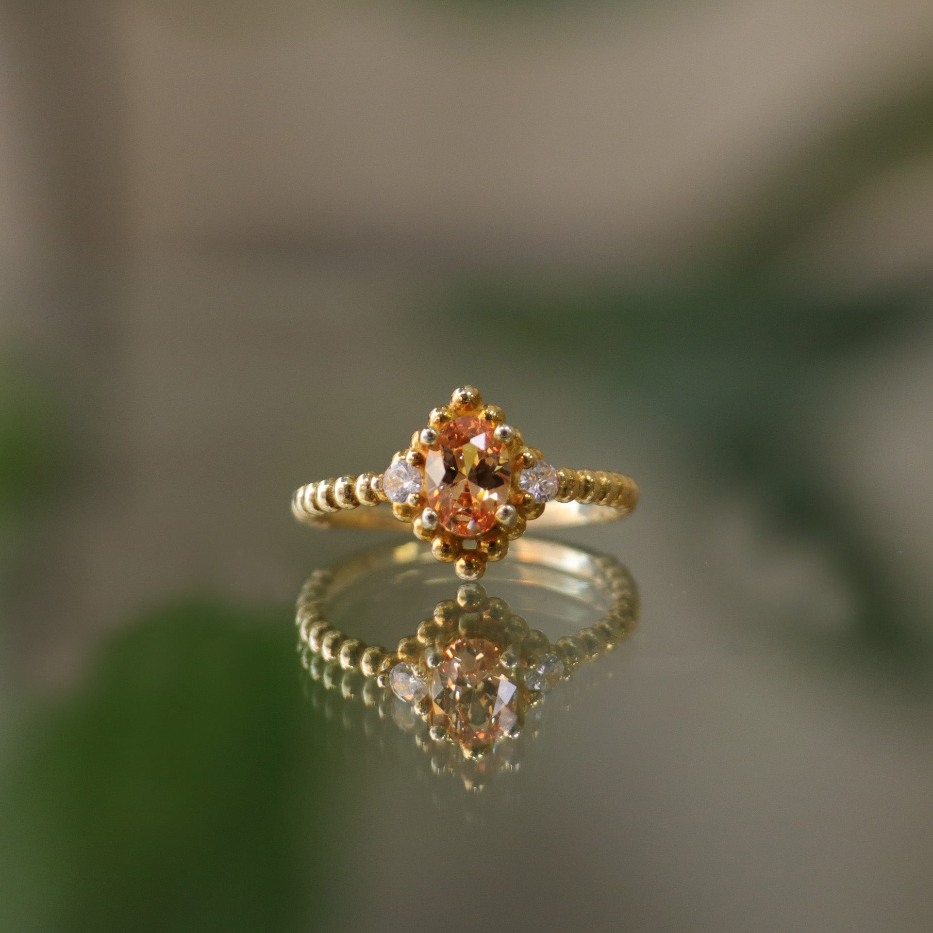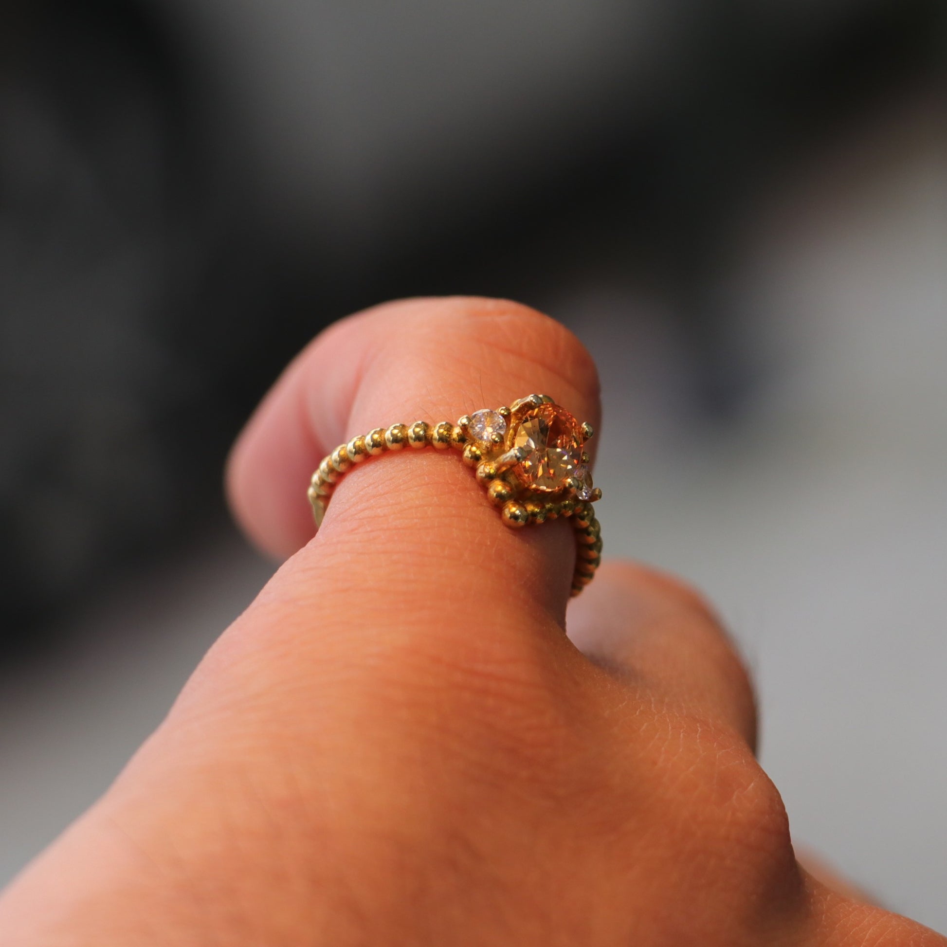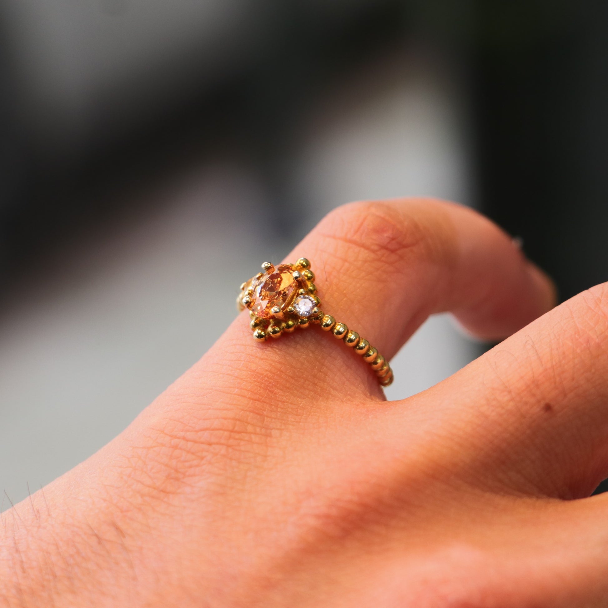 Citrine and Moissanite 925 Silver 18 Carat Gold Plated Ring