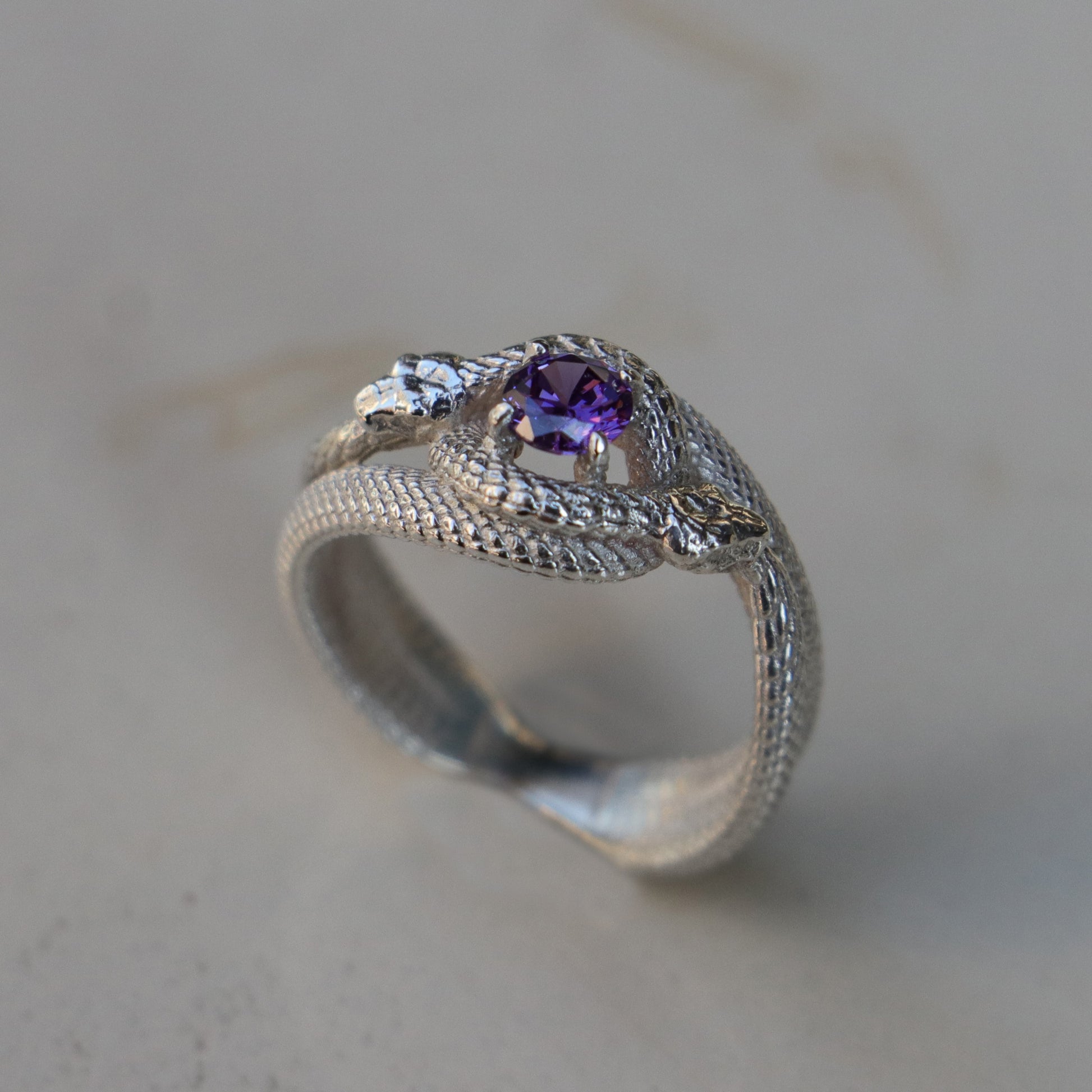 Tanzanite Ouroboros 925 Silver Gold Plated Ring