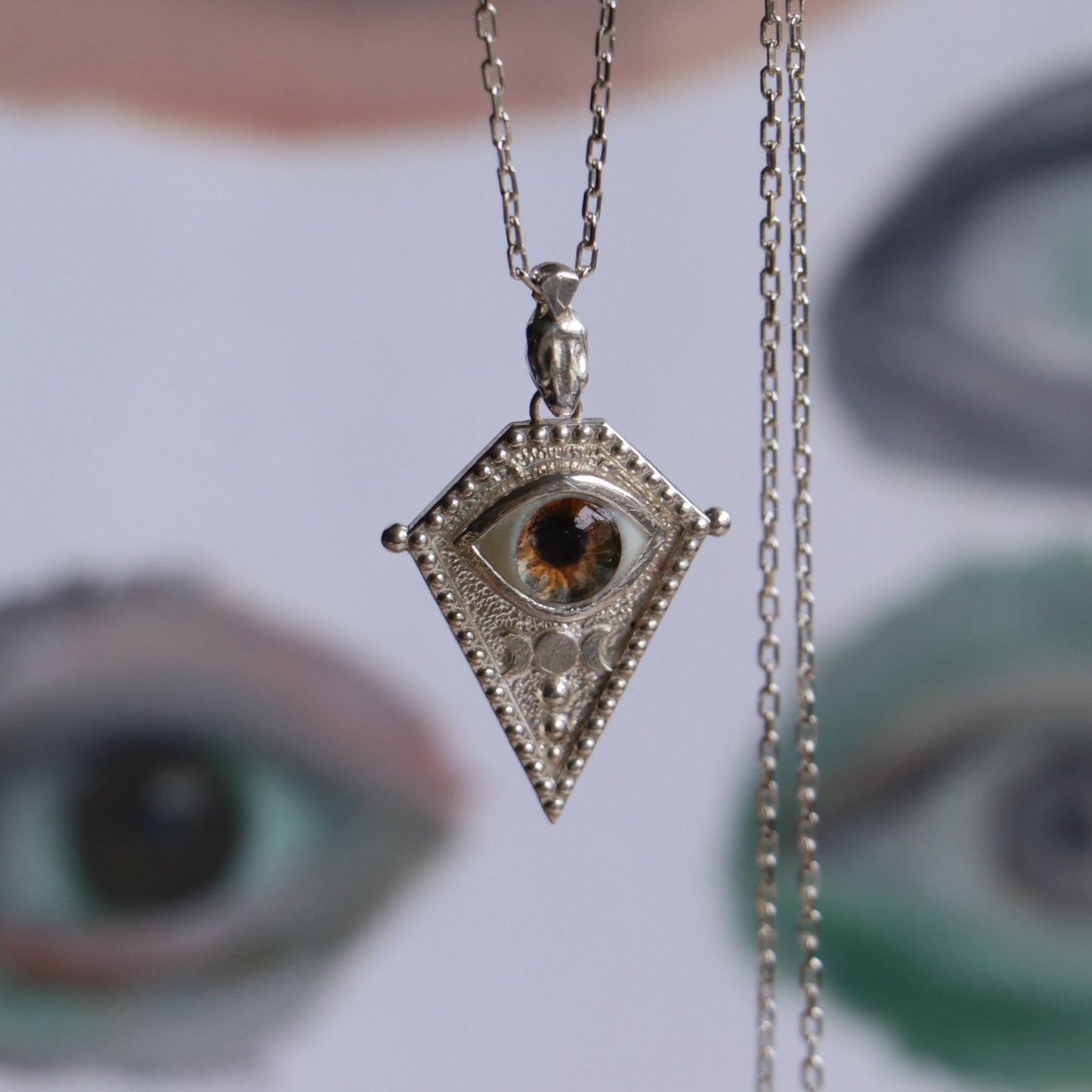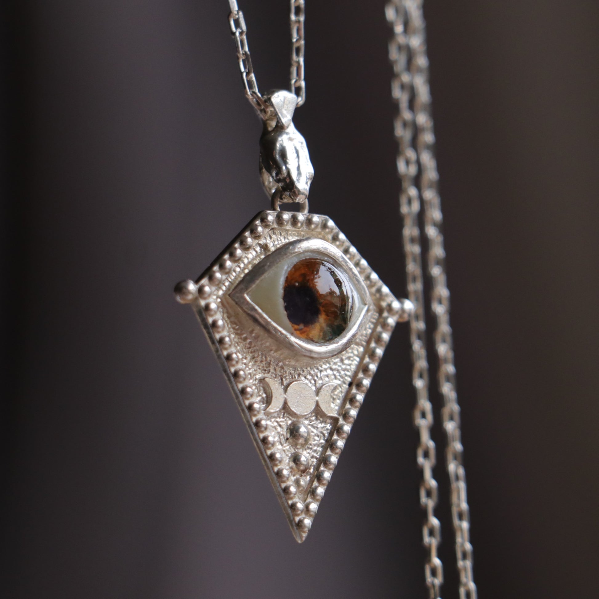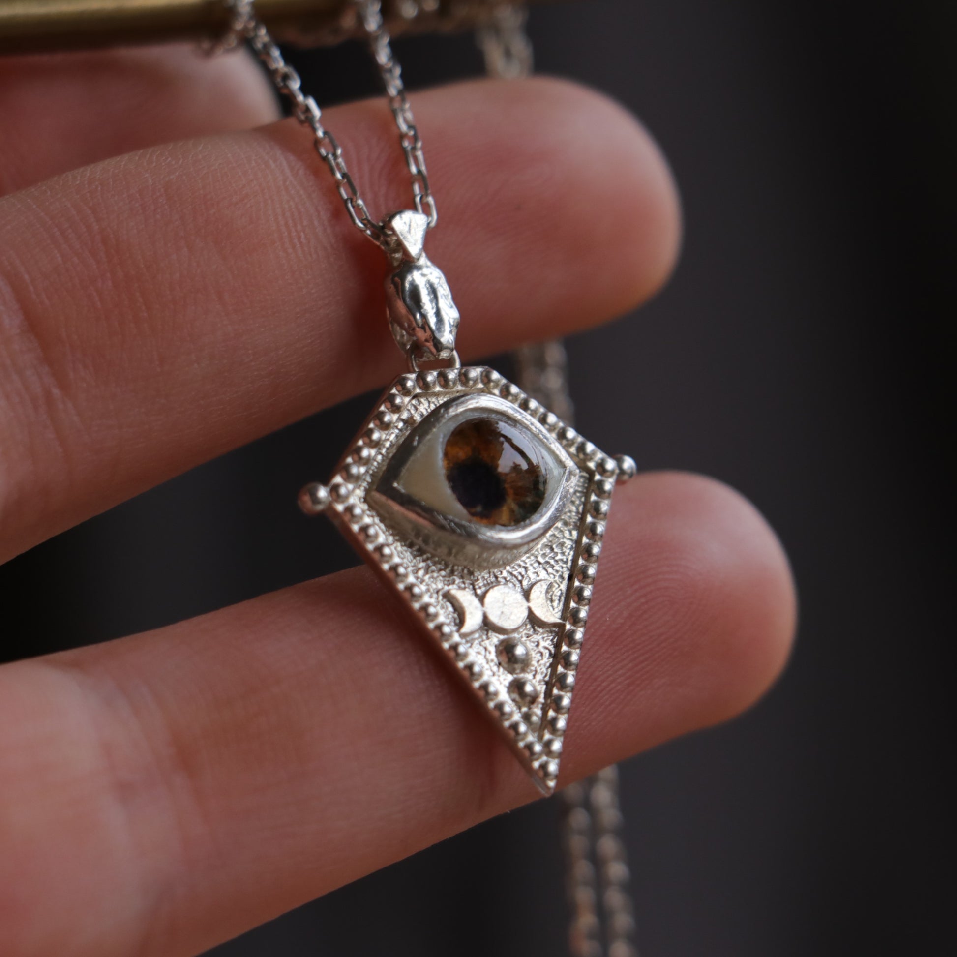 Handmade Triple Moon Necklace | "Oracle Eye" Talisman | Mystical Jewelry with Realistic Eyes