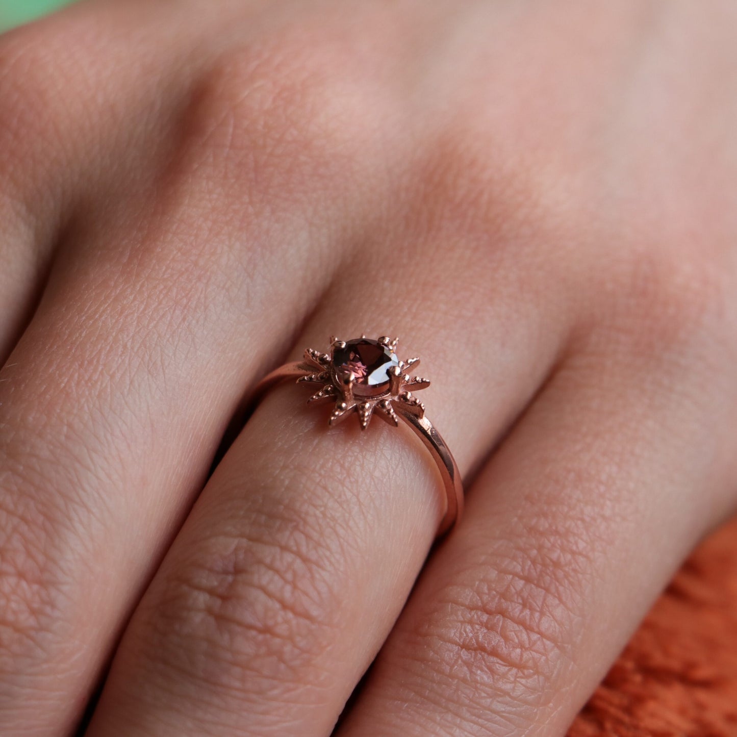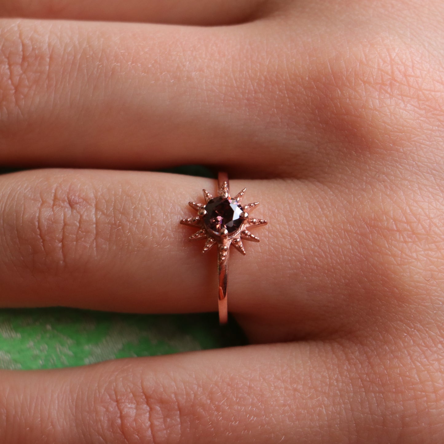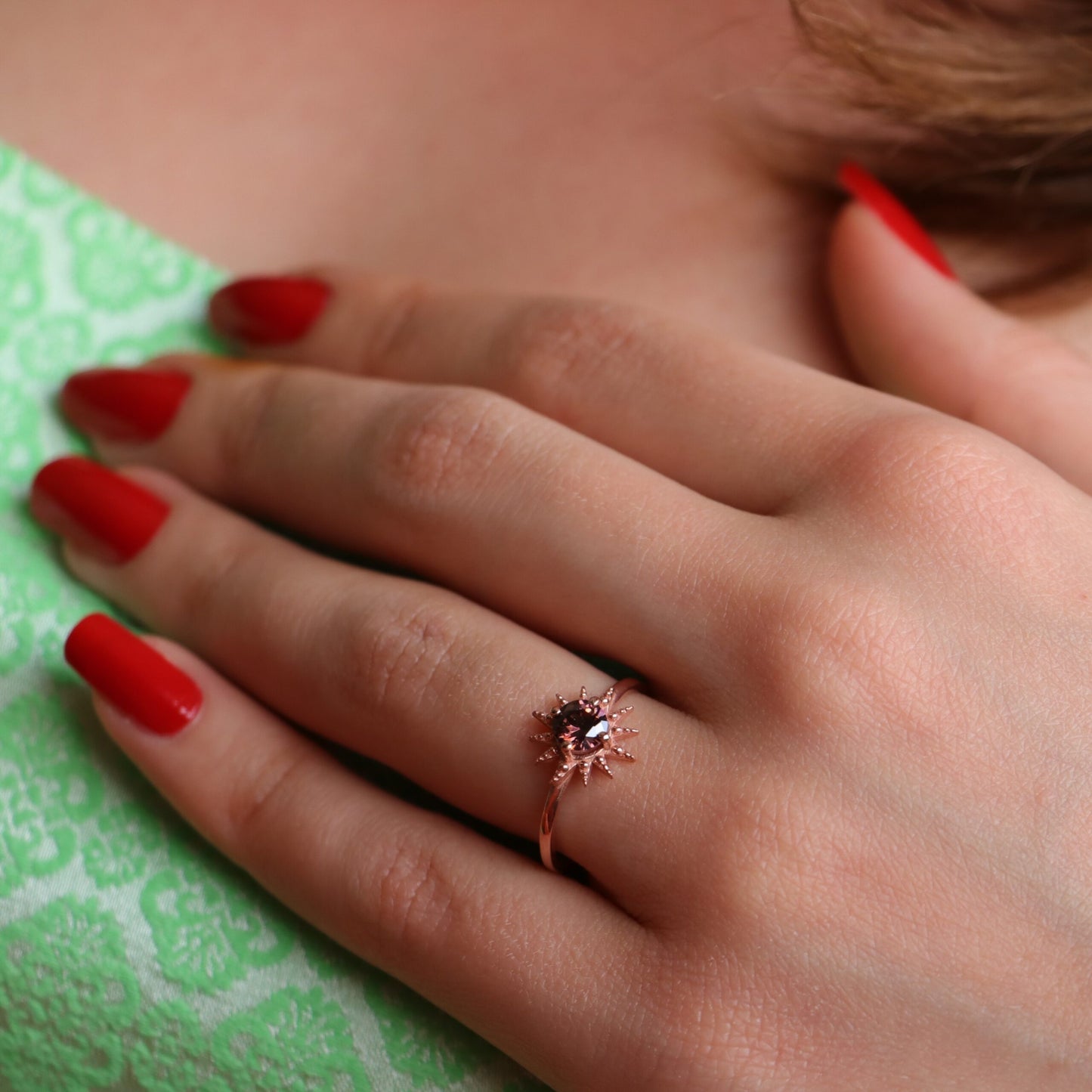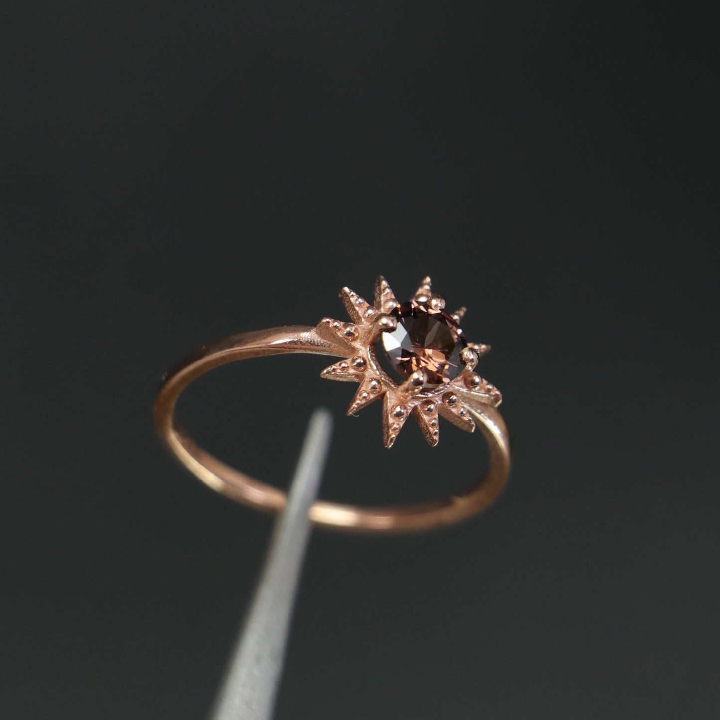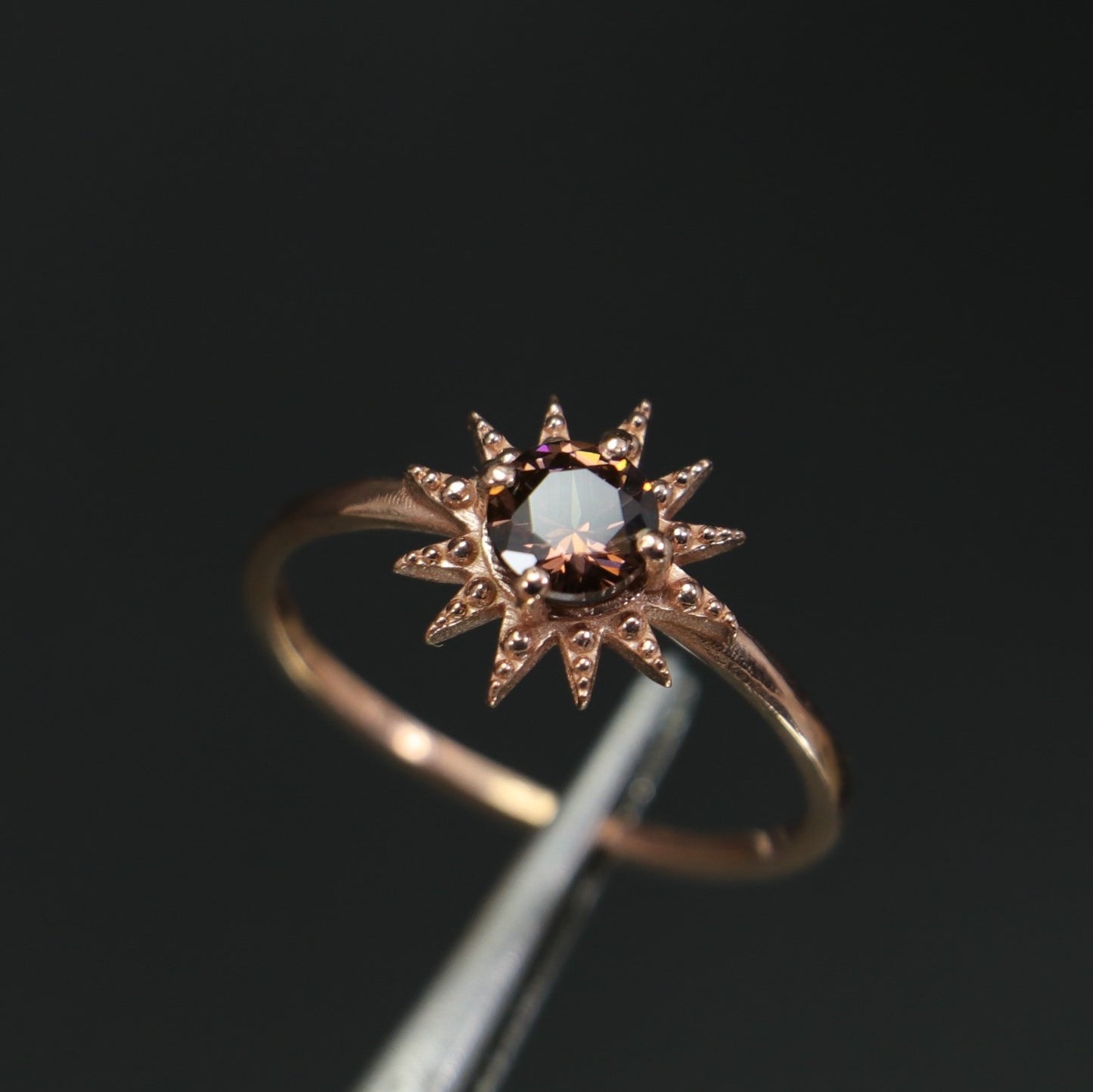 Star 925 Silver Champagne Stone Gold Plated Ring