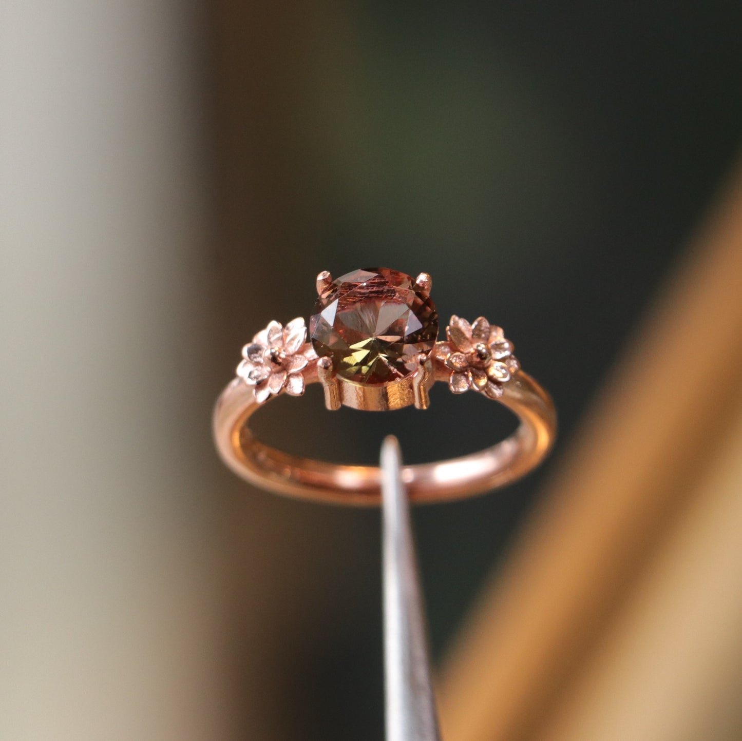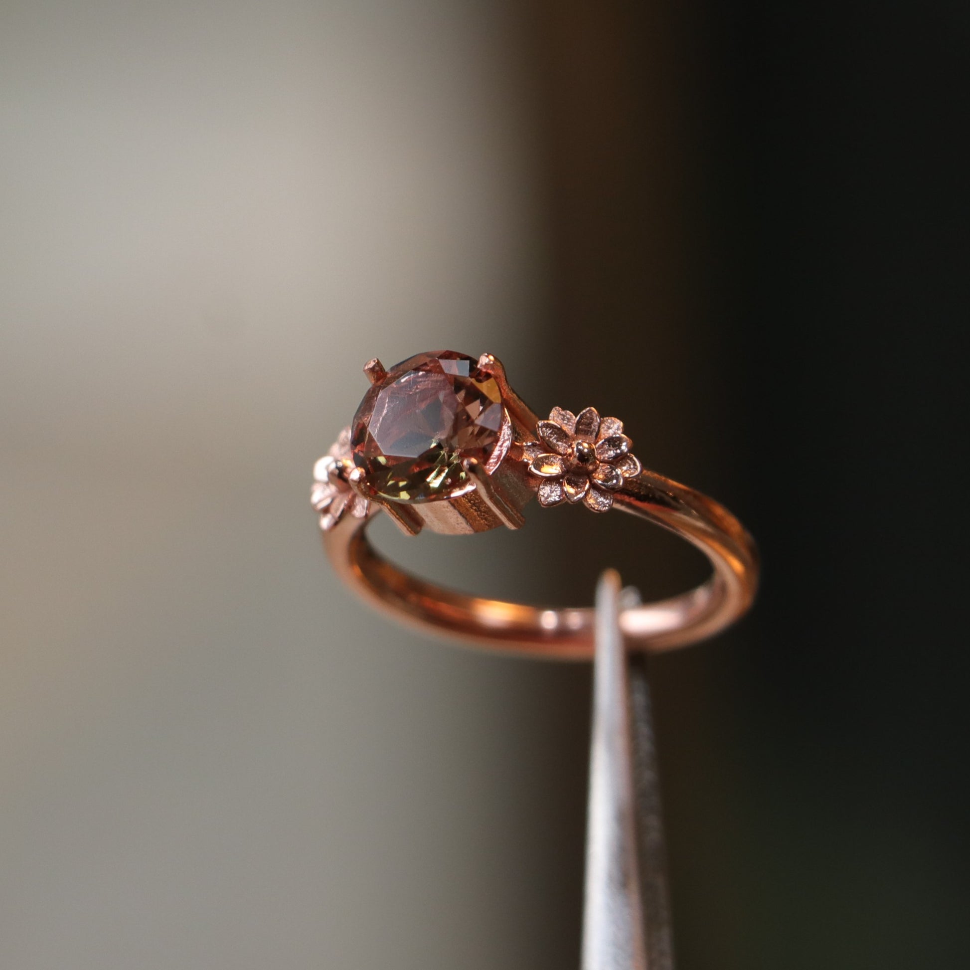 Zultanit 925 Silver Rose Gold Plated Ring (It changes color according to the strength of the light.)