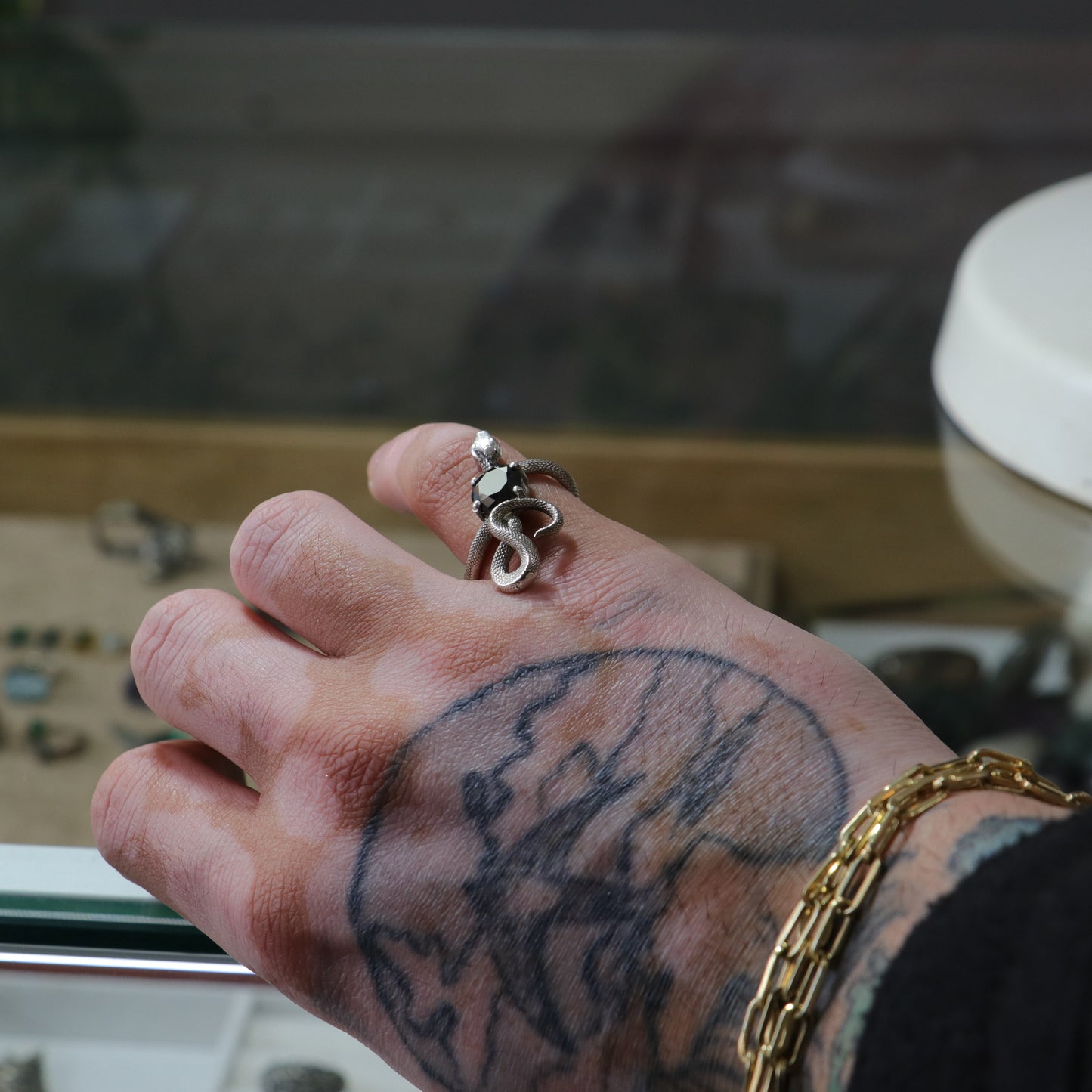In my designs, which are improvised with the emotions felt by the raw, natural stones I use, I combine the stones with the "nailing" technique, which is also an old-school craft, without using any chemical ingredients.