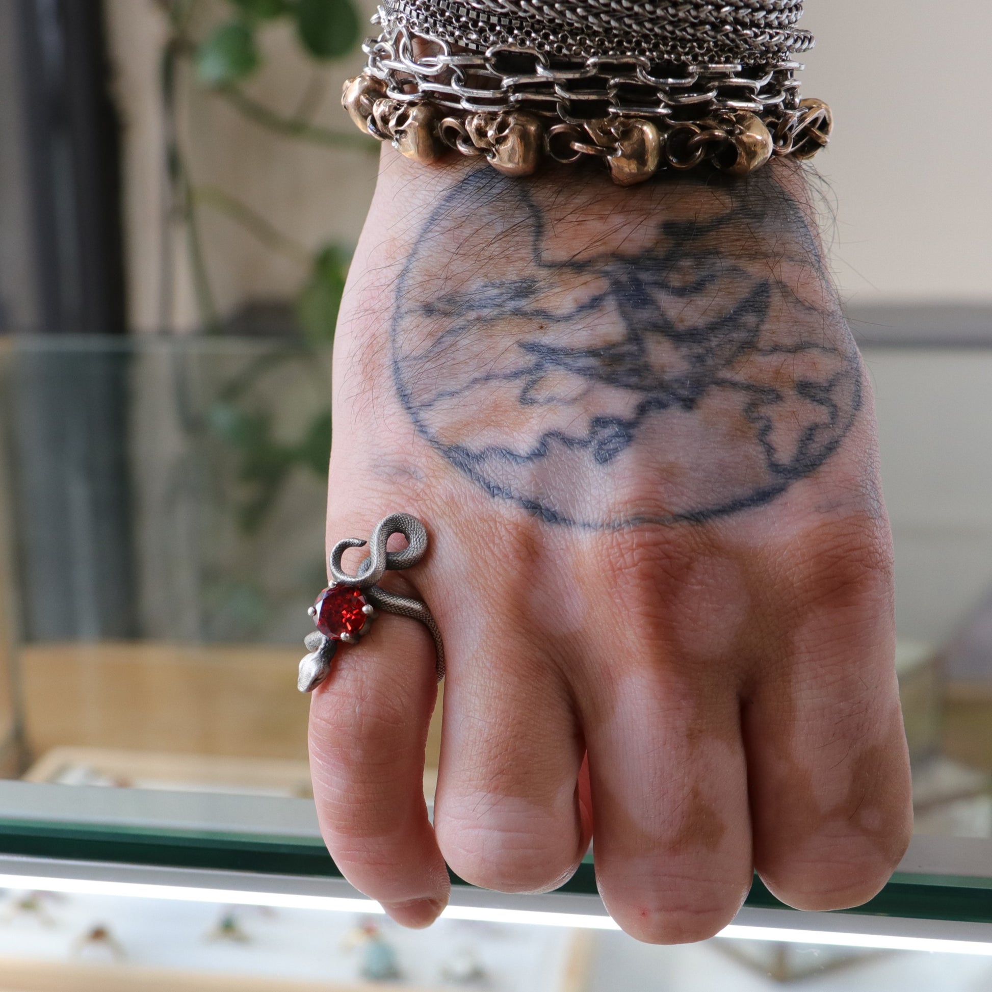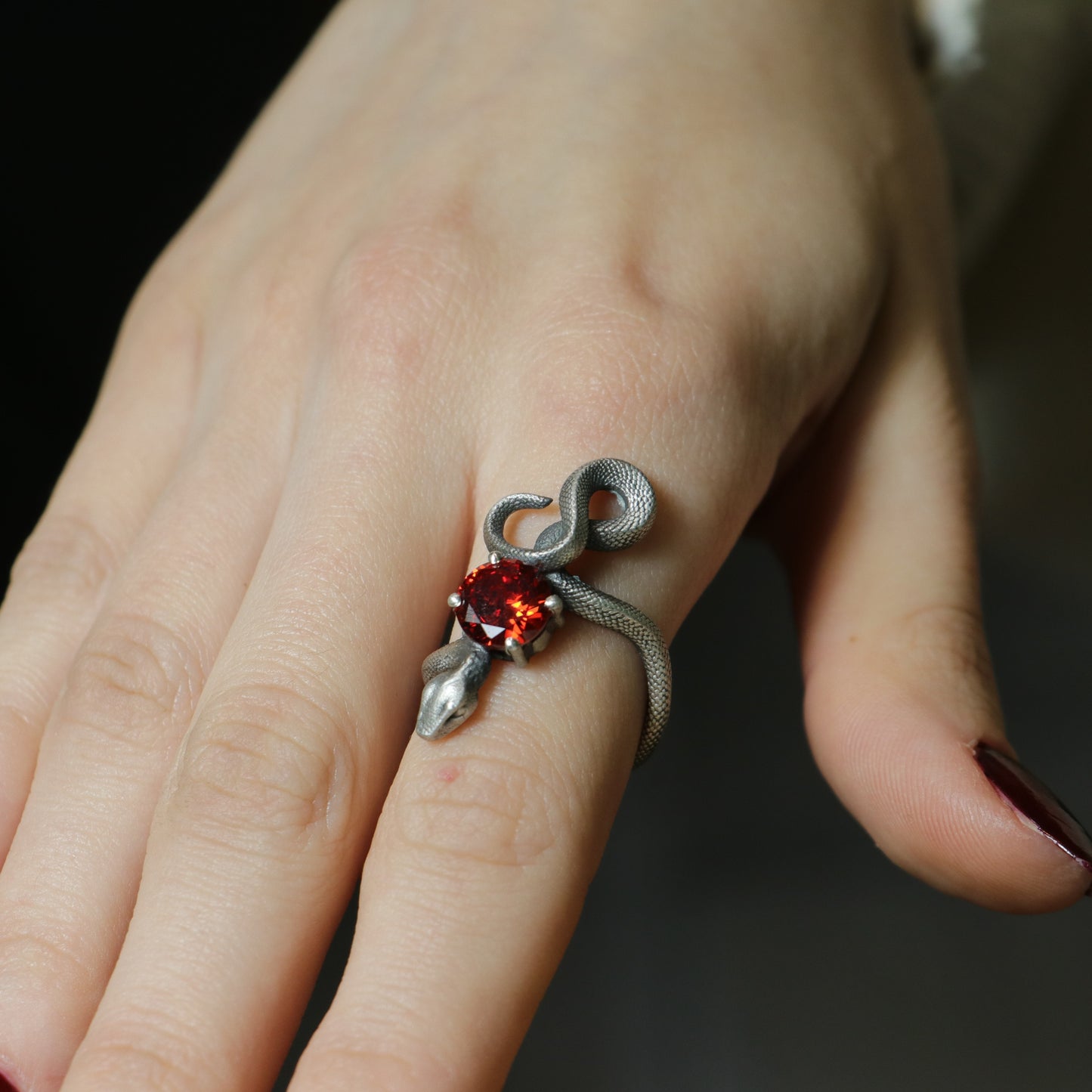 Ruby Snake 925 Silver Ring