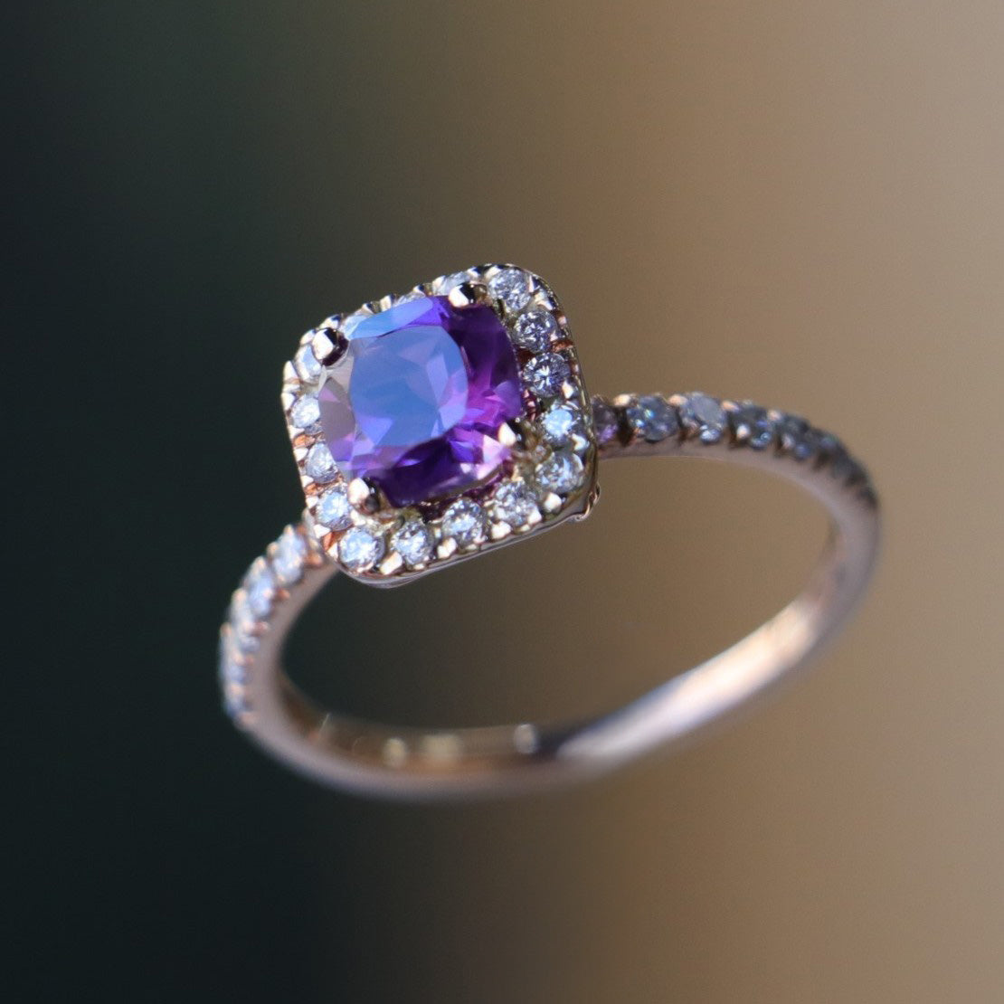 0.37 Karat Pırlanta ve 0.83 Karat Ametist Yüzük