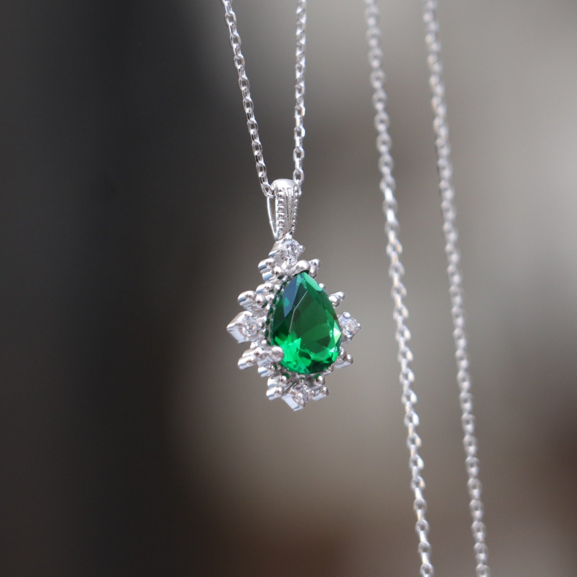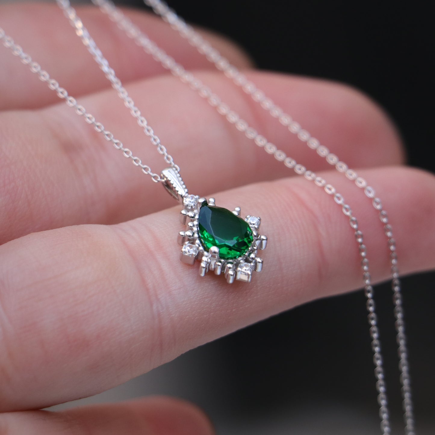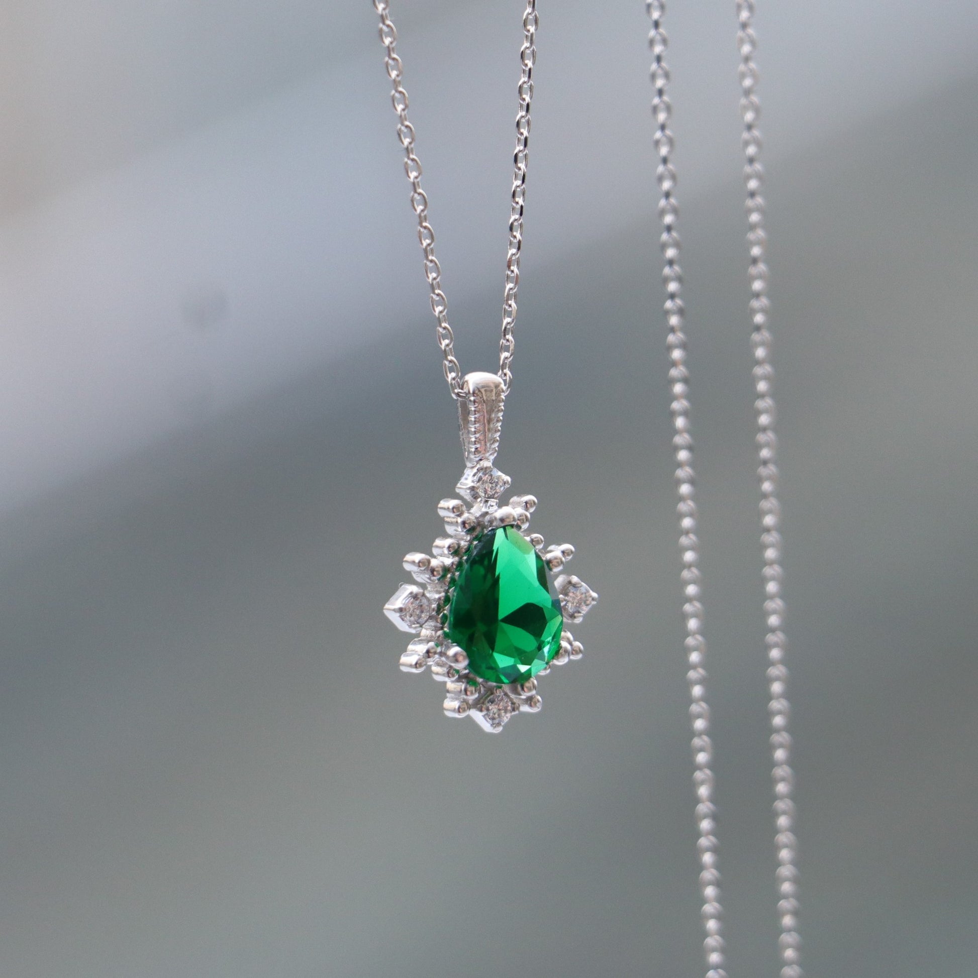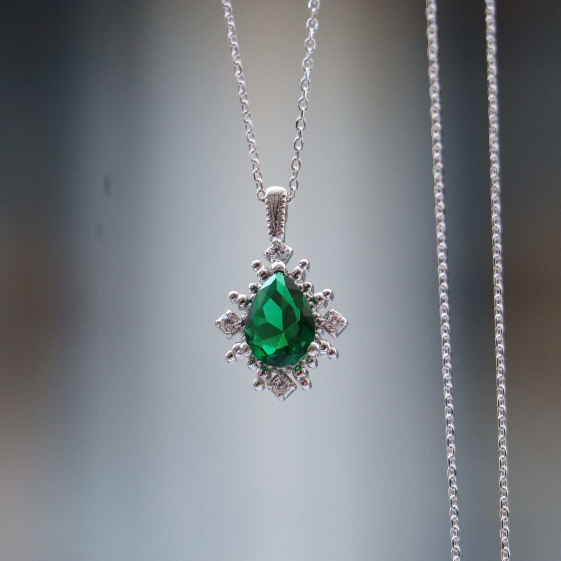 925 Gümüş Lab. Zümrüt ve Mozanit Kolye