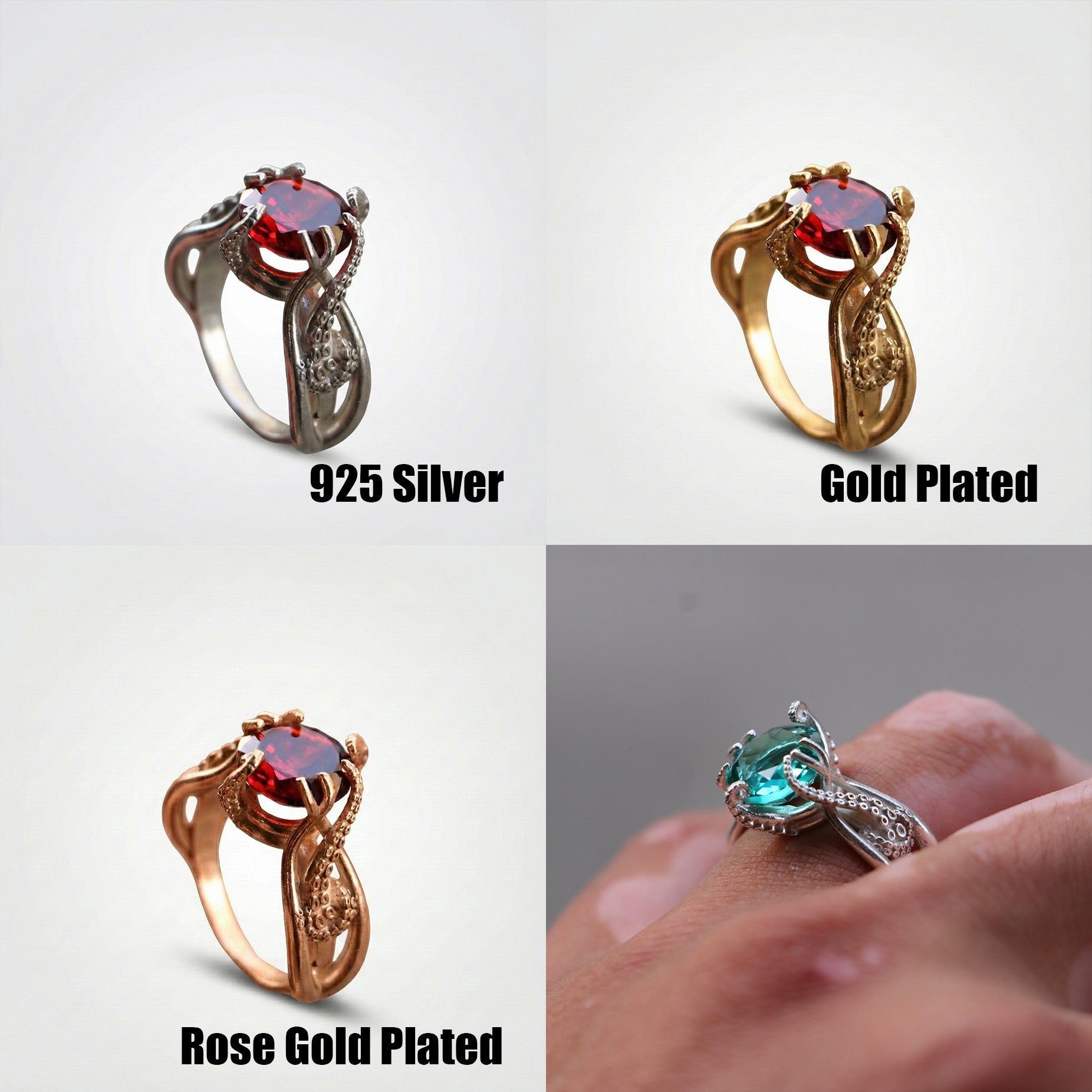 Ahtapot 925 Gümüş Yüzük (Tüm Taş ve Maden Seçenekleri)