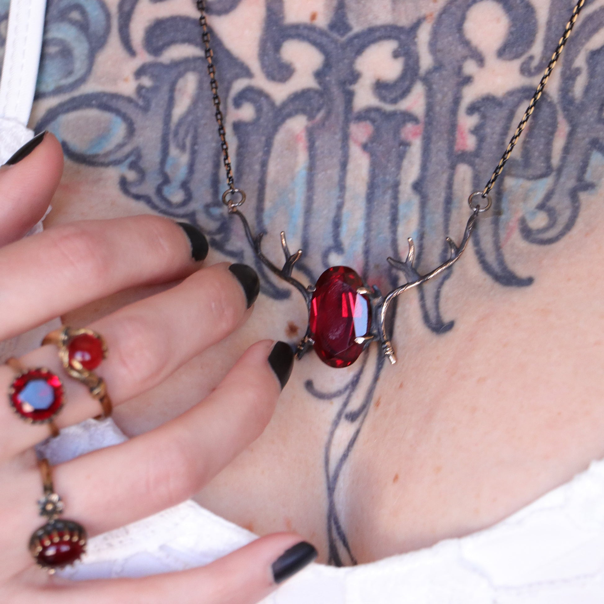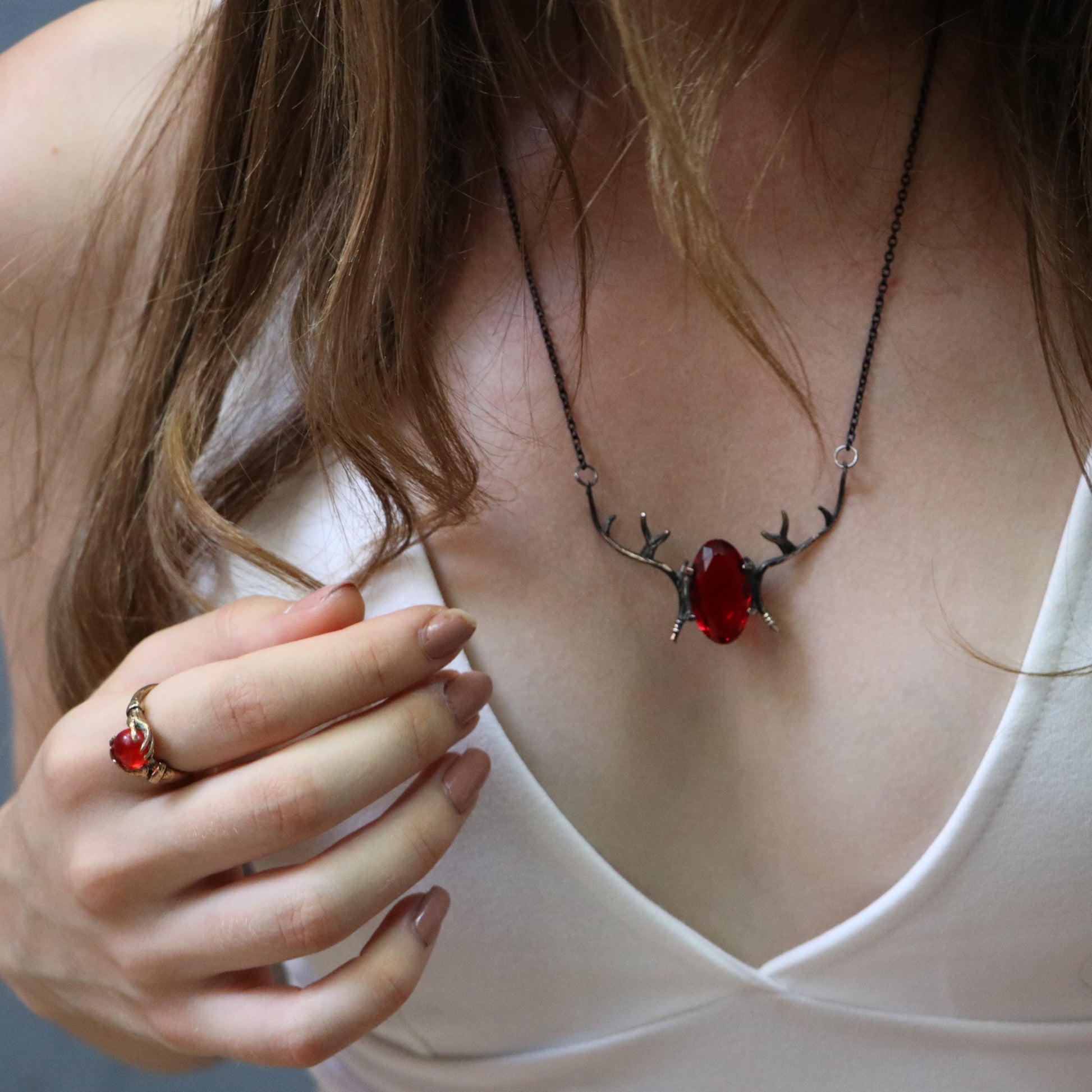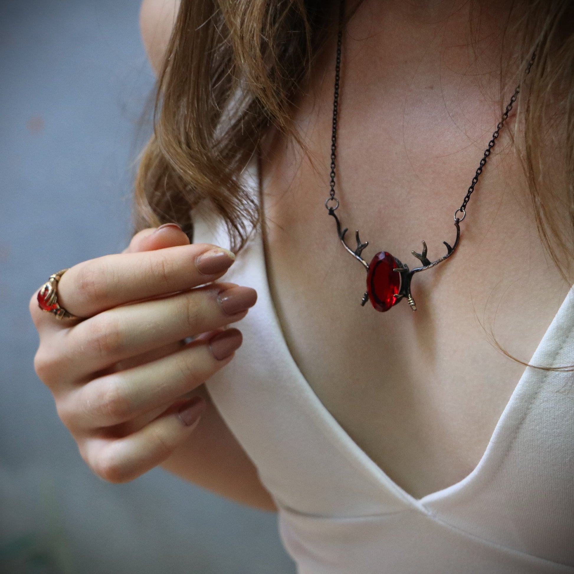 Alageyik Boynuzu Kolye (Tüm Maden ve Taş Seçenekleri)