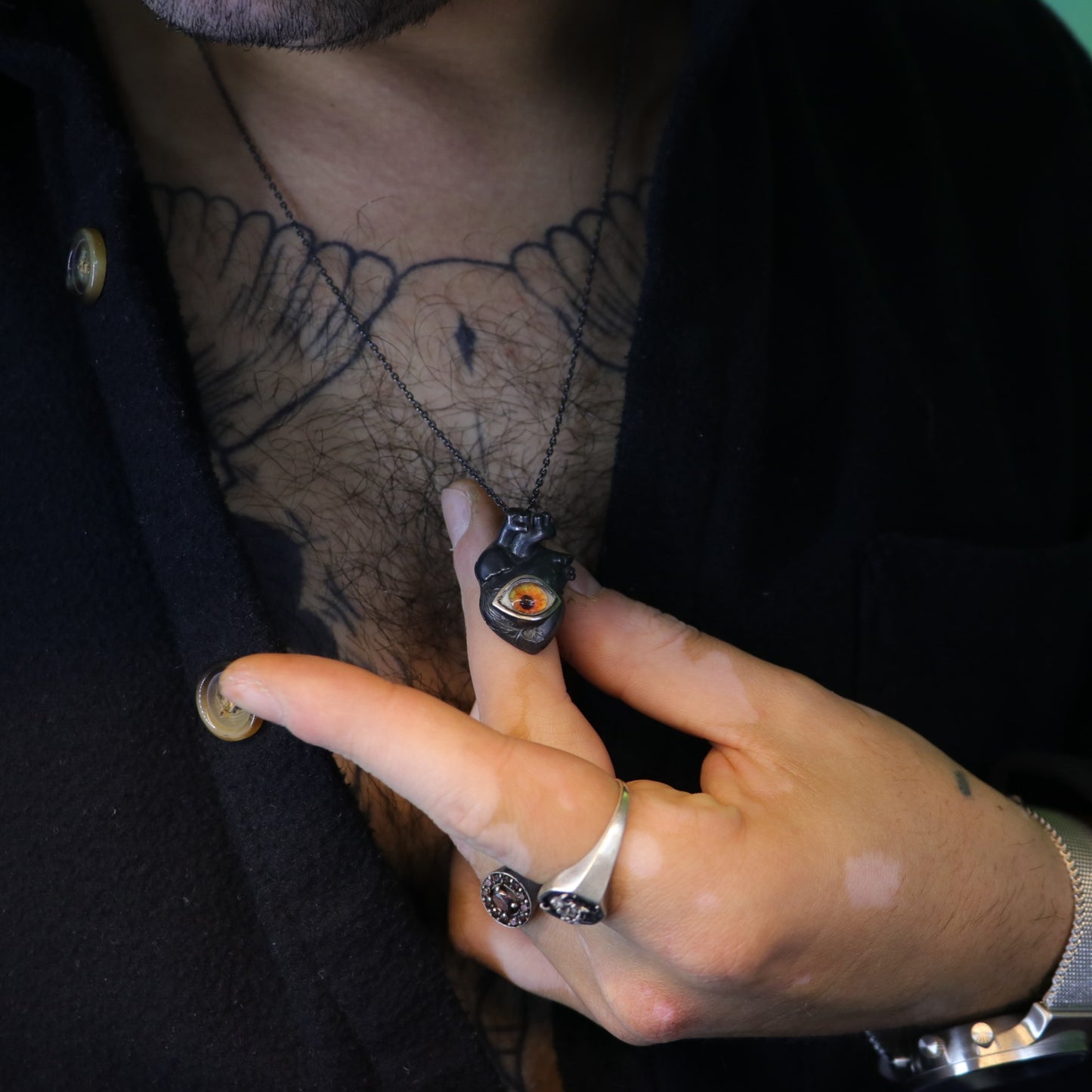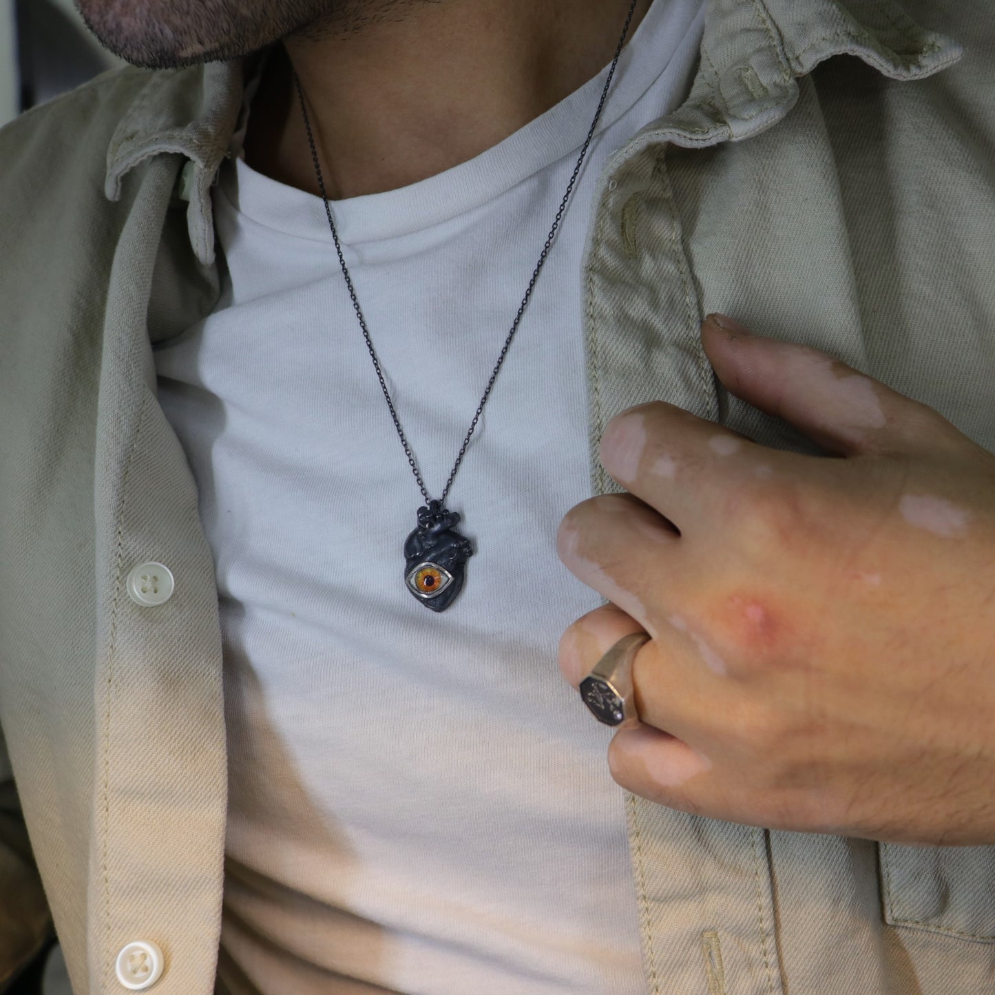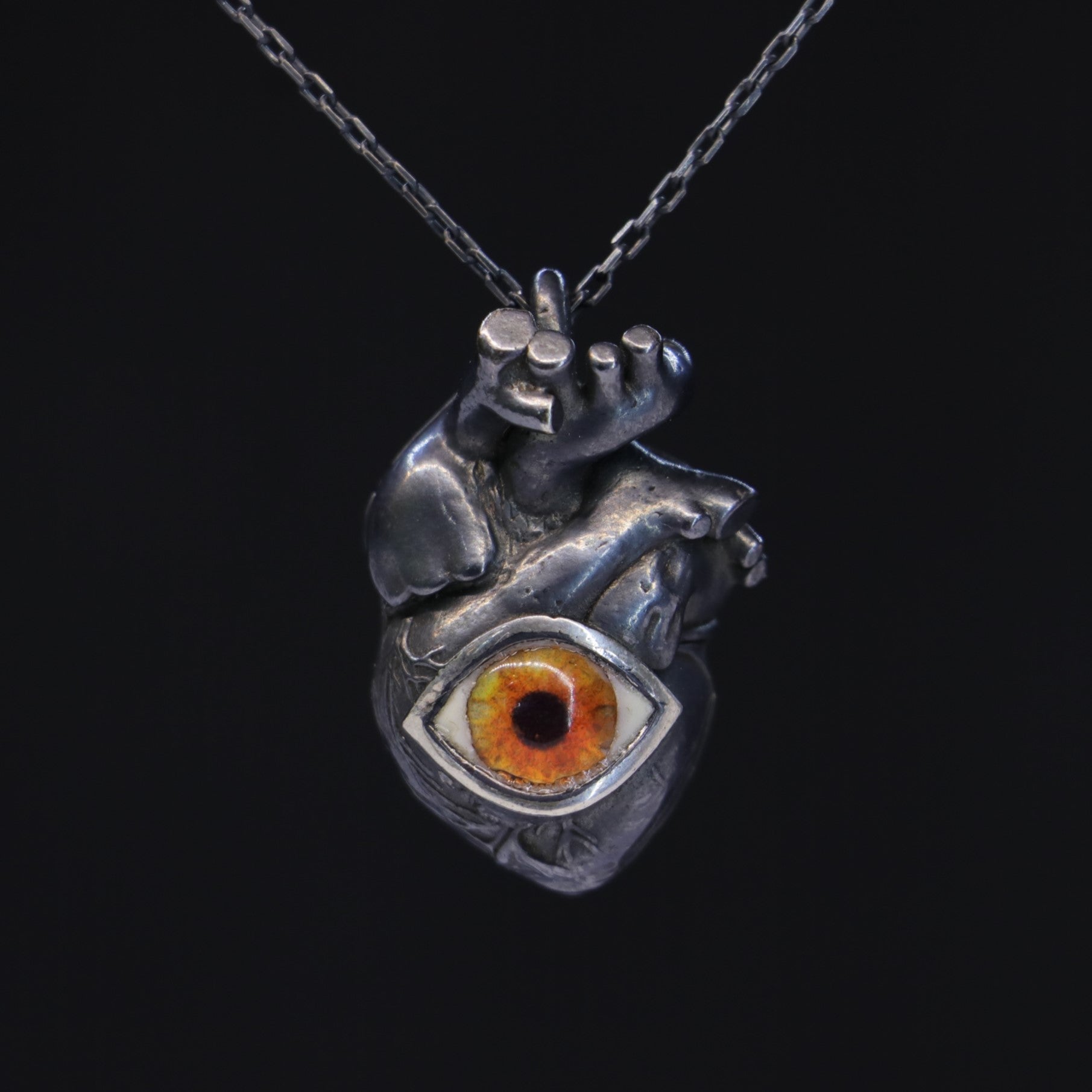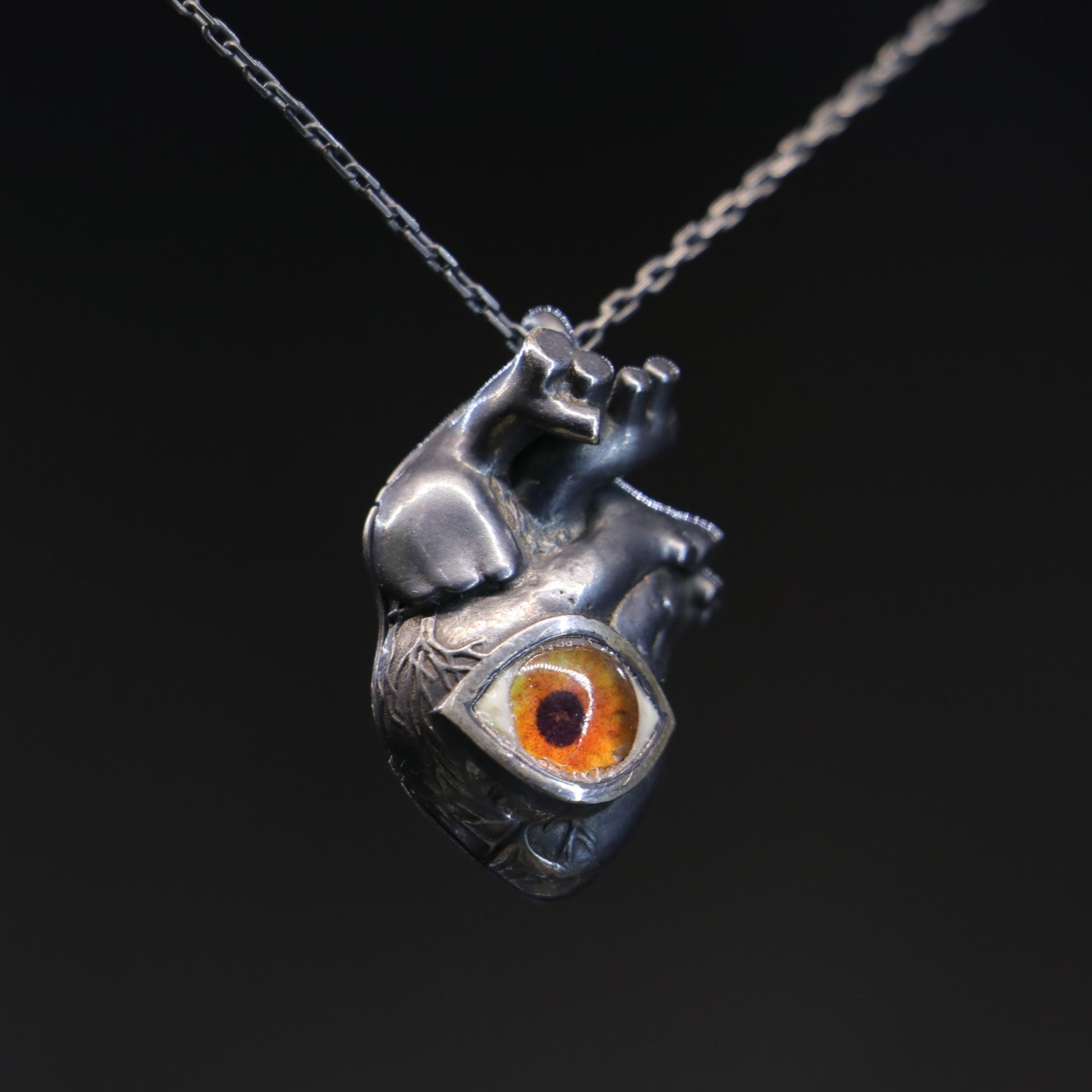 Anatomik Kalp ve Göz 925 Gümüş Kolye
