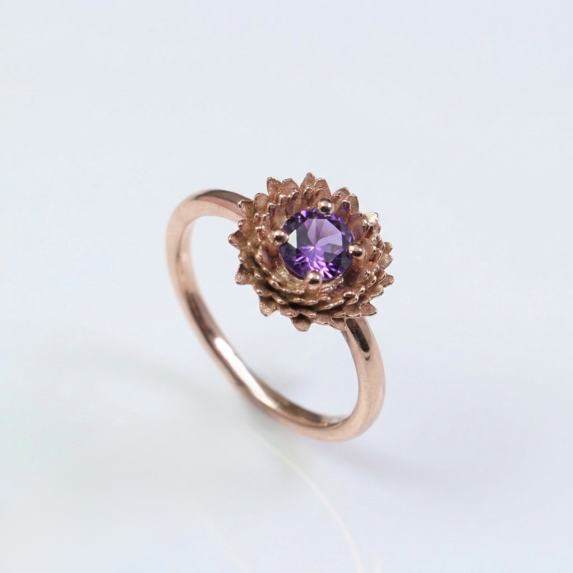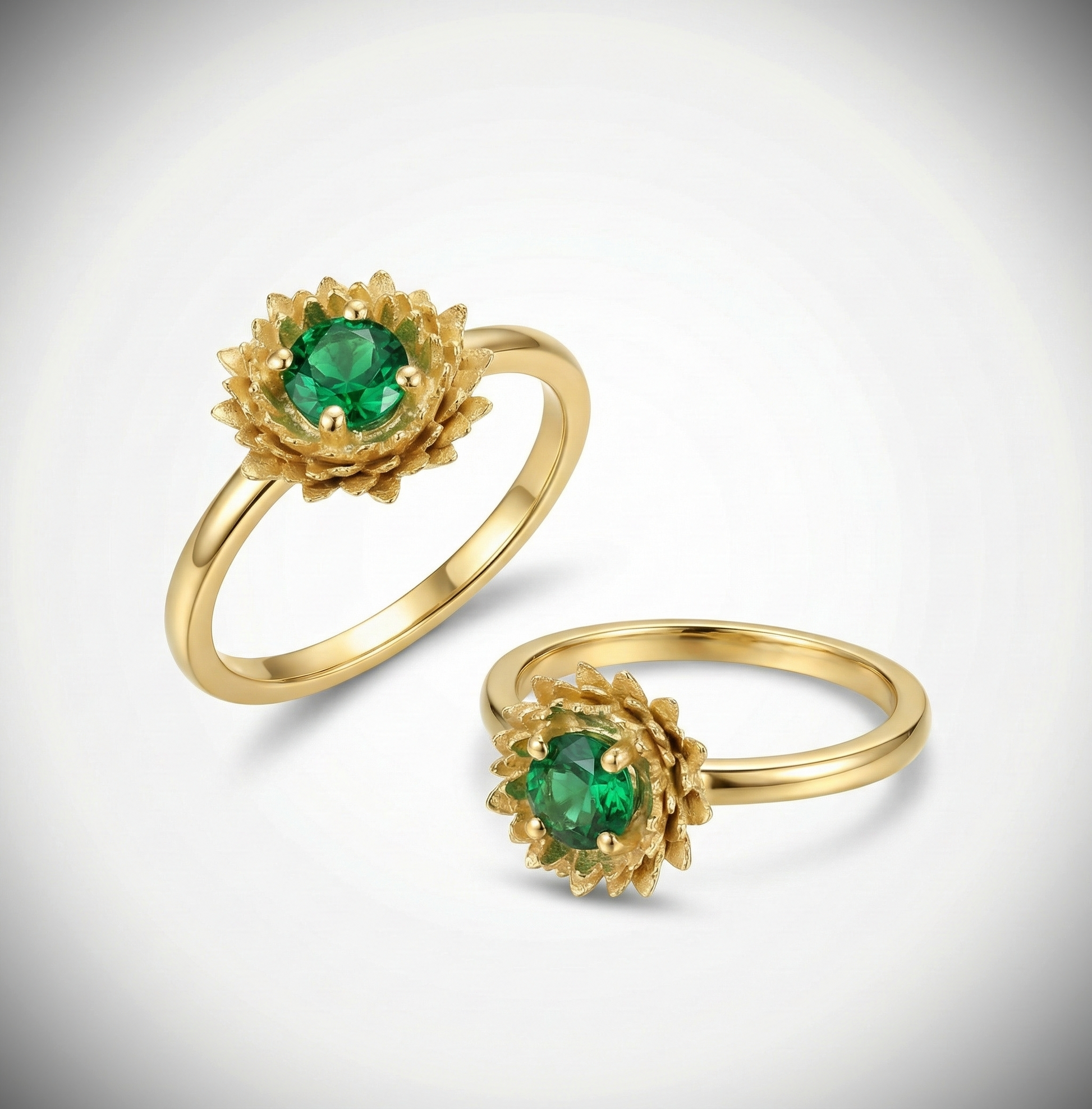 Ay Çiçeği Yüzük (Tüm Taş ve Maden Seçenekleri)