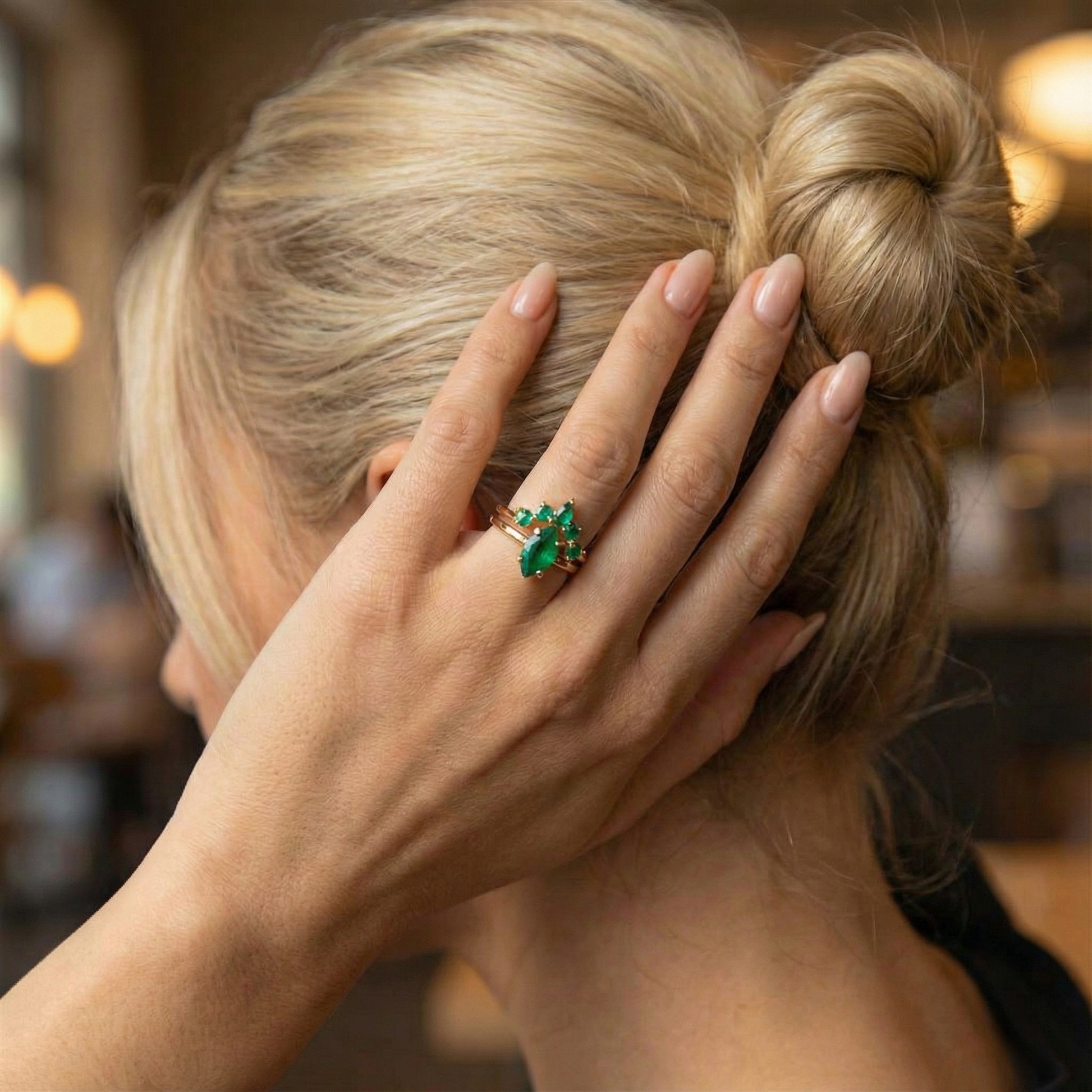 Garnet İkili Set 925 Gümüş Altın Kaplama Yüzük