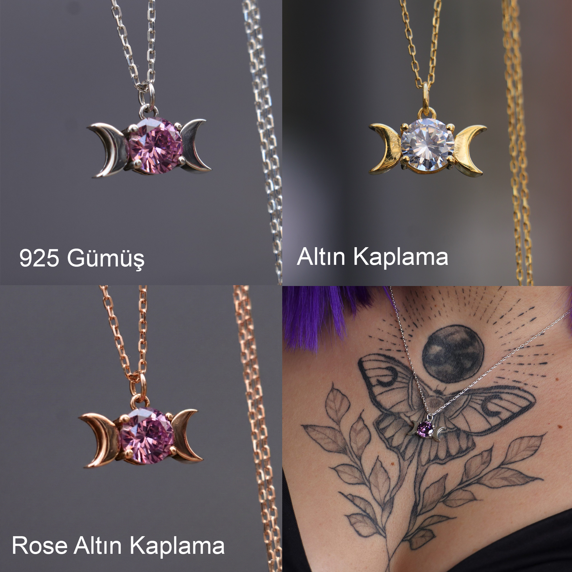 Ay Tanrıçası Pembe Kuvars 925 Gümüş Kolye