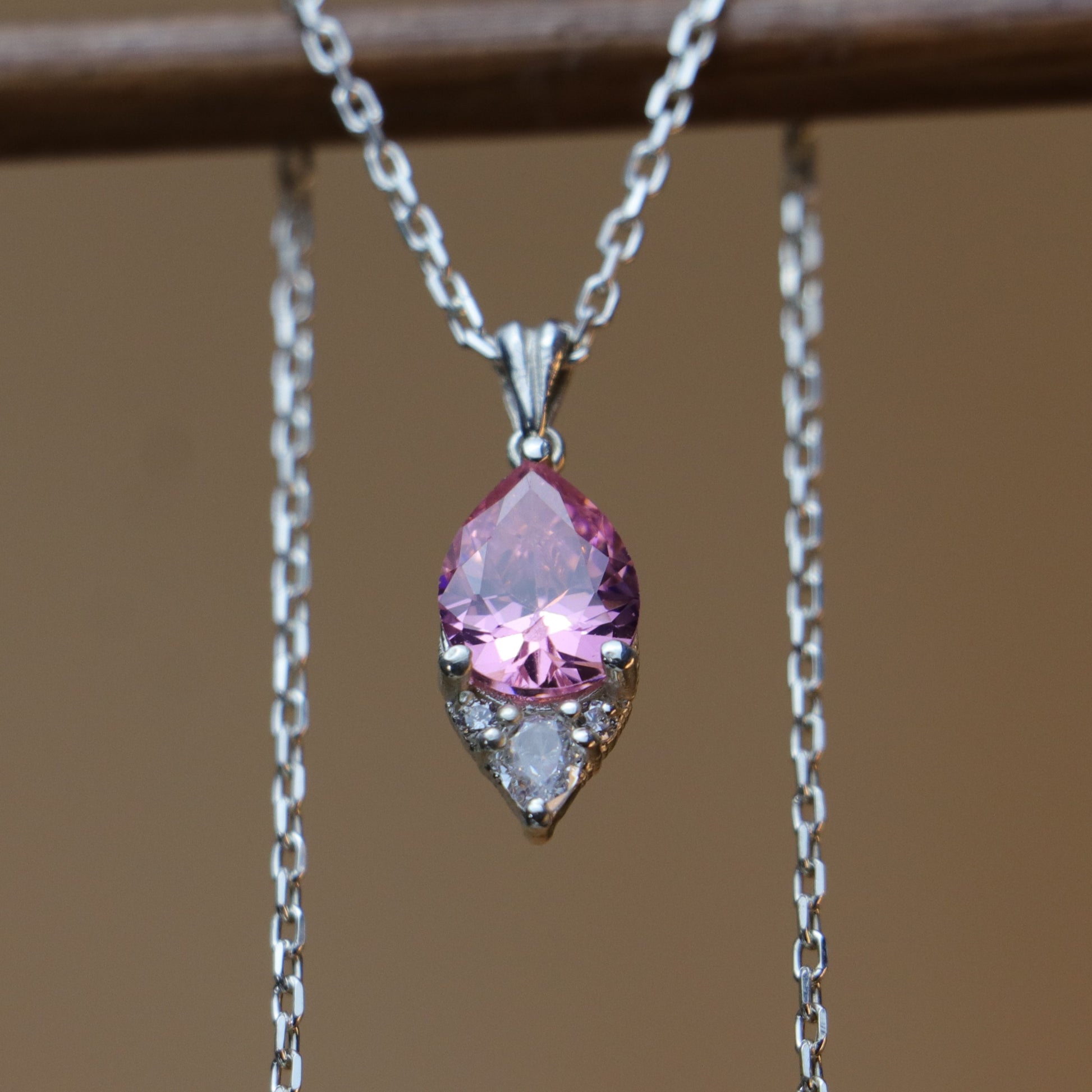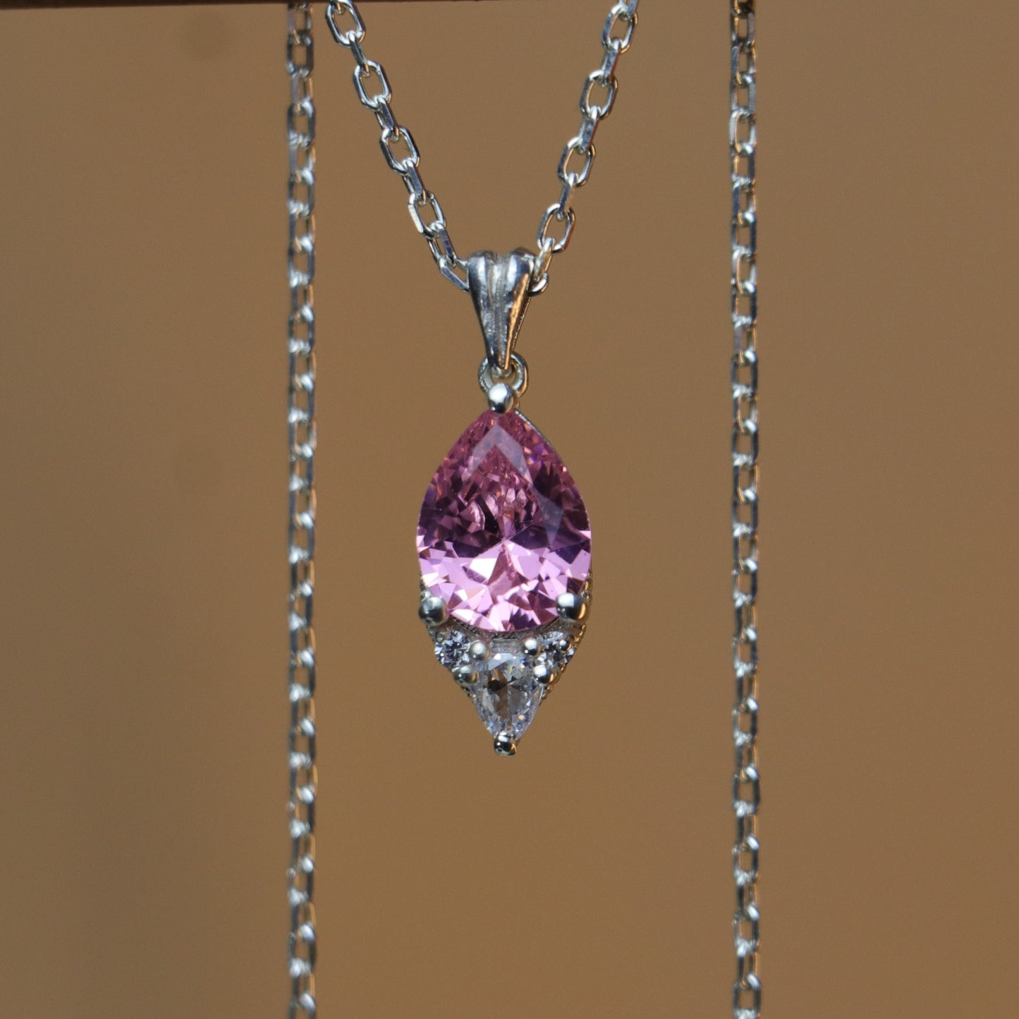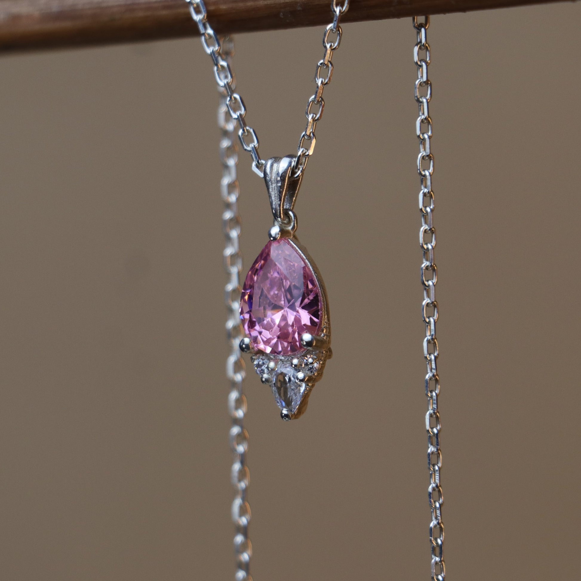 Damla Kesim Pembe Turmalin ve Mozanite 925 Gümüş Kolye