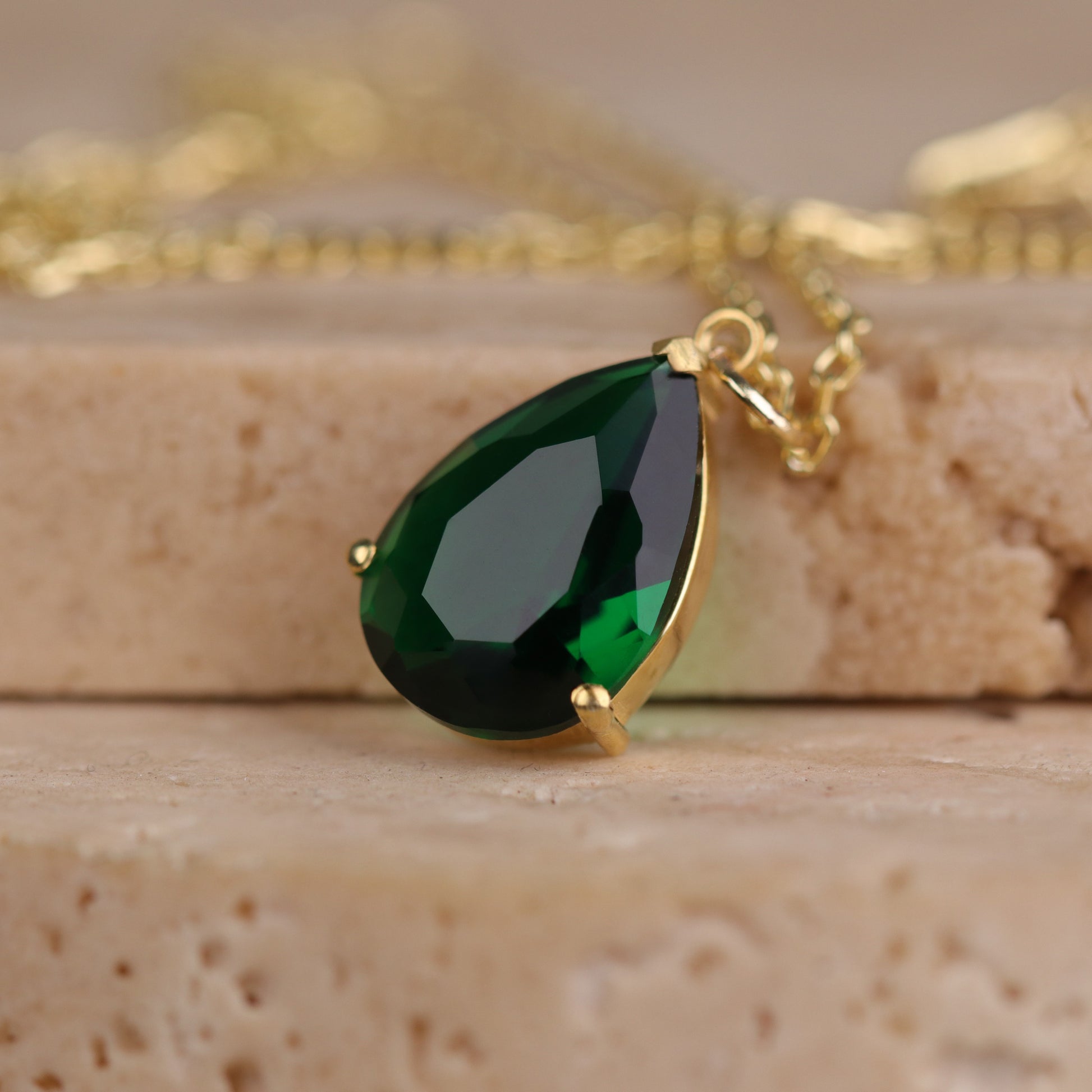Damla Yeşim 925 Gümüş 14 Ayar Altın Kaplama Kolye