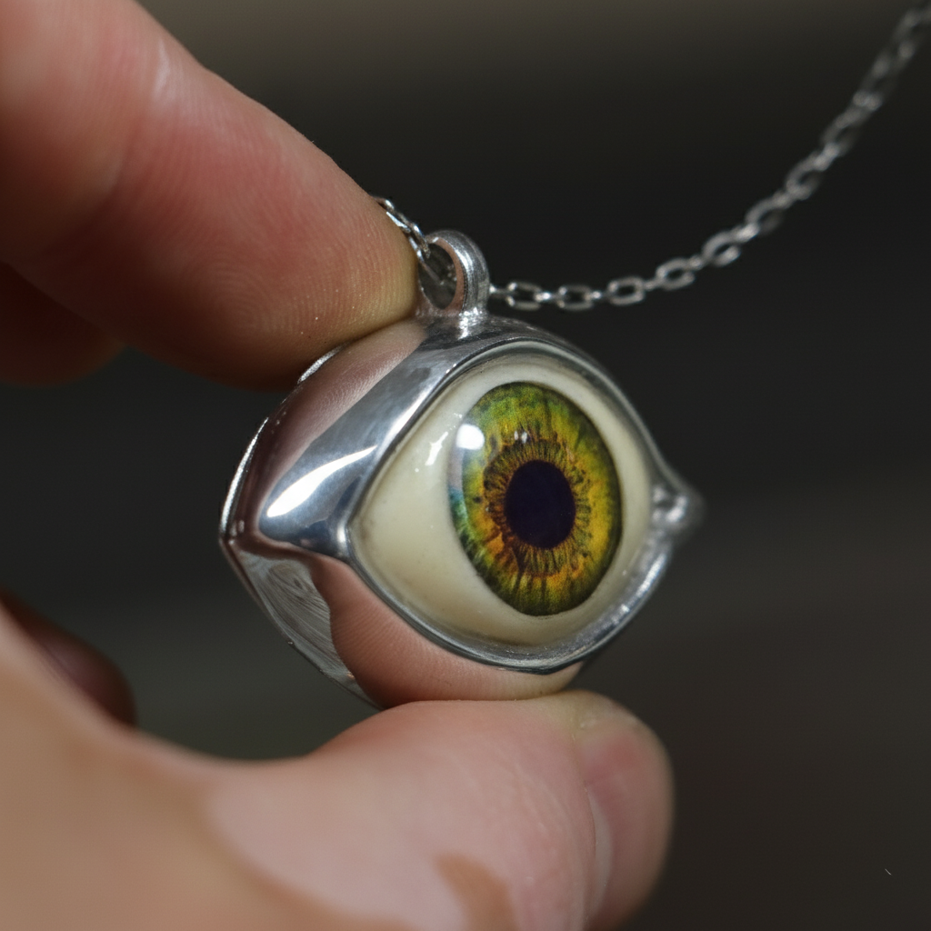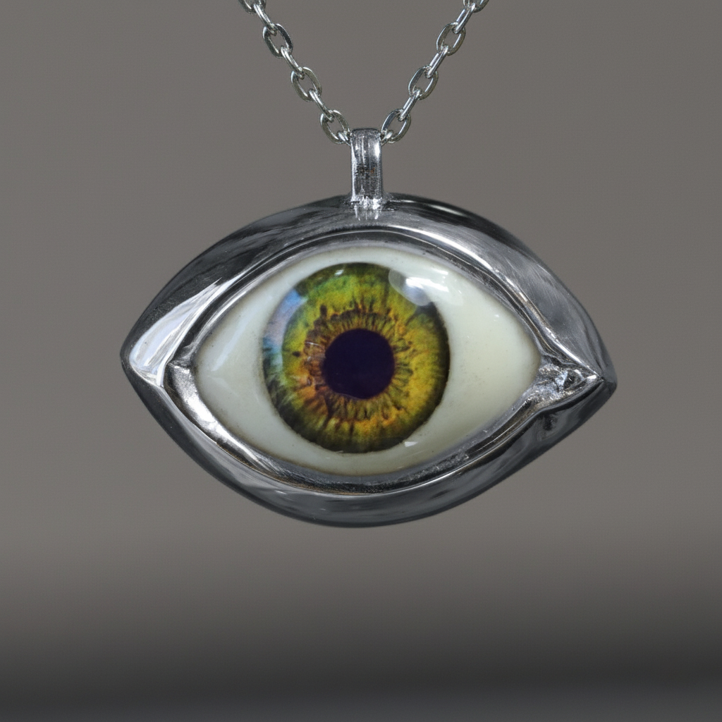 El Yapımı Gerçekçi Yeşil Göz Kolye | "Doğa'nın Gözü" Mistik Tılsım | 925 Gümüş & Pirinç