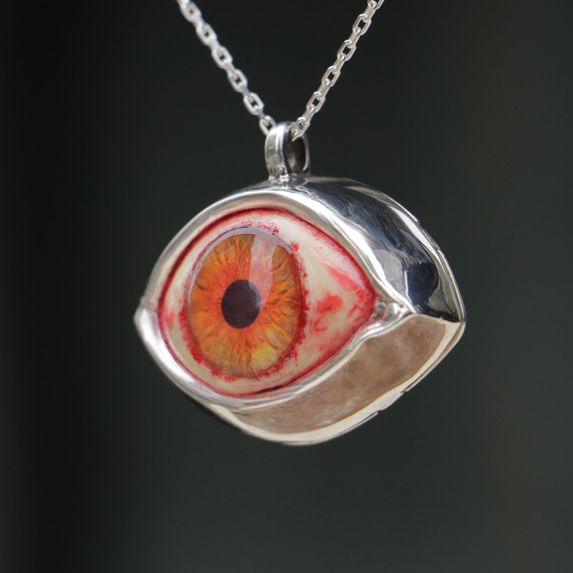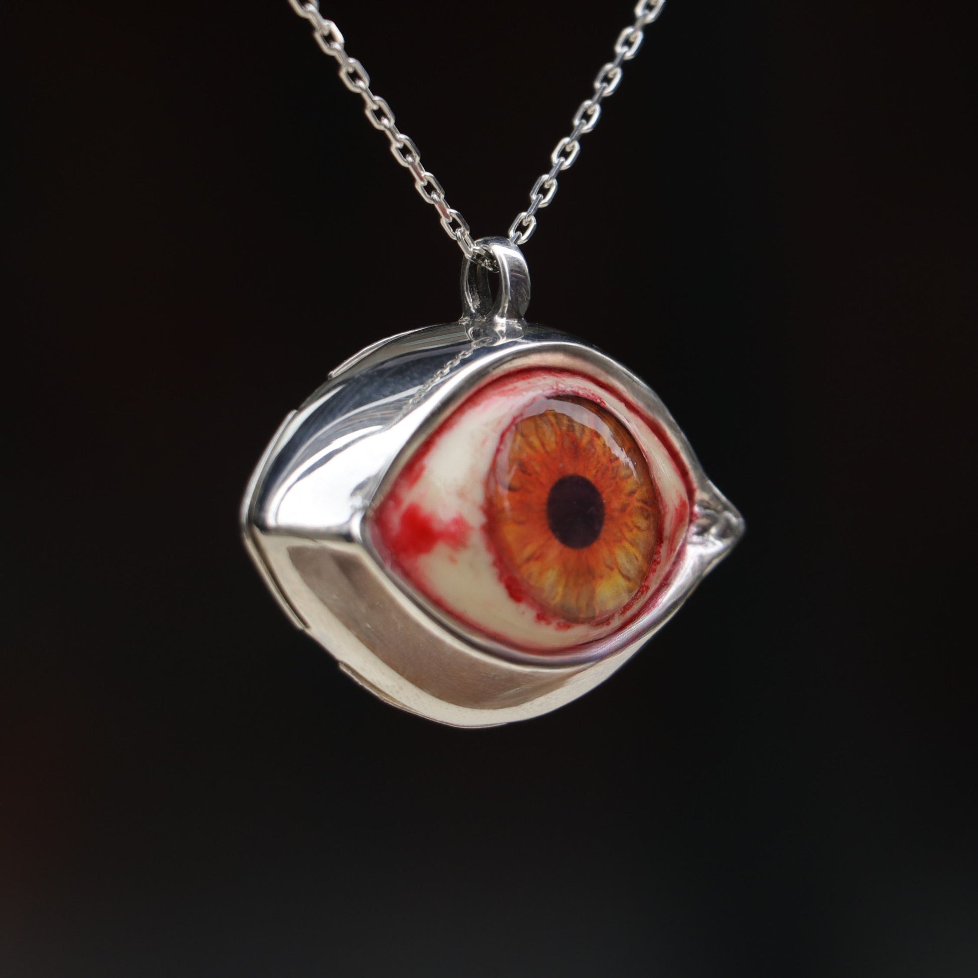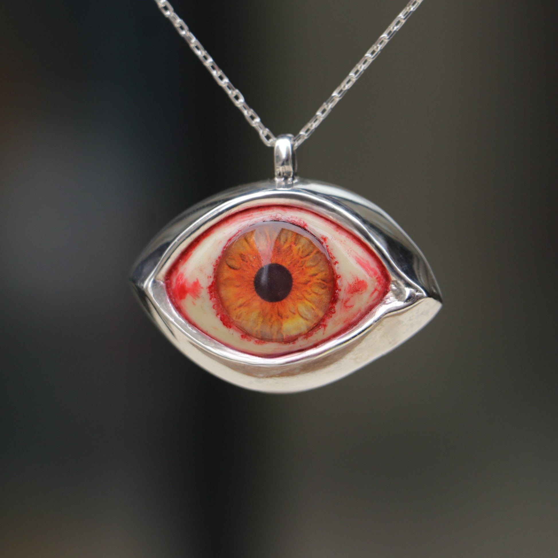 El Yapımı Ateş Göz Kolye | "Ejderha Gözü" Gerçekçi Tasarım | 925 Gümüş Gotik Tılsım