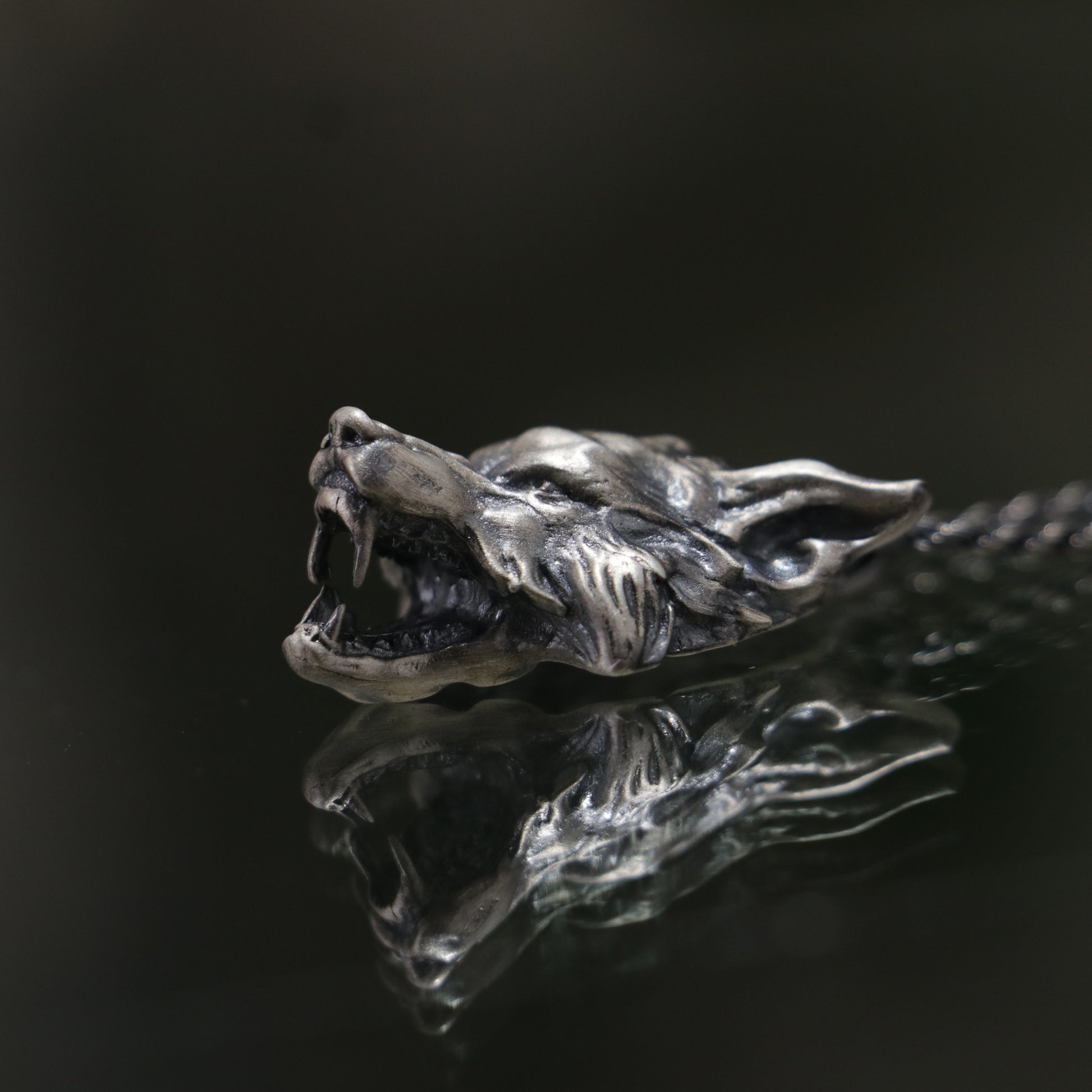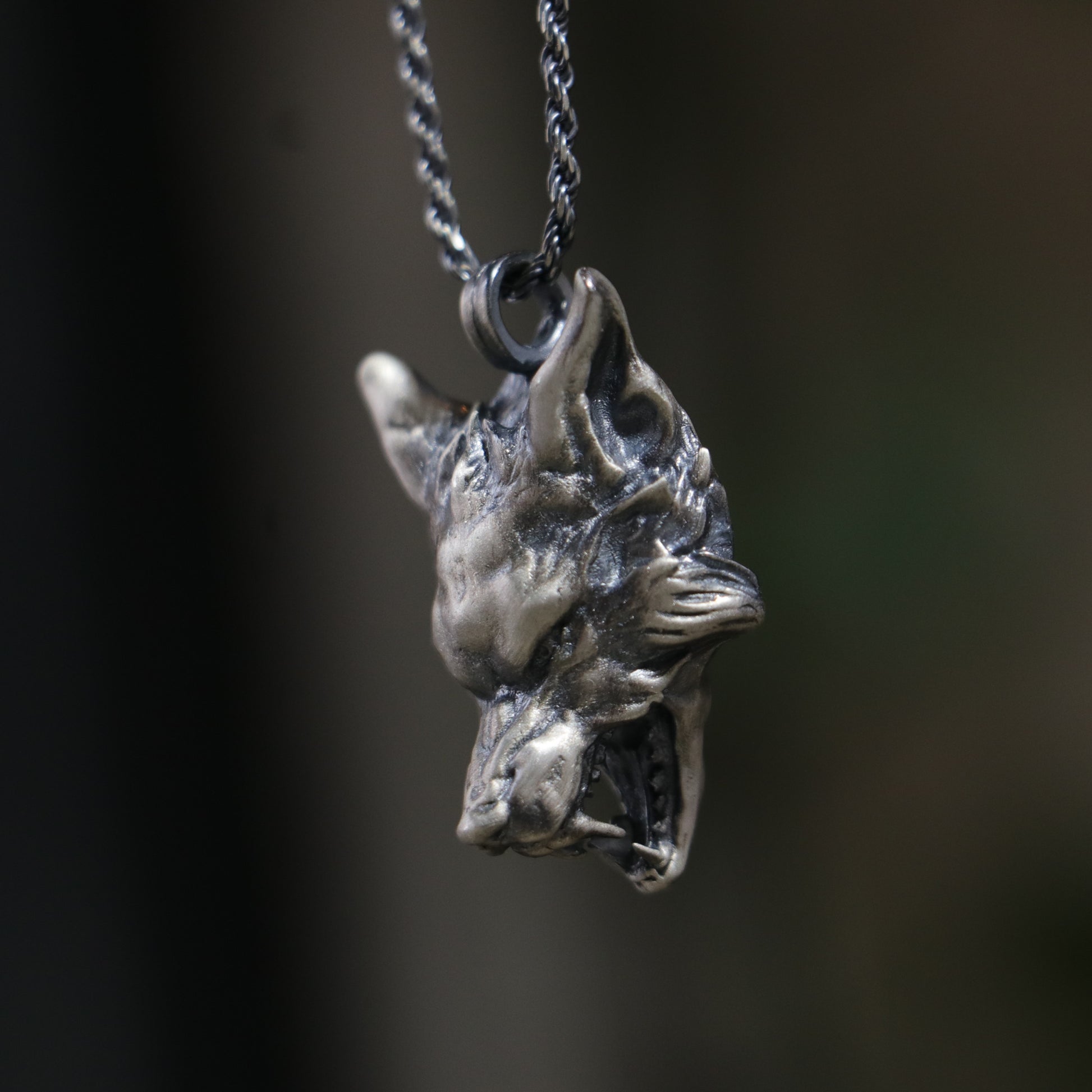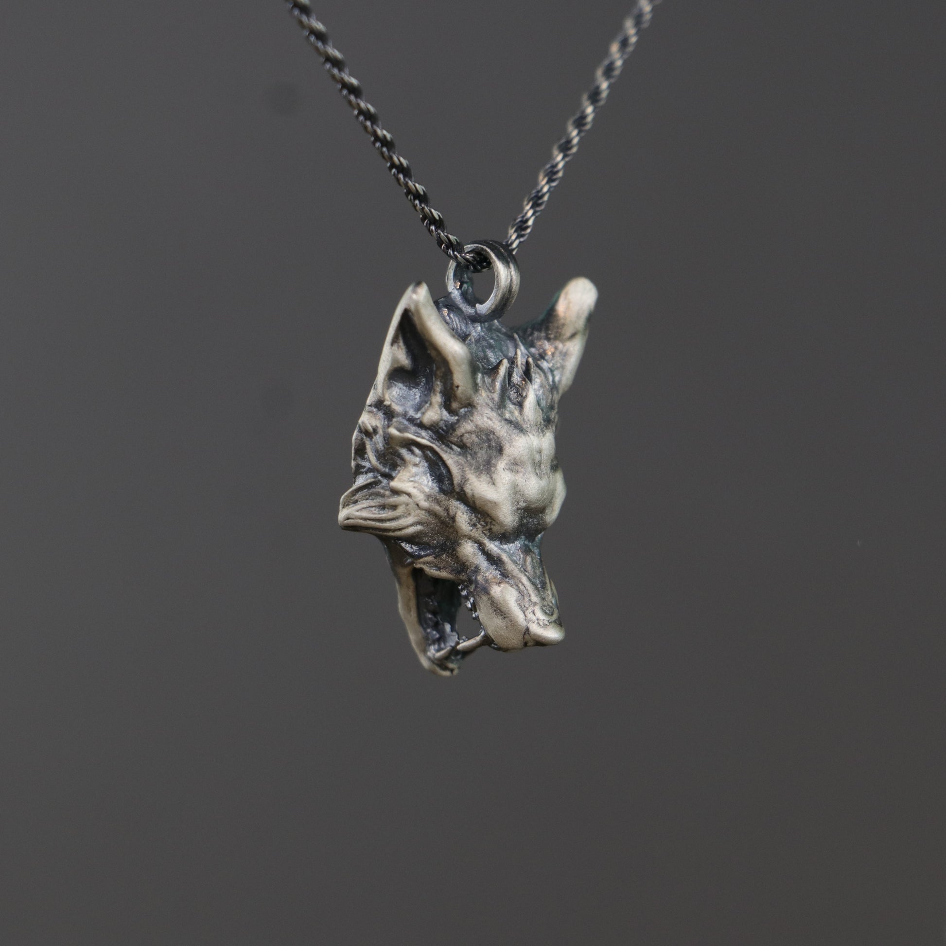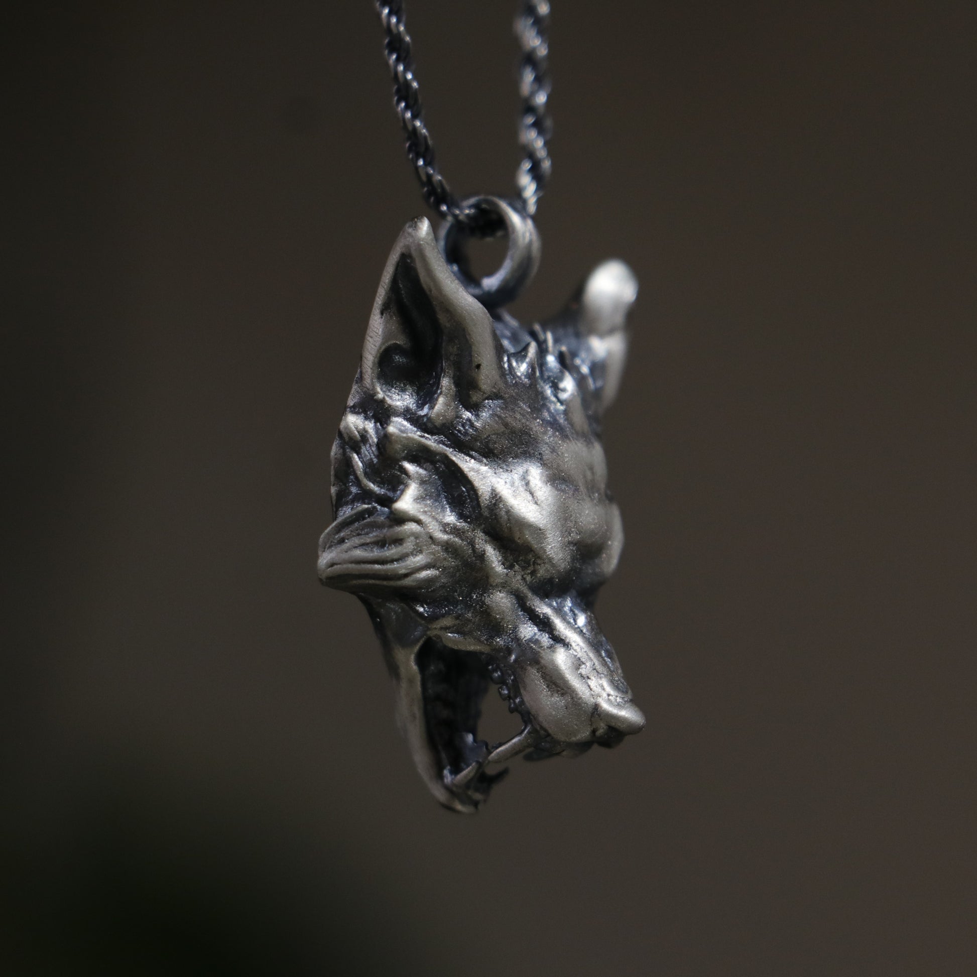 El Yapımı Kurt Erkek 925 Gümüş Kolye