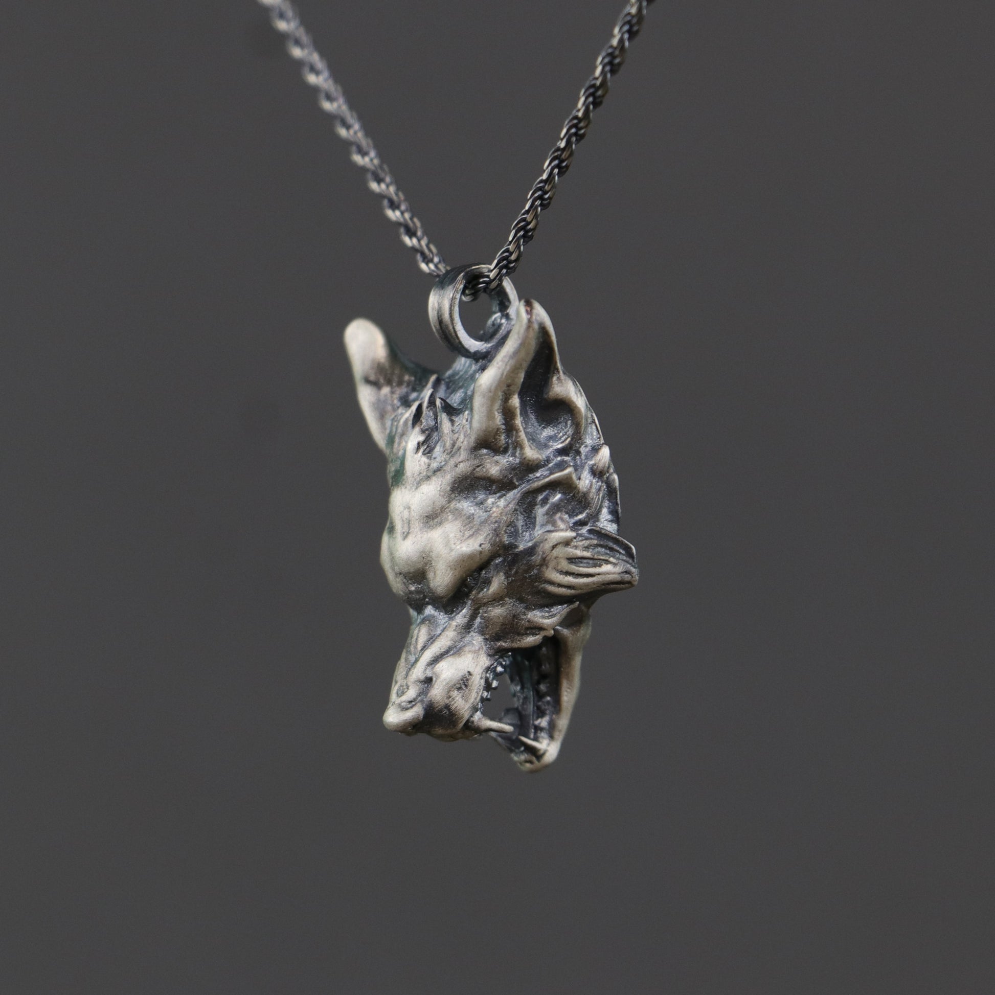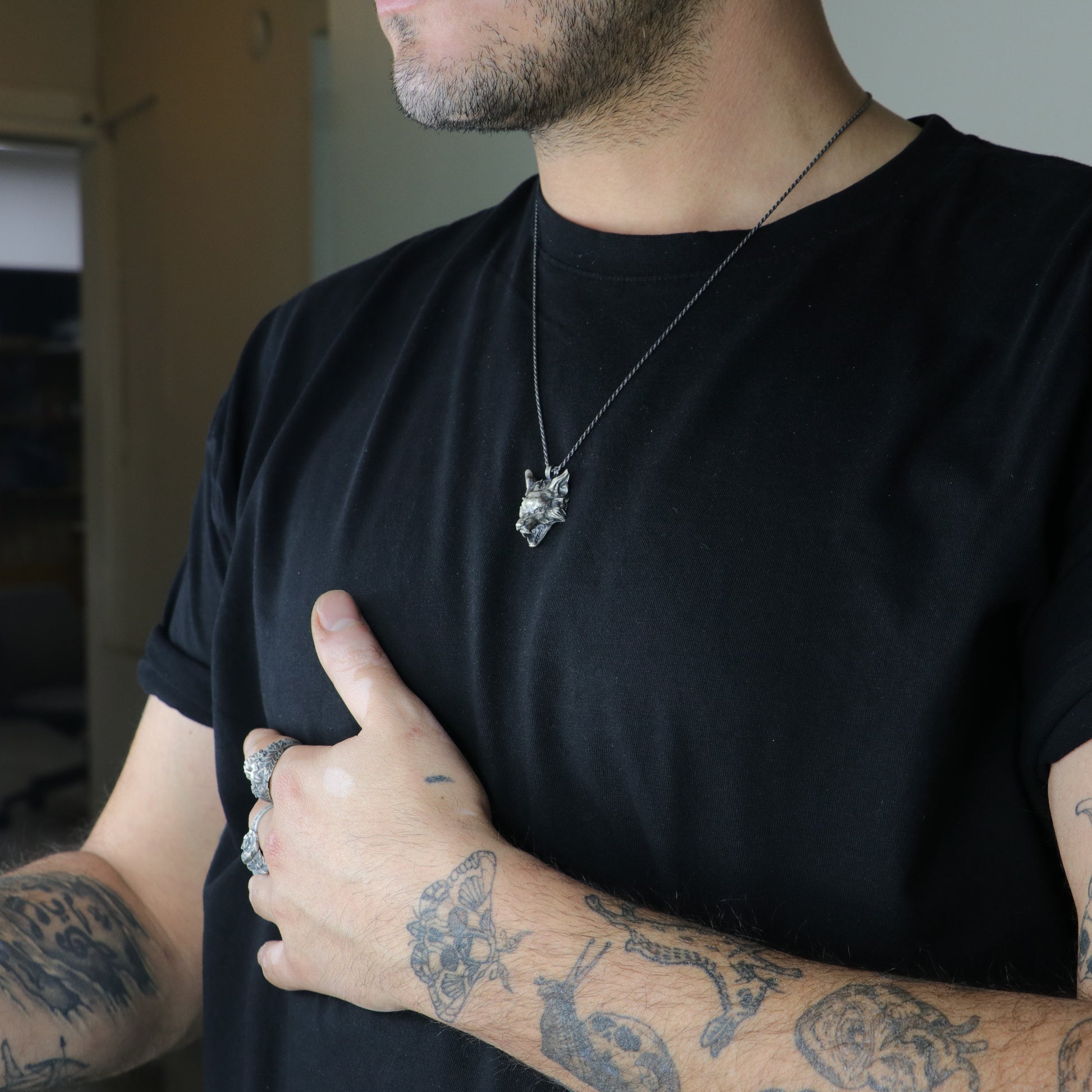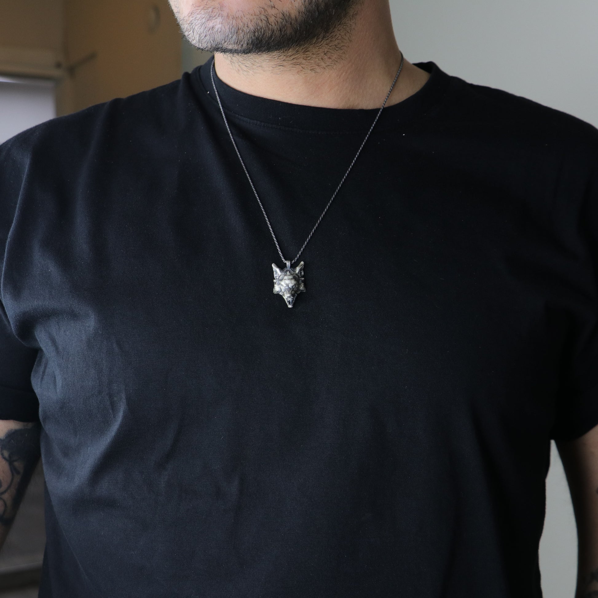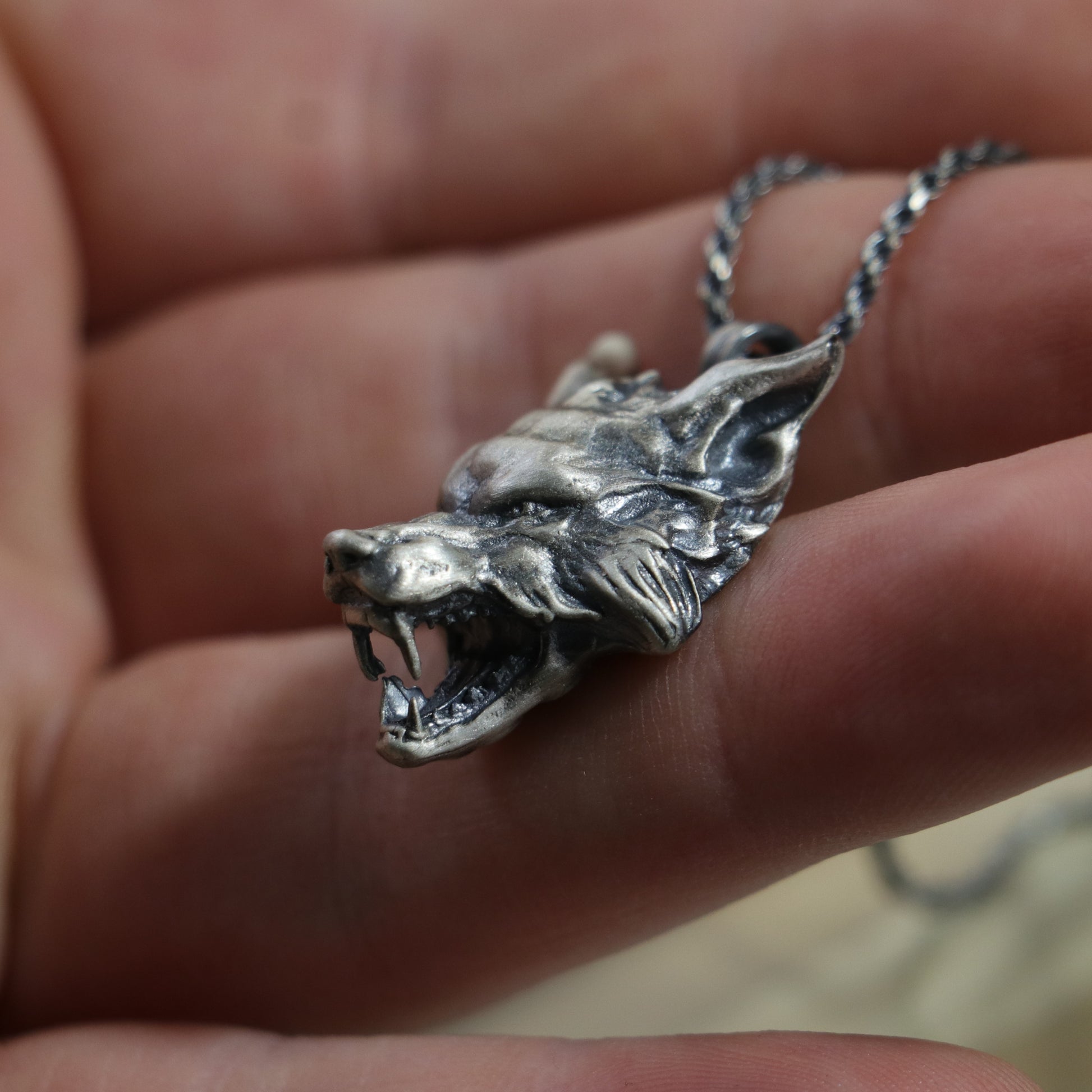 El Yapımı Kurt Erkek 925 Gümüş Kolye