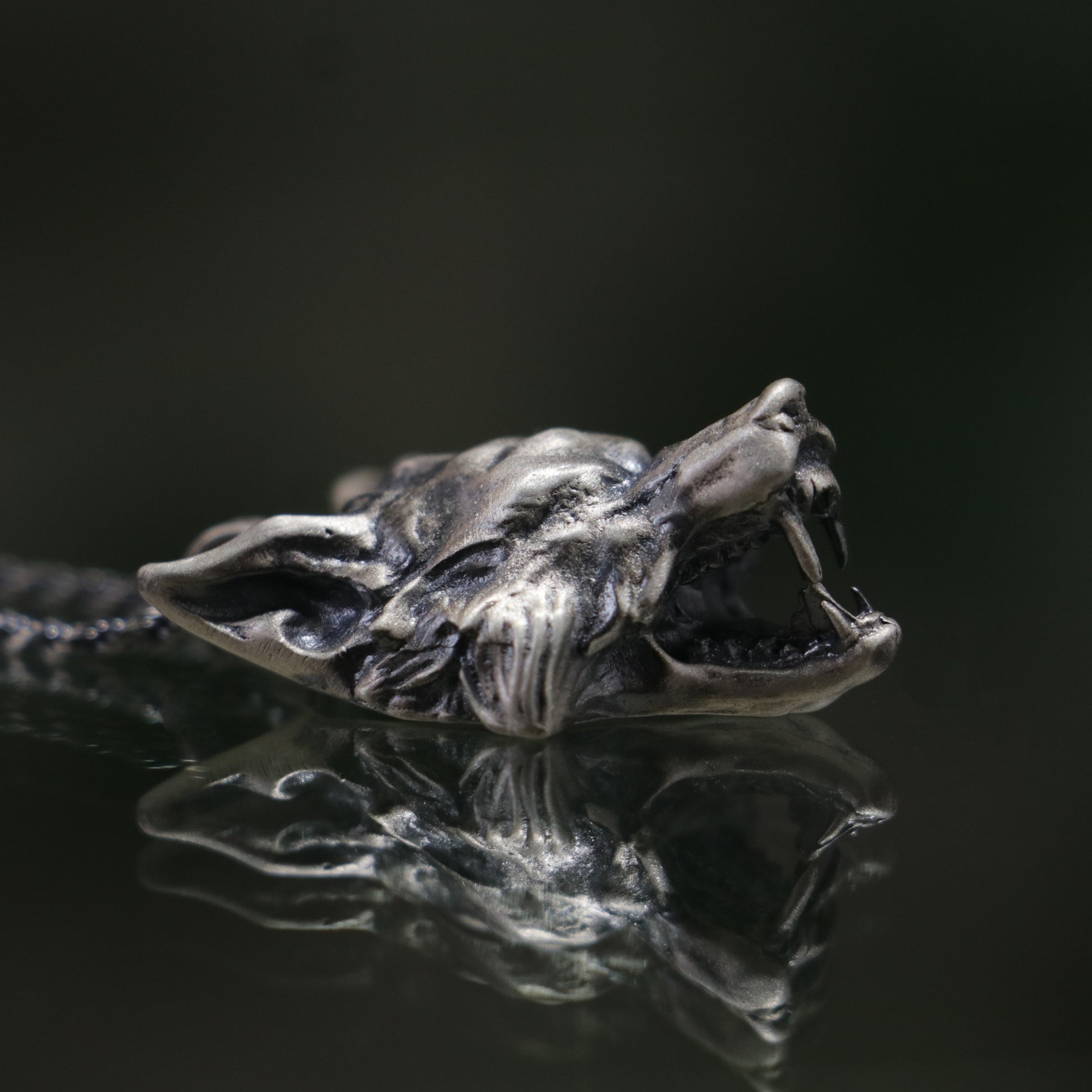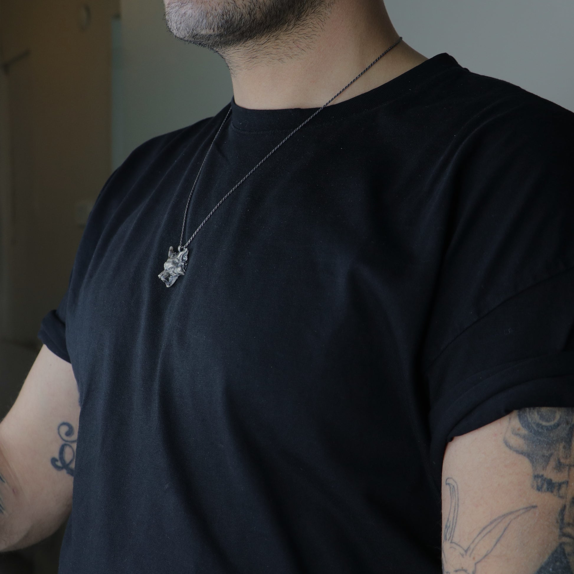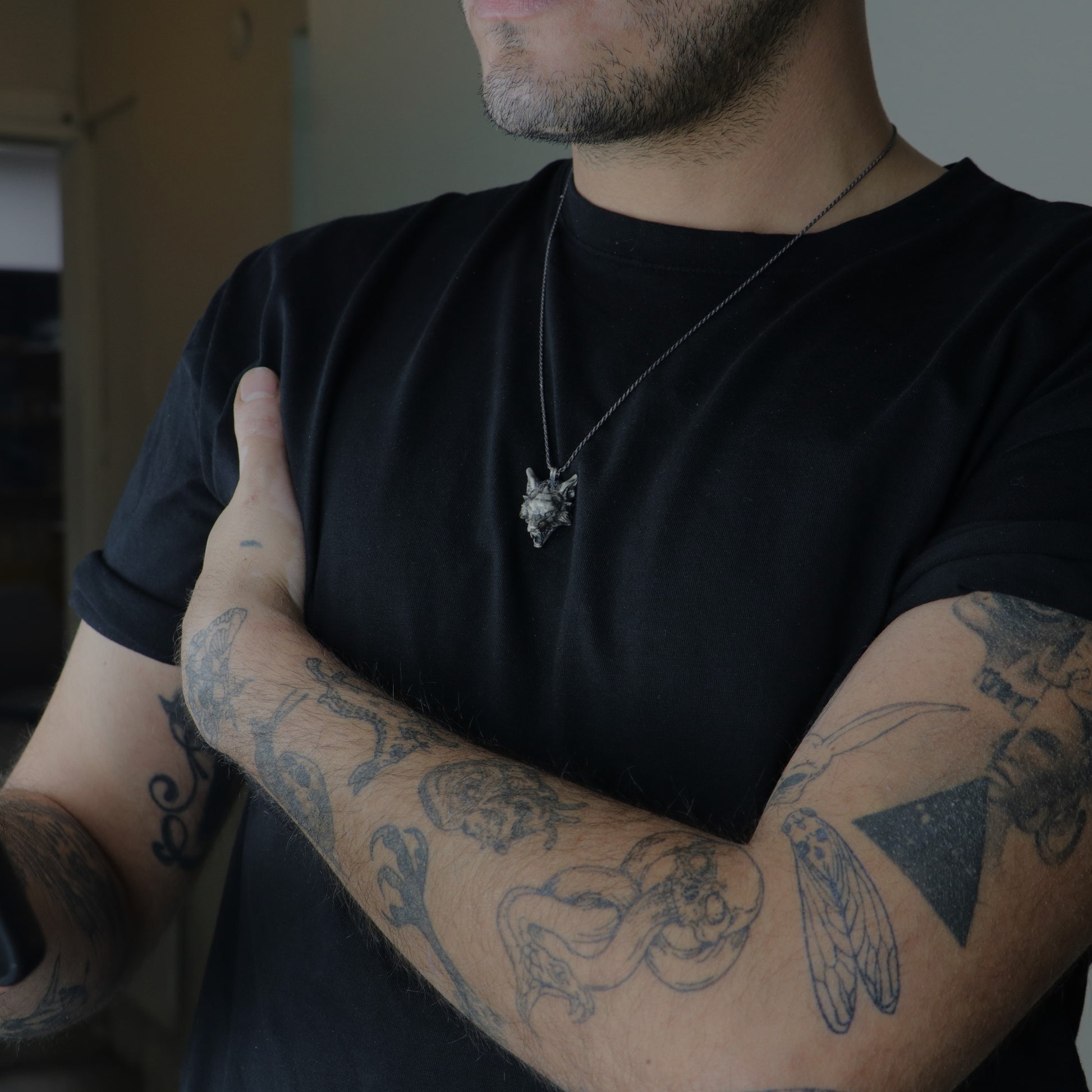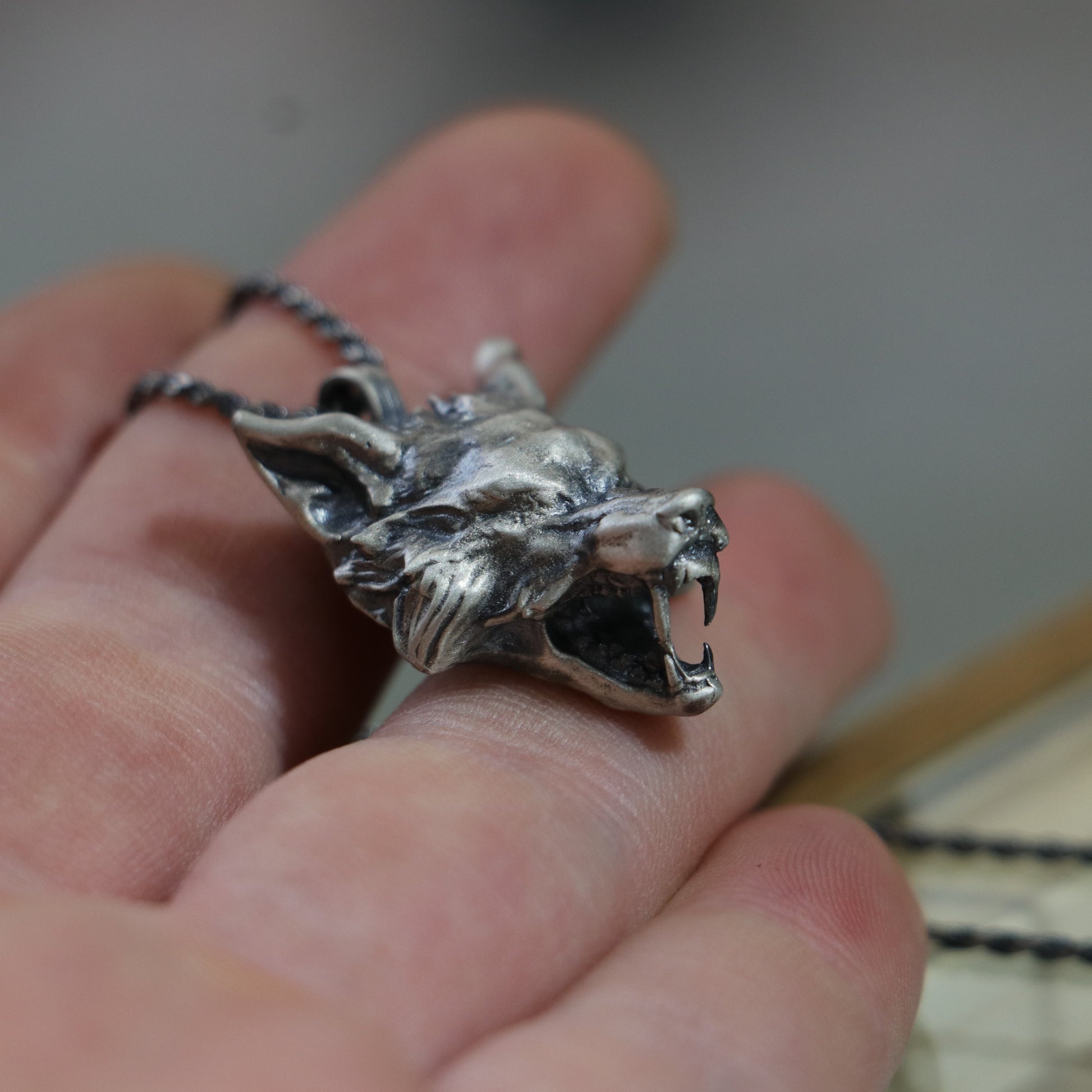 El Yapımı Kurt Erkek 925 Gümüş Kolye