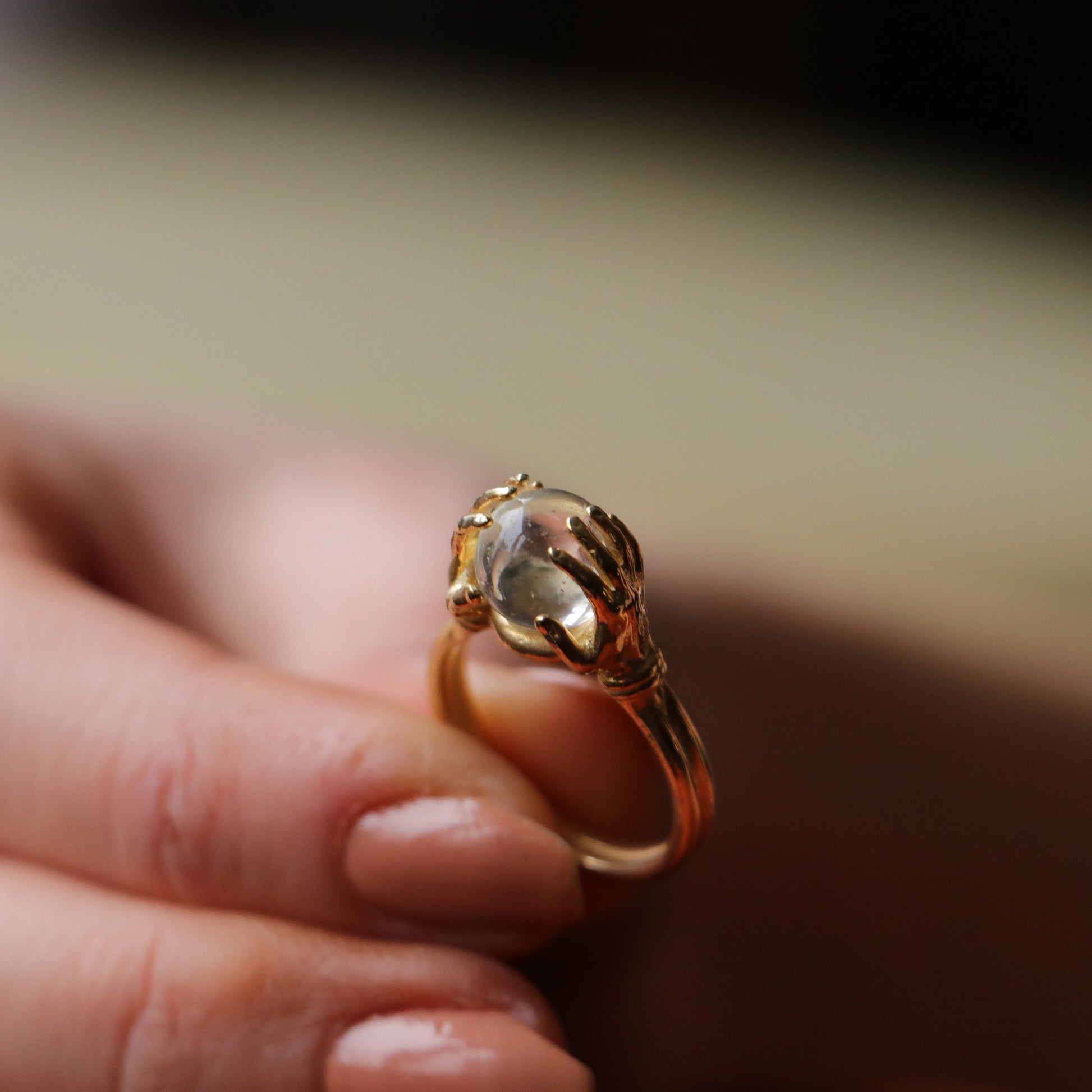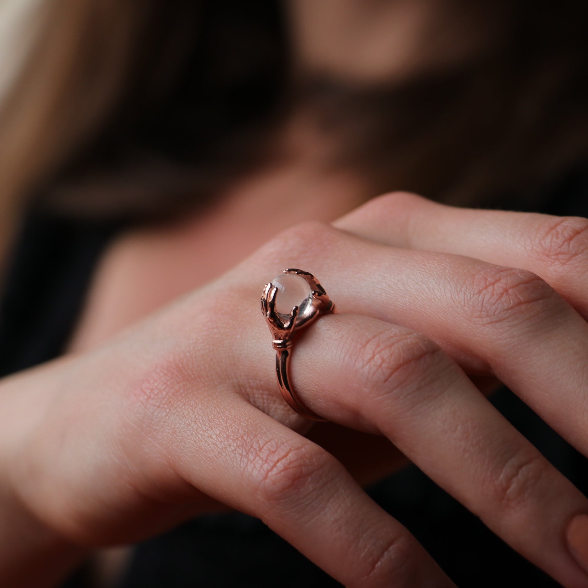 Eller Arasında Clear Kuvars Yüzük (Tüm Taş ve Maden Seçenekleri)