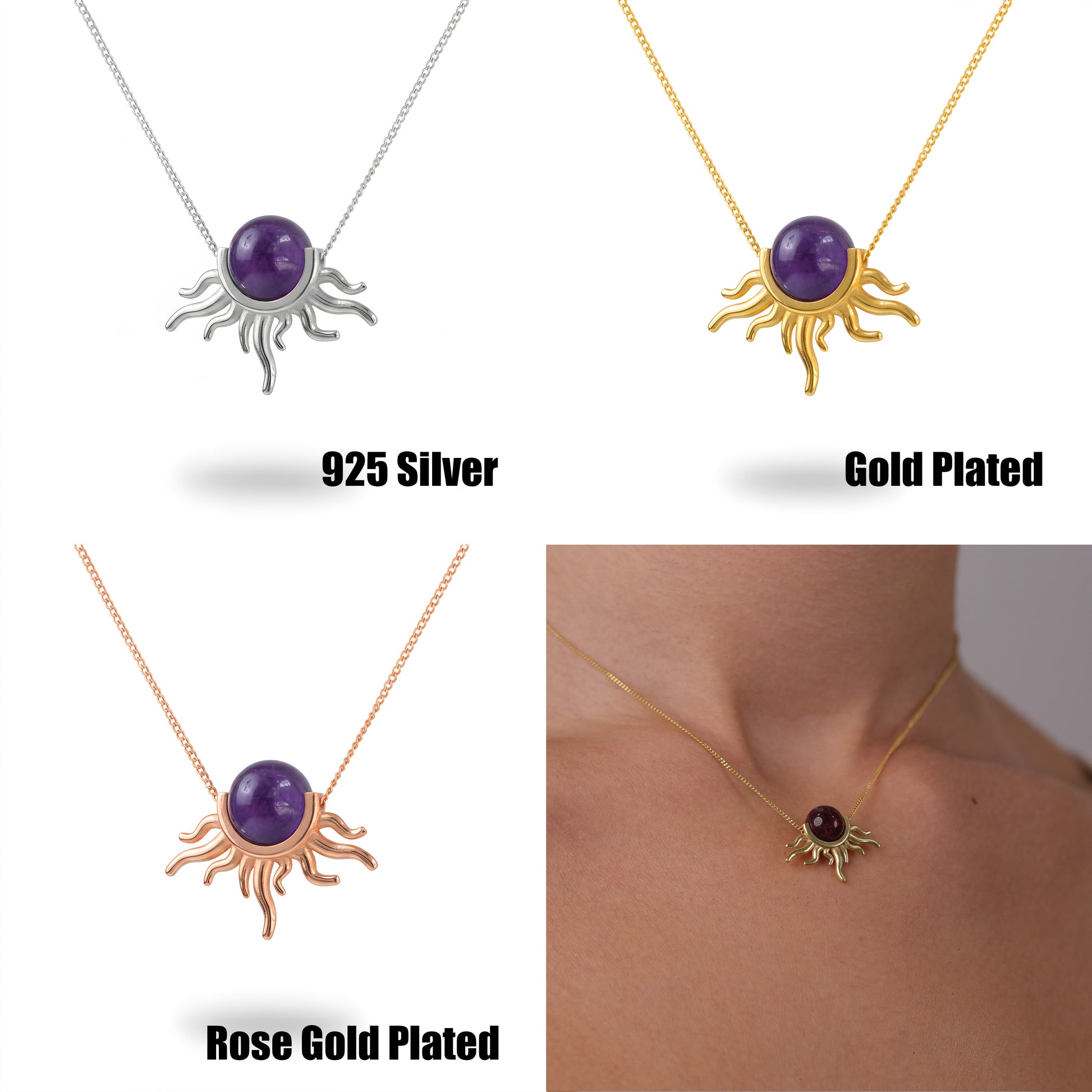 Güneş Ametist Kolye (Tüm Taş ve Maden Seçenekleri)