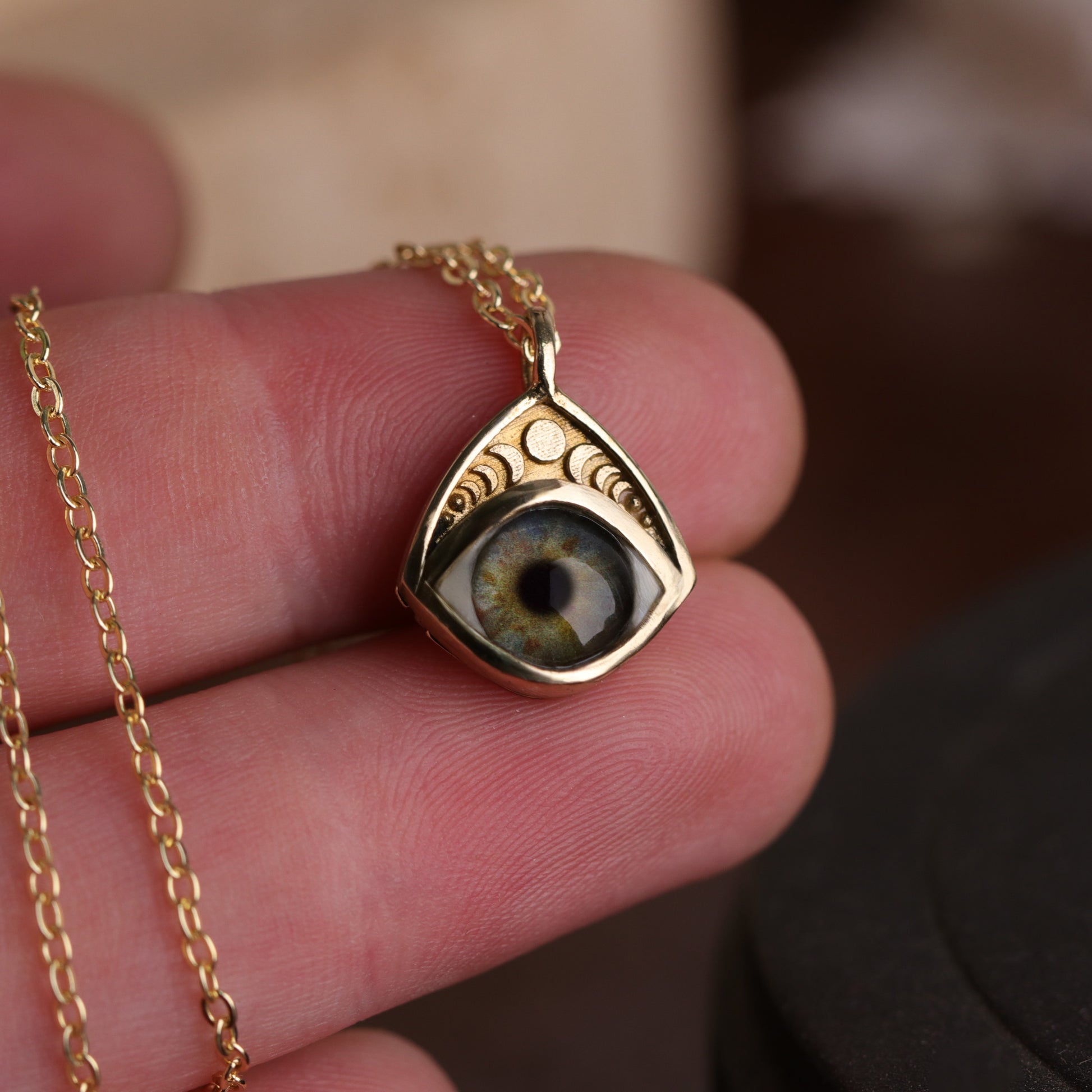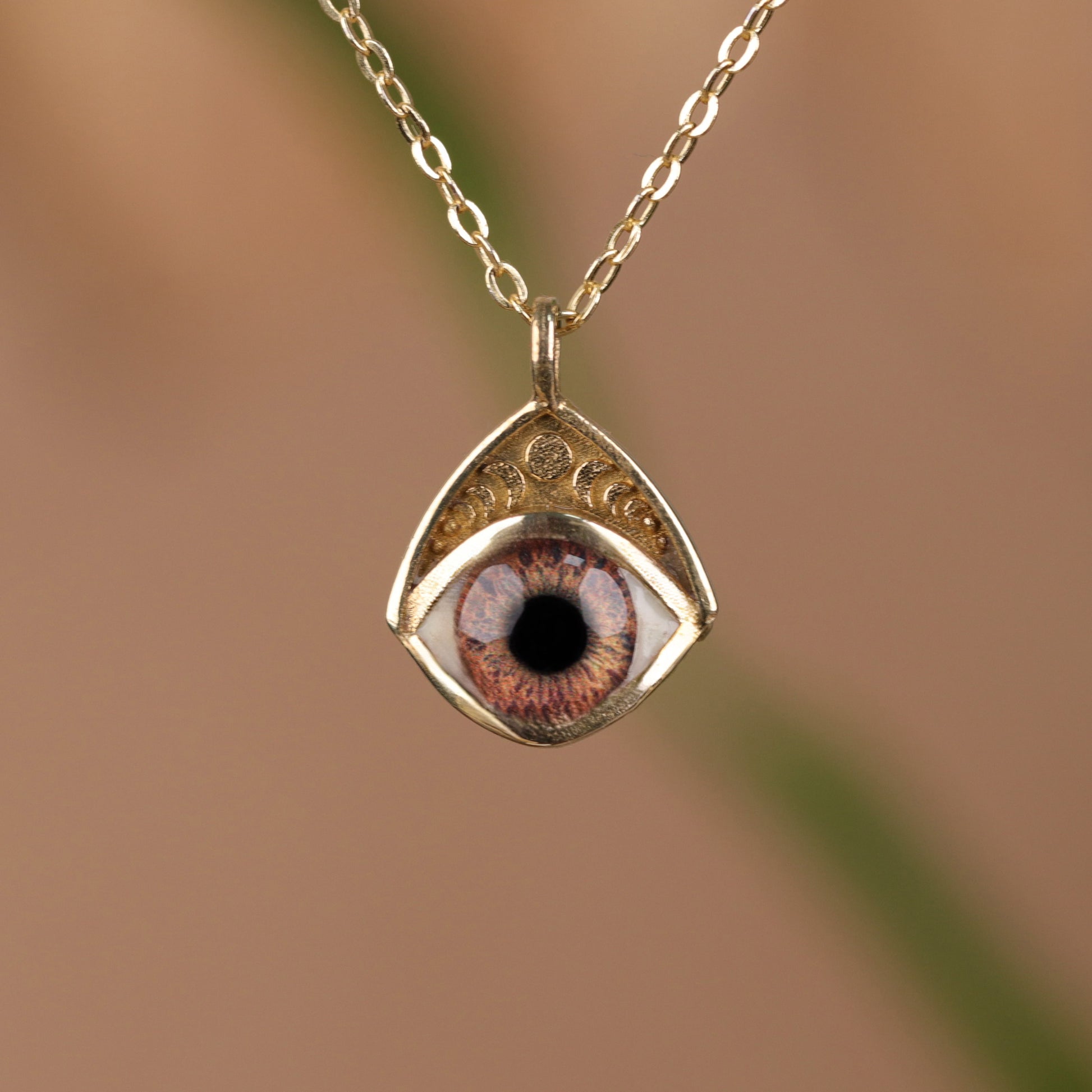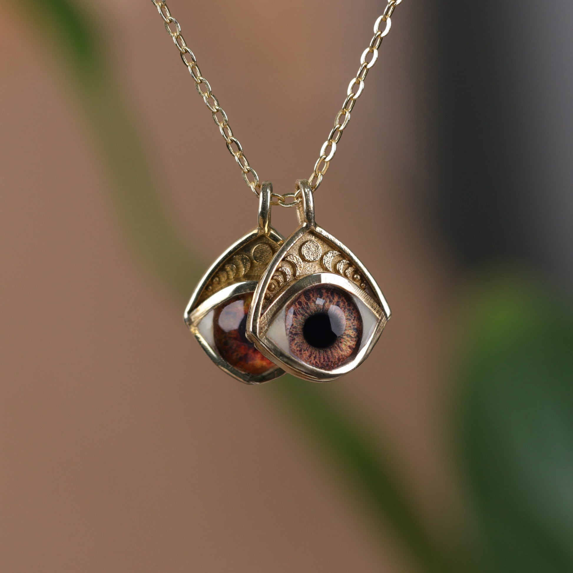 Kişiye Özel Göz Kolye | Fotoğraftan El Yapımı | 925 Ayar Gümüş, Pirinç ve 14 Ayar Altın Hecate Kolye