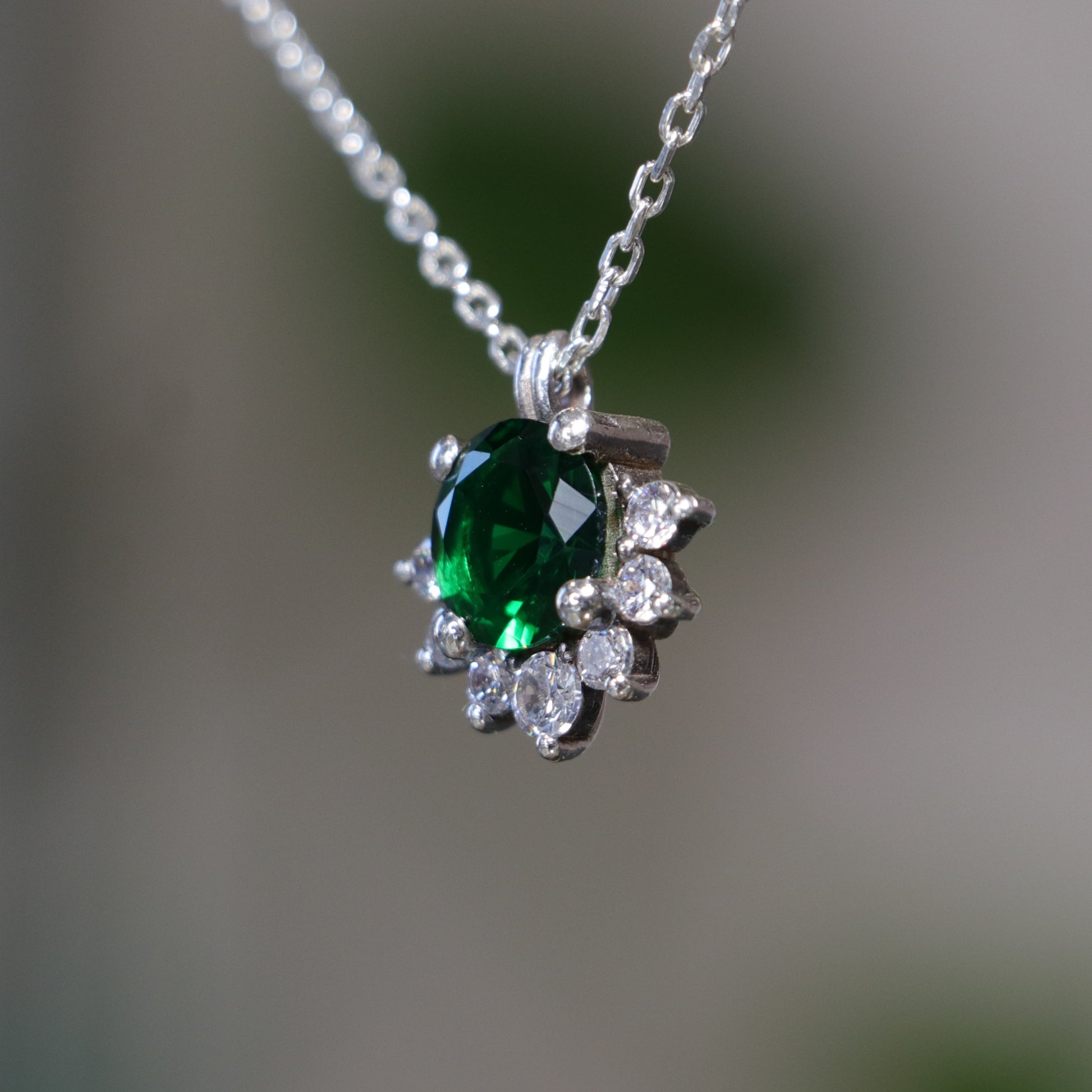 Lab. Zümrüt ve Mozanit 925 Gümüş Kolye
