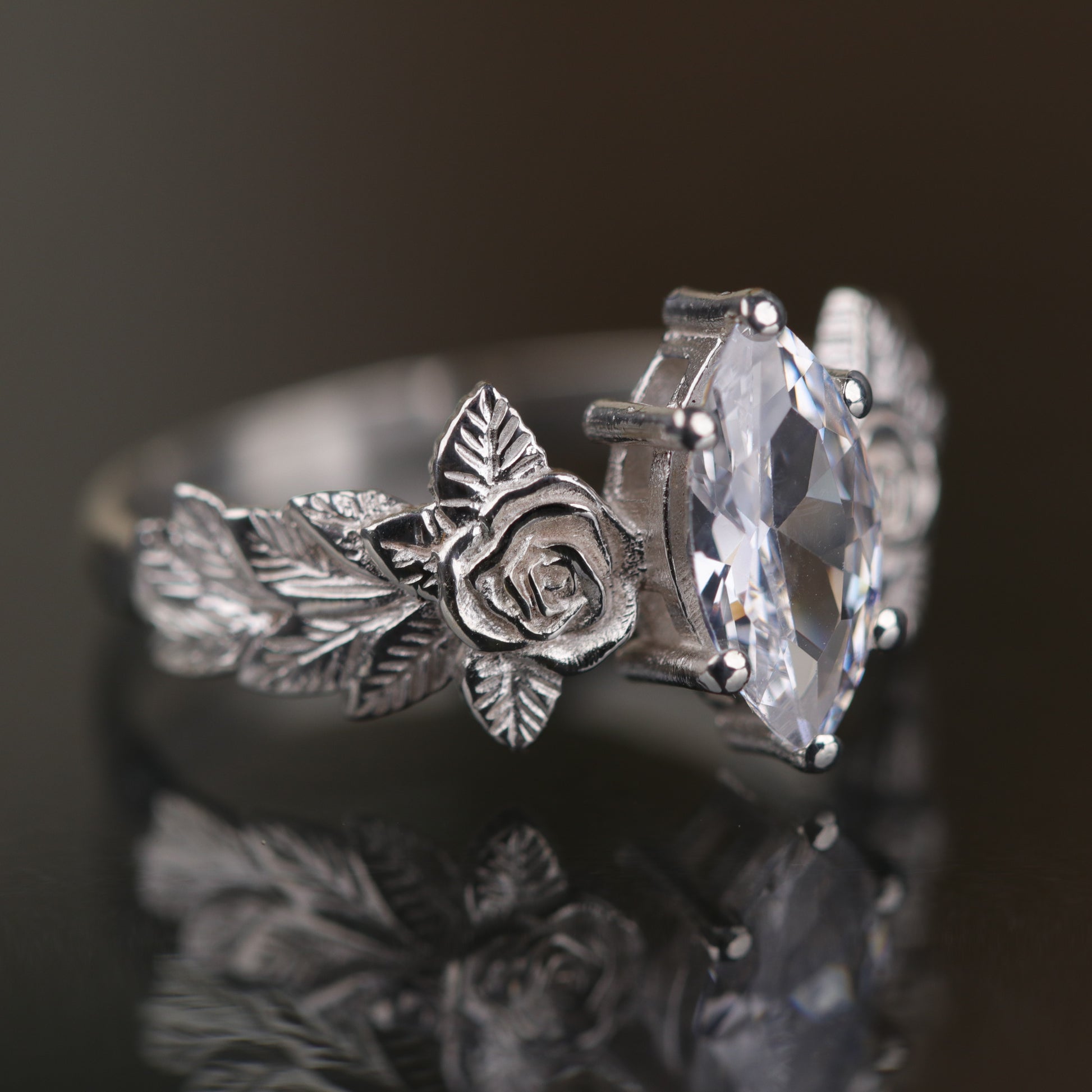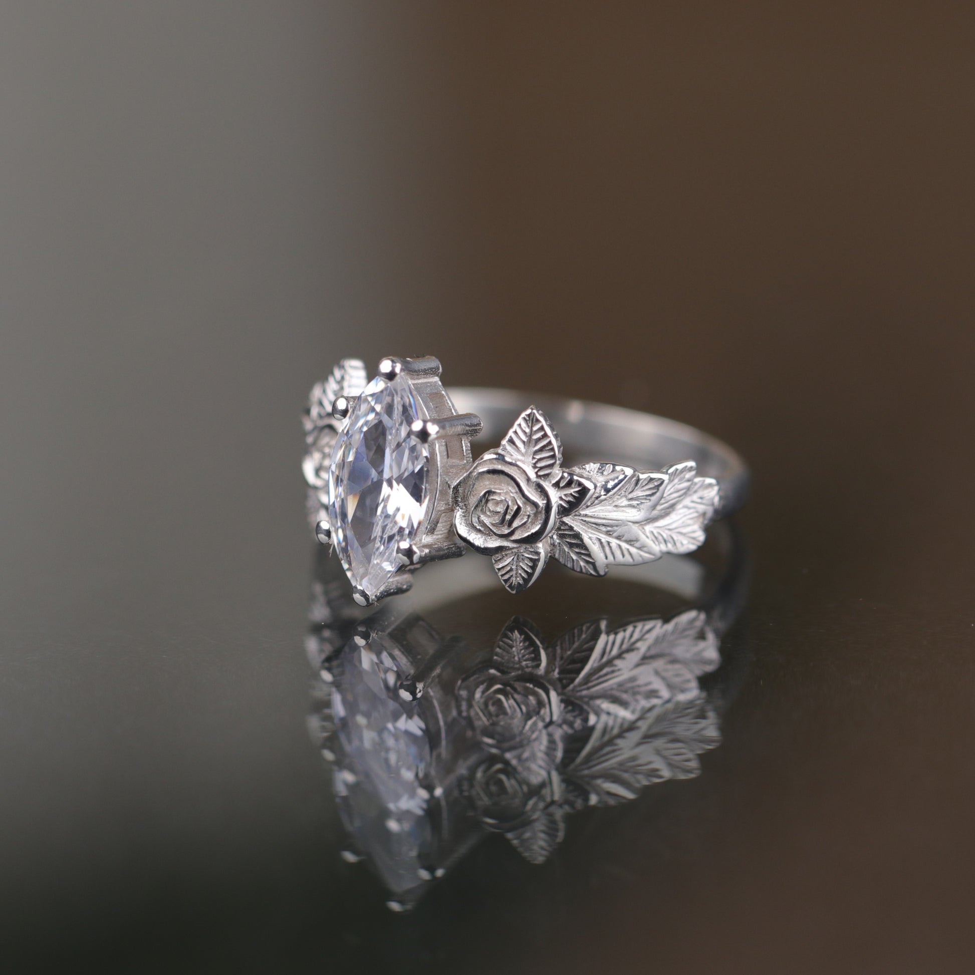 Yapraklar (Tüm Doğal Taşlar) 925 Oksitlenmiş Gümüş Yüzük