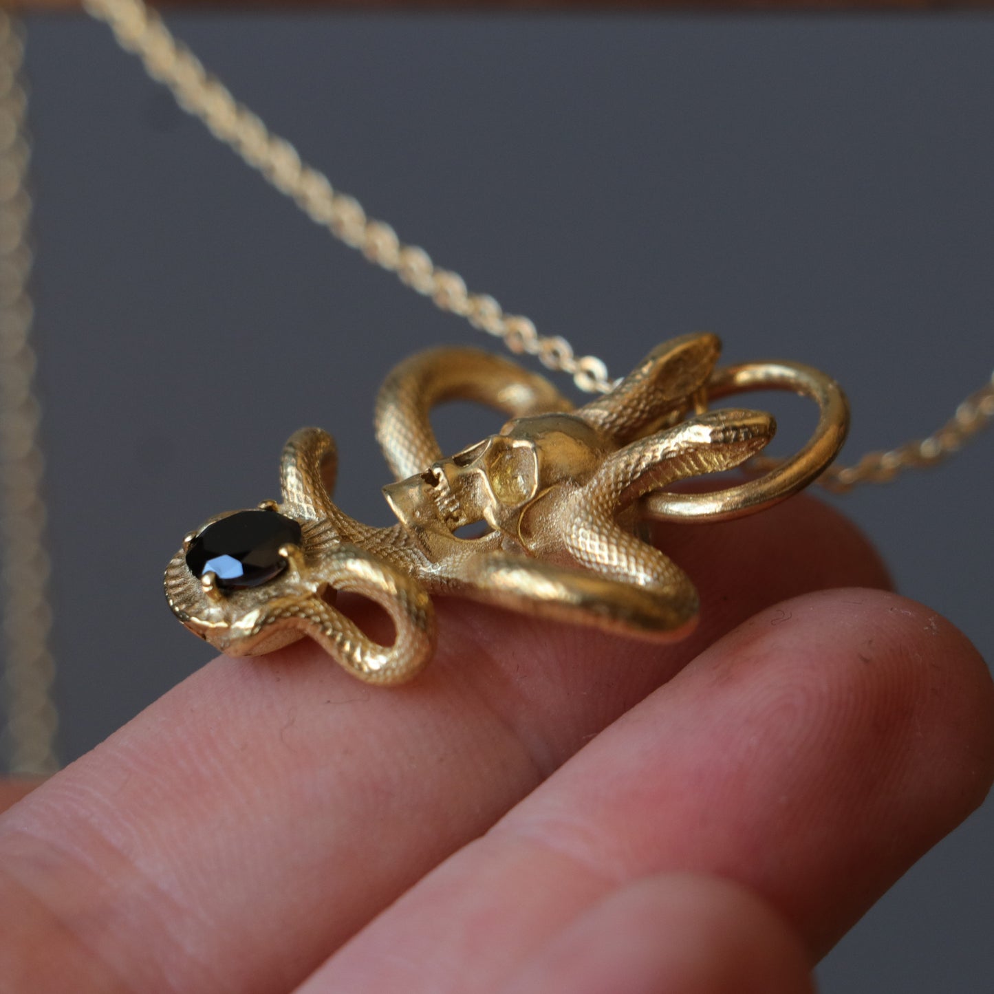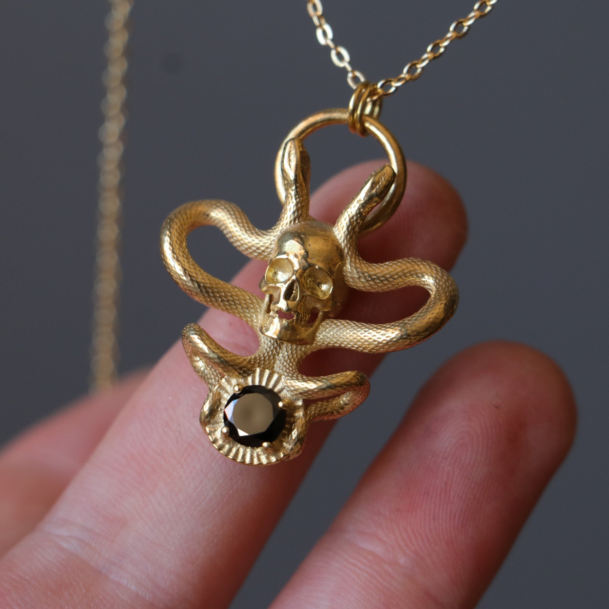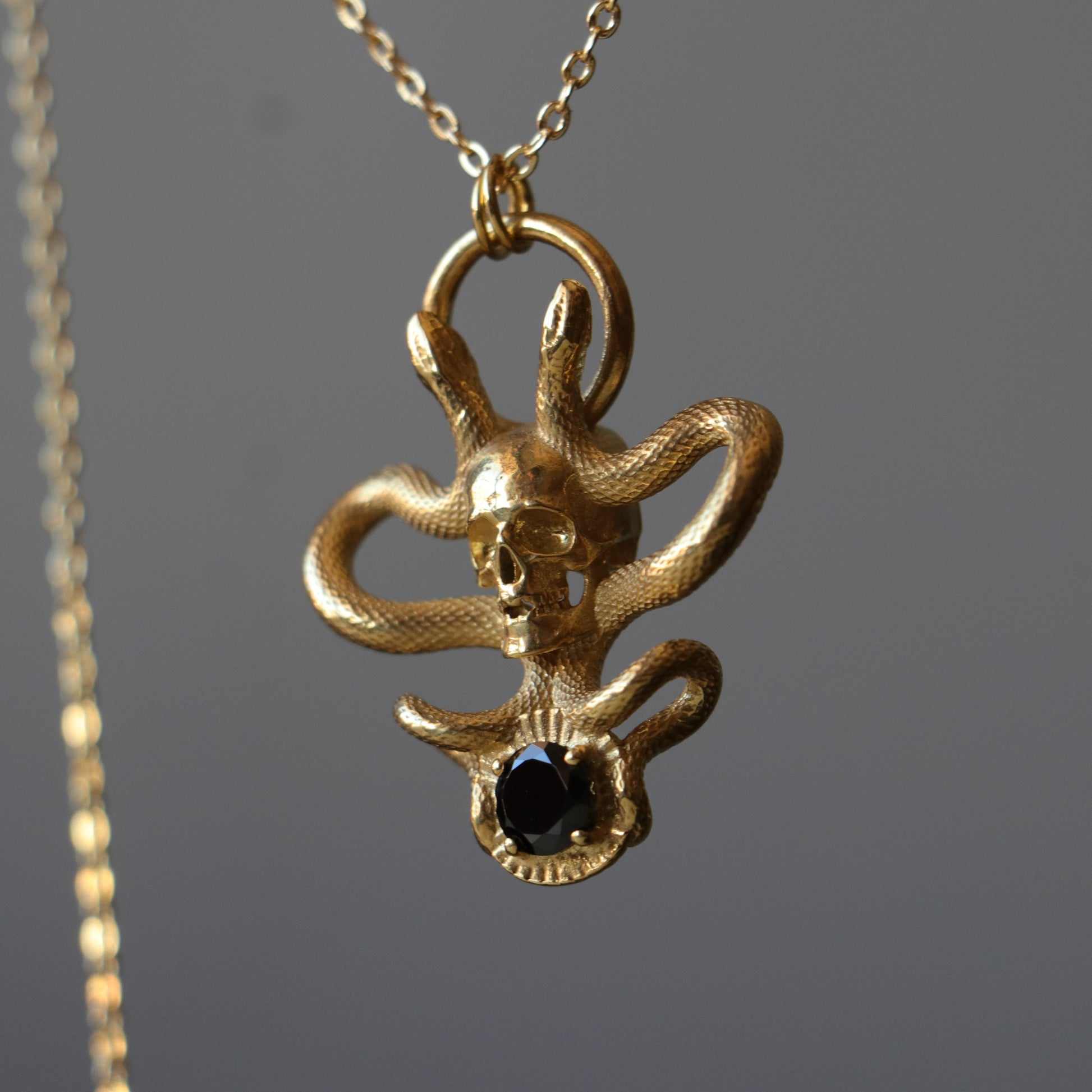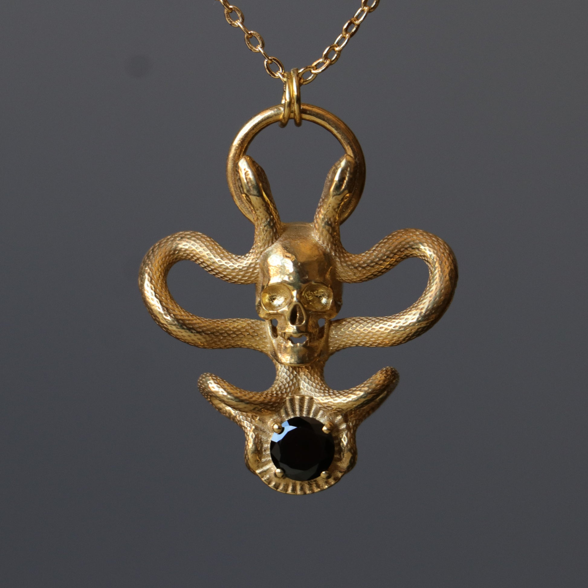 Memento Mori and Snake Oniks 925 Gümüş Kolye