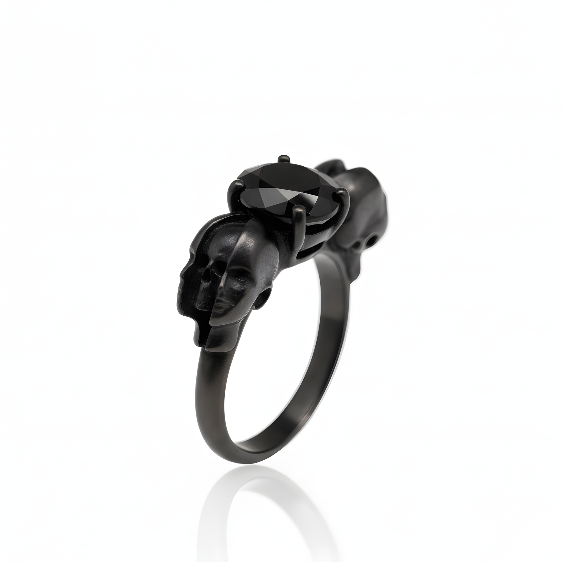 Memento Mori Gümüş Oniks Yüzük (Tüm Maden ve Taş Seçenekleri)