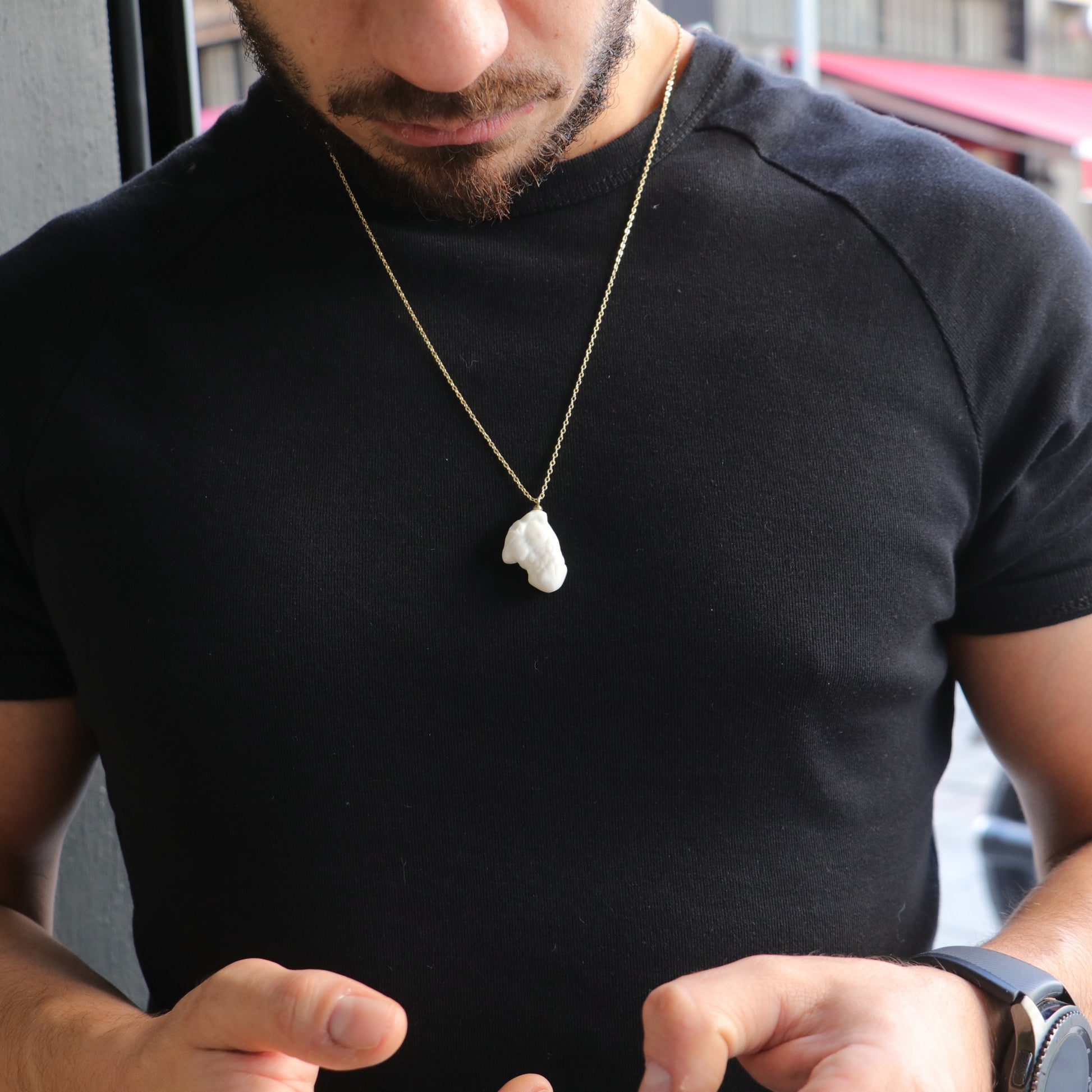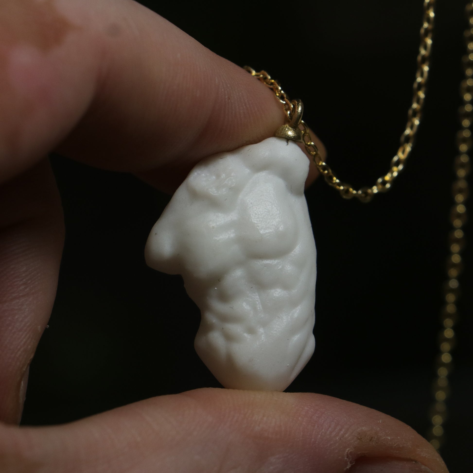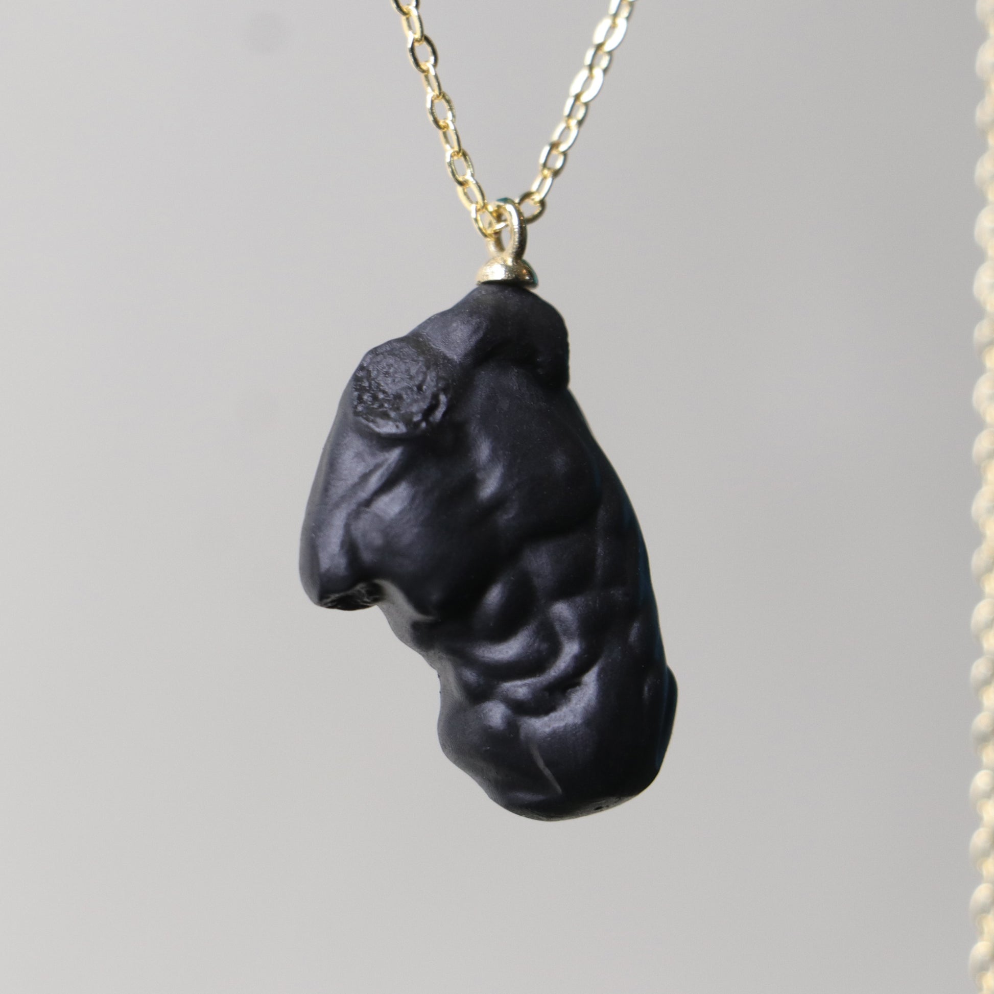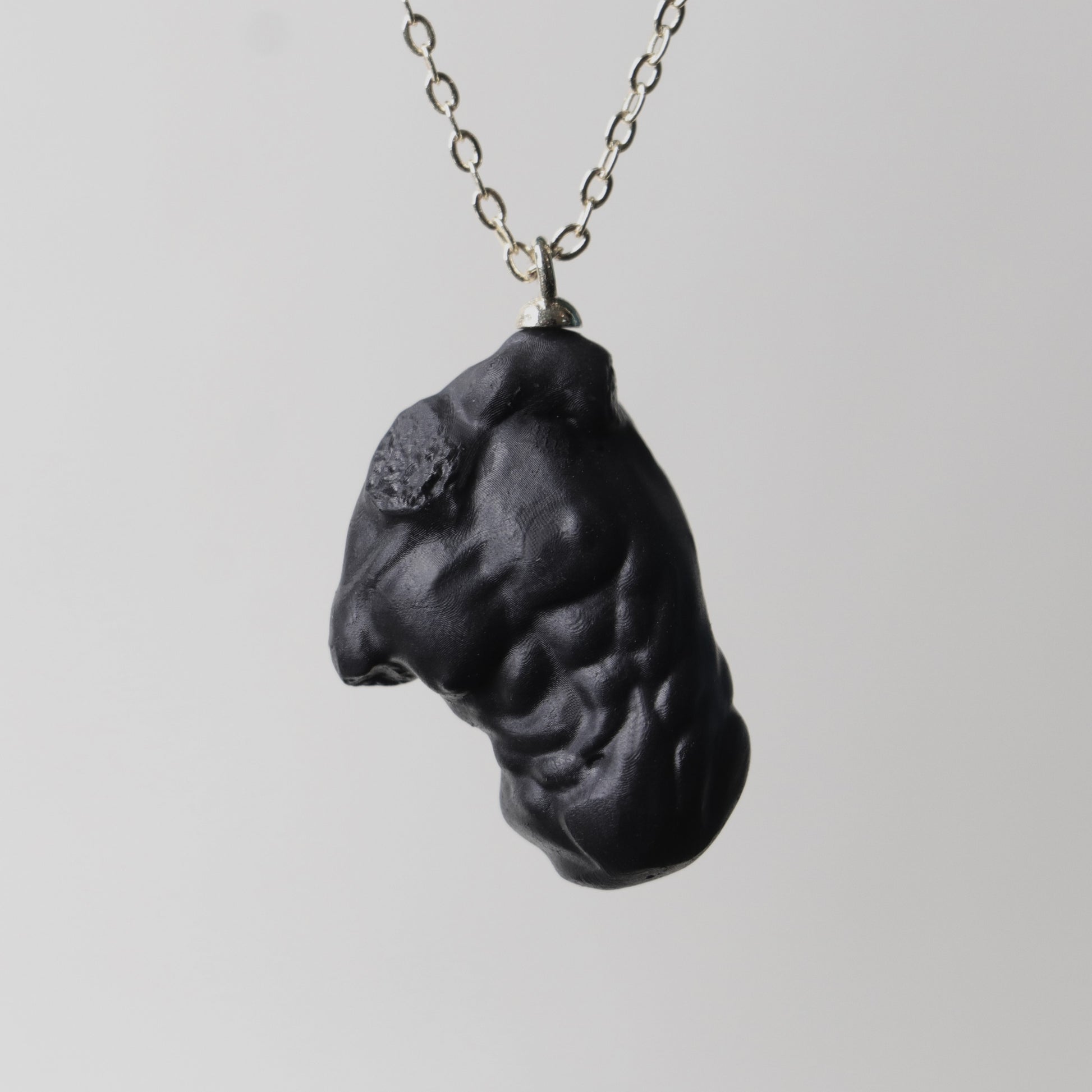 Mat Mermer Erkek Tors 925 Gümüş Kolye