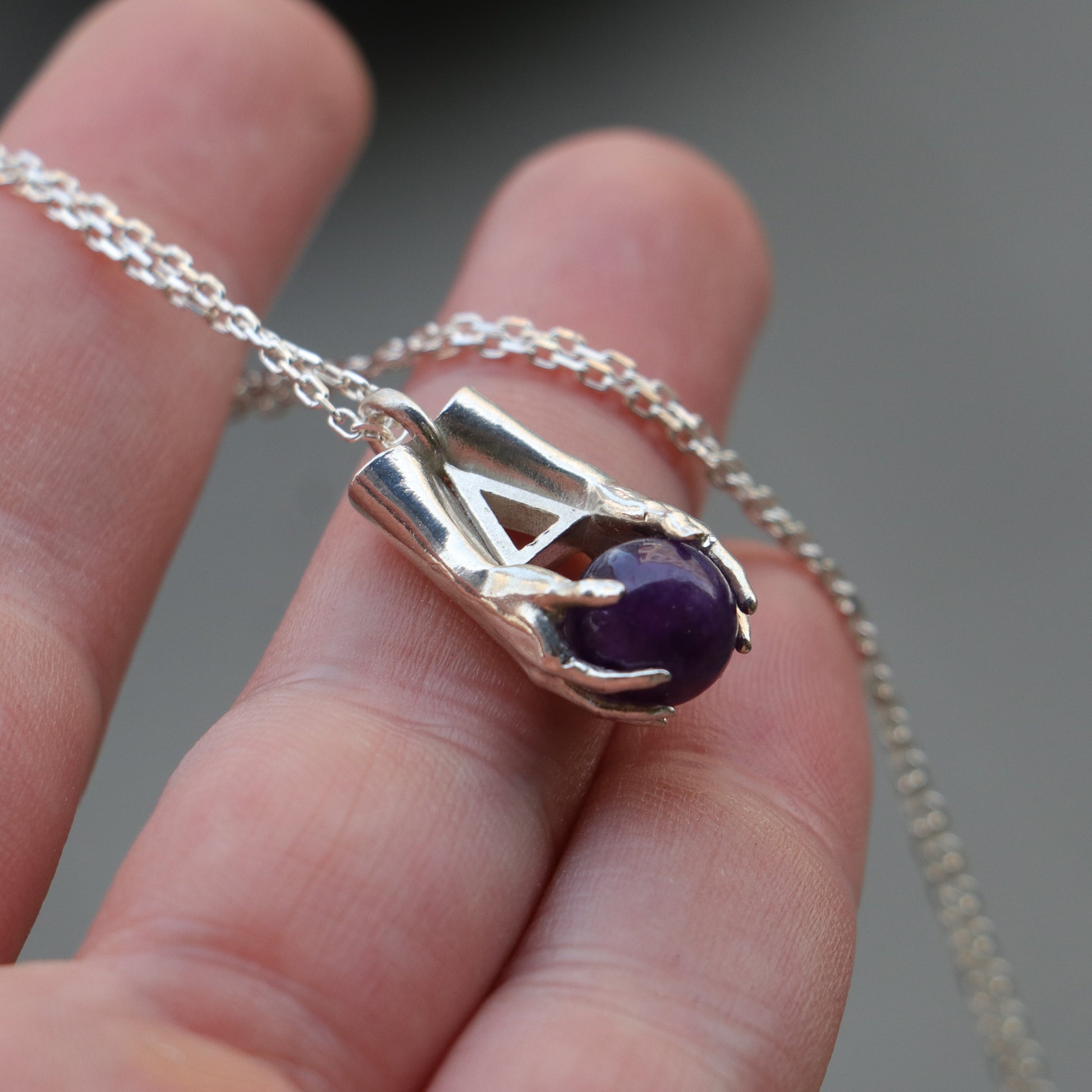 Mini Avuç Ametist 925 Gümüş Kolye