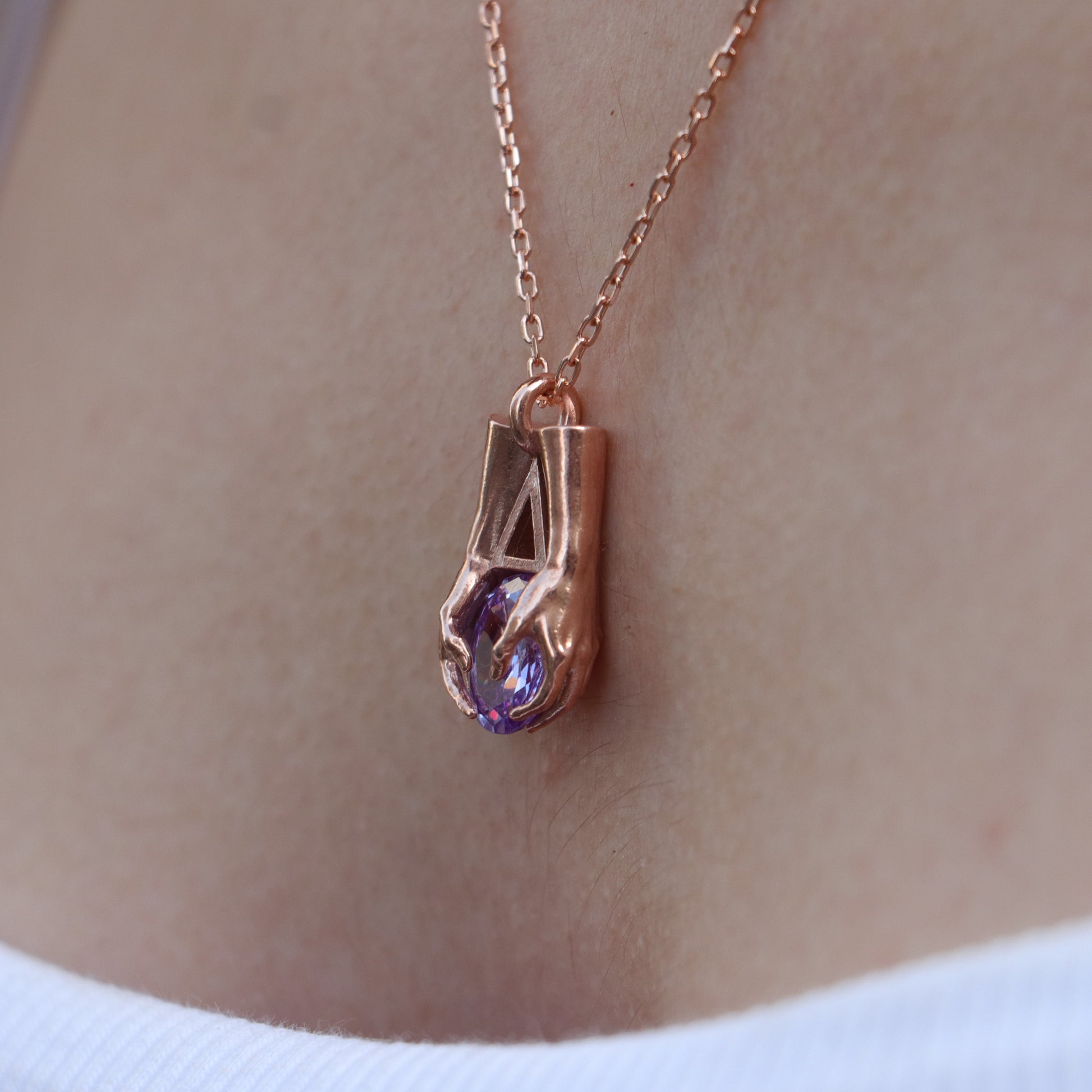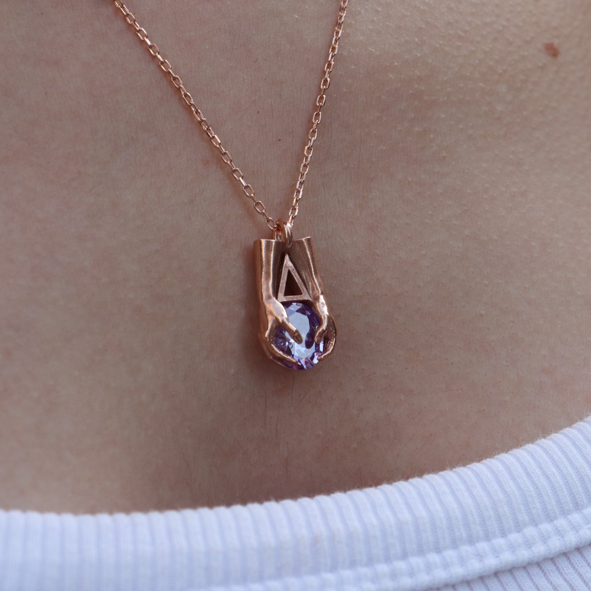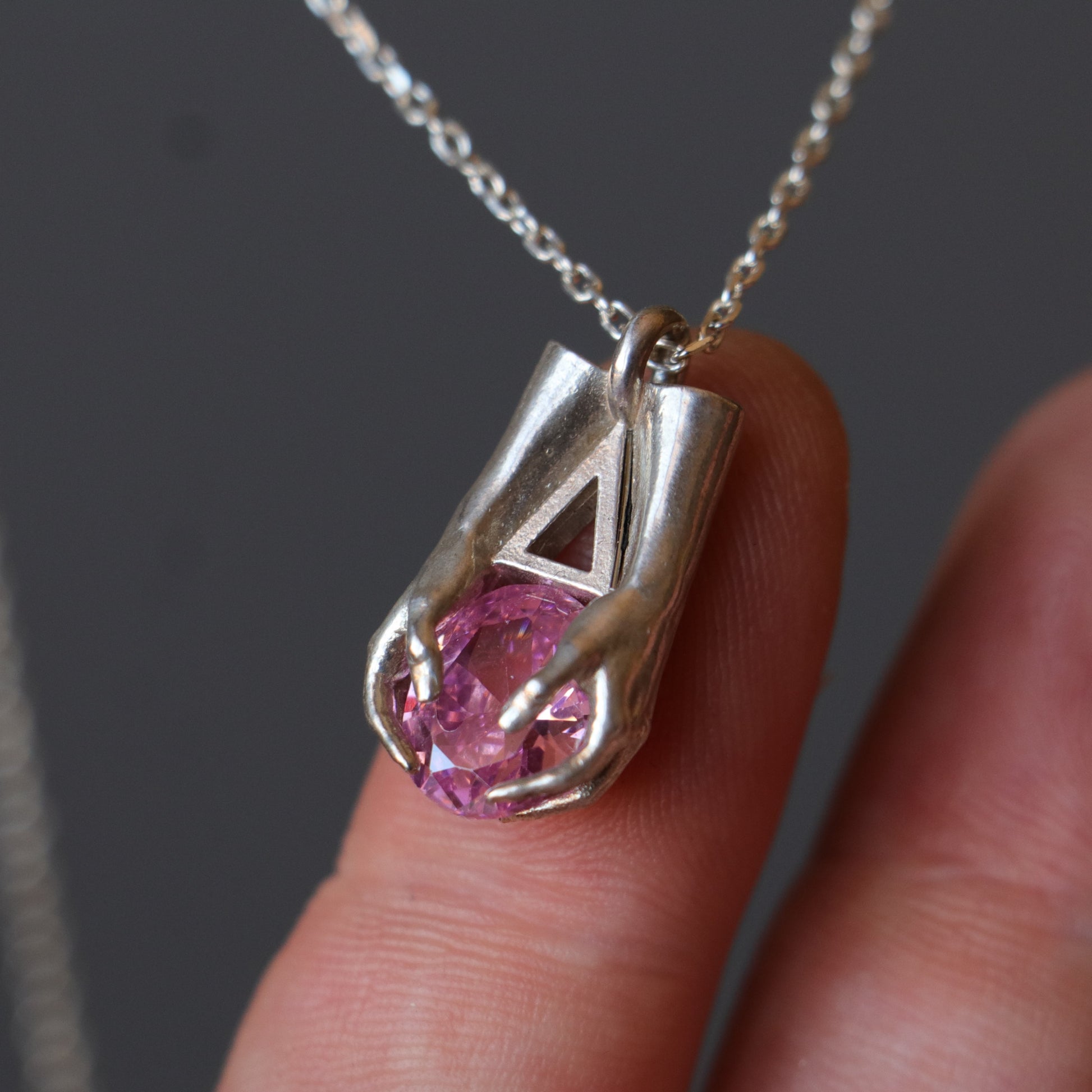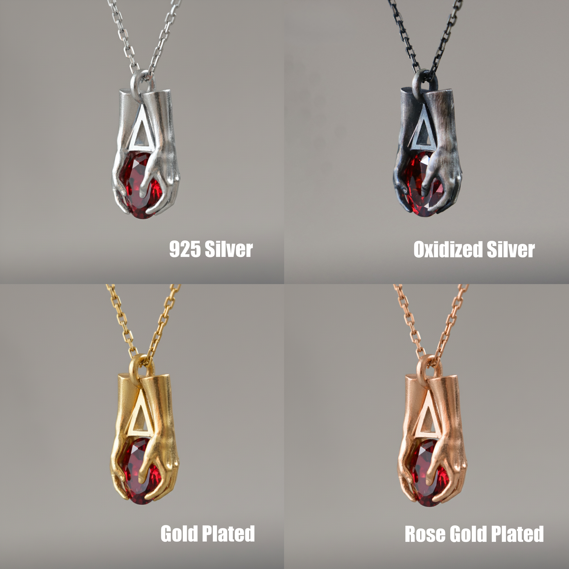 Mini Avuç Üçgen Oval Taşlı Kolye (Tüm Taşlar) 925 Gümüş