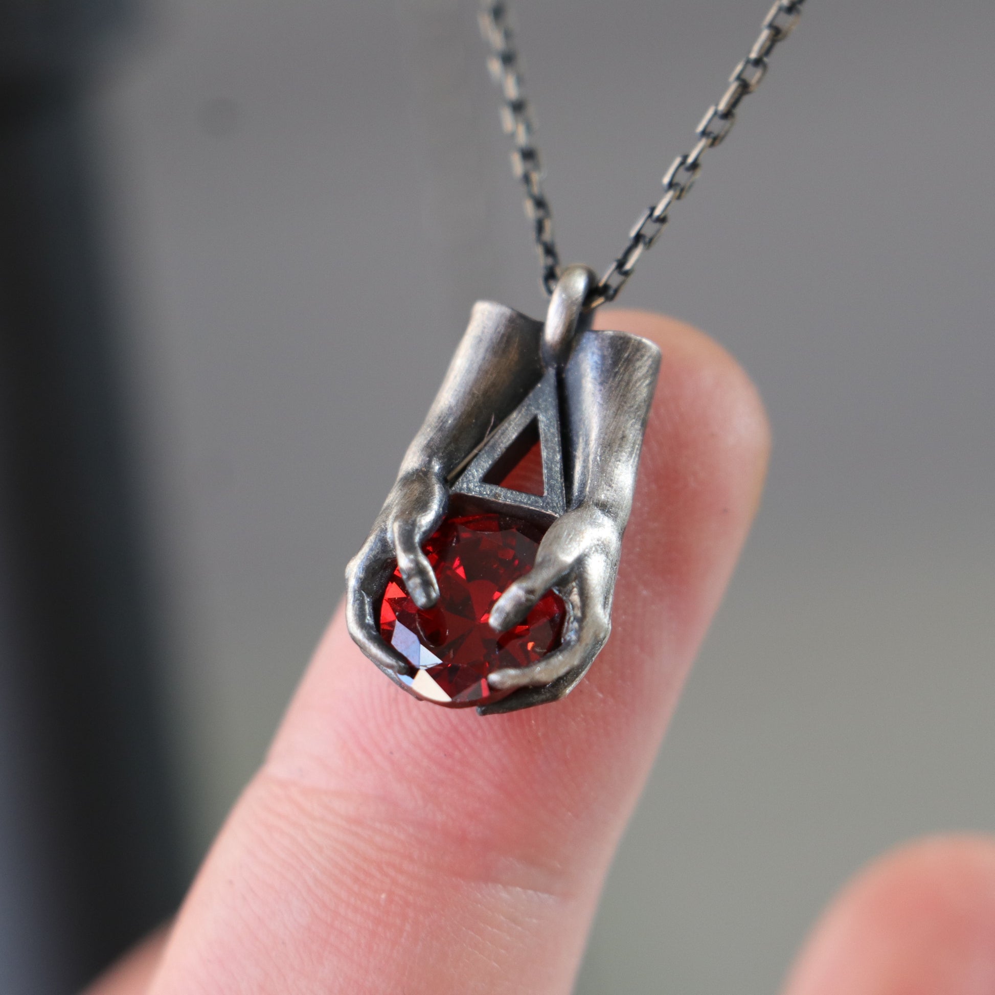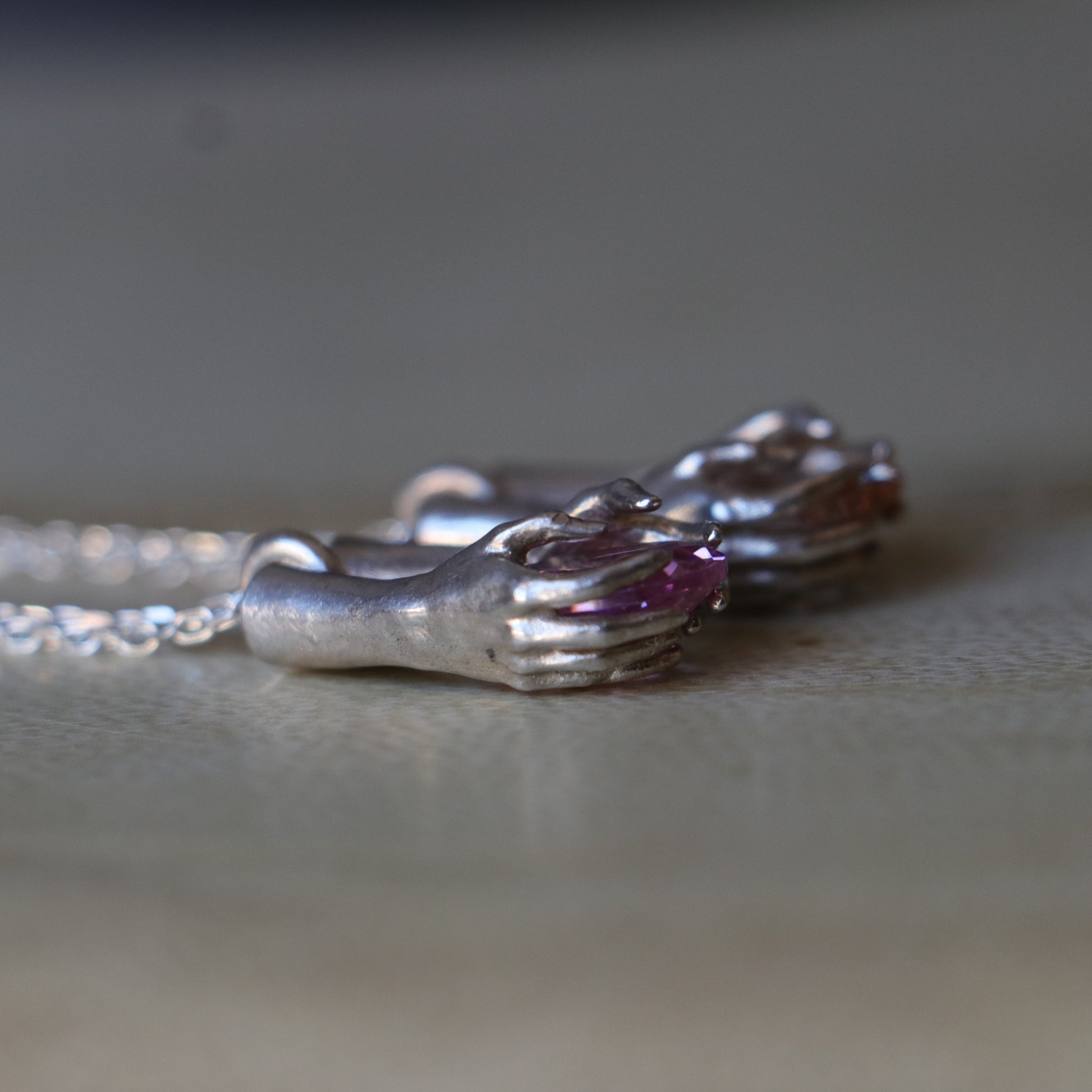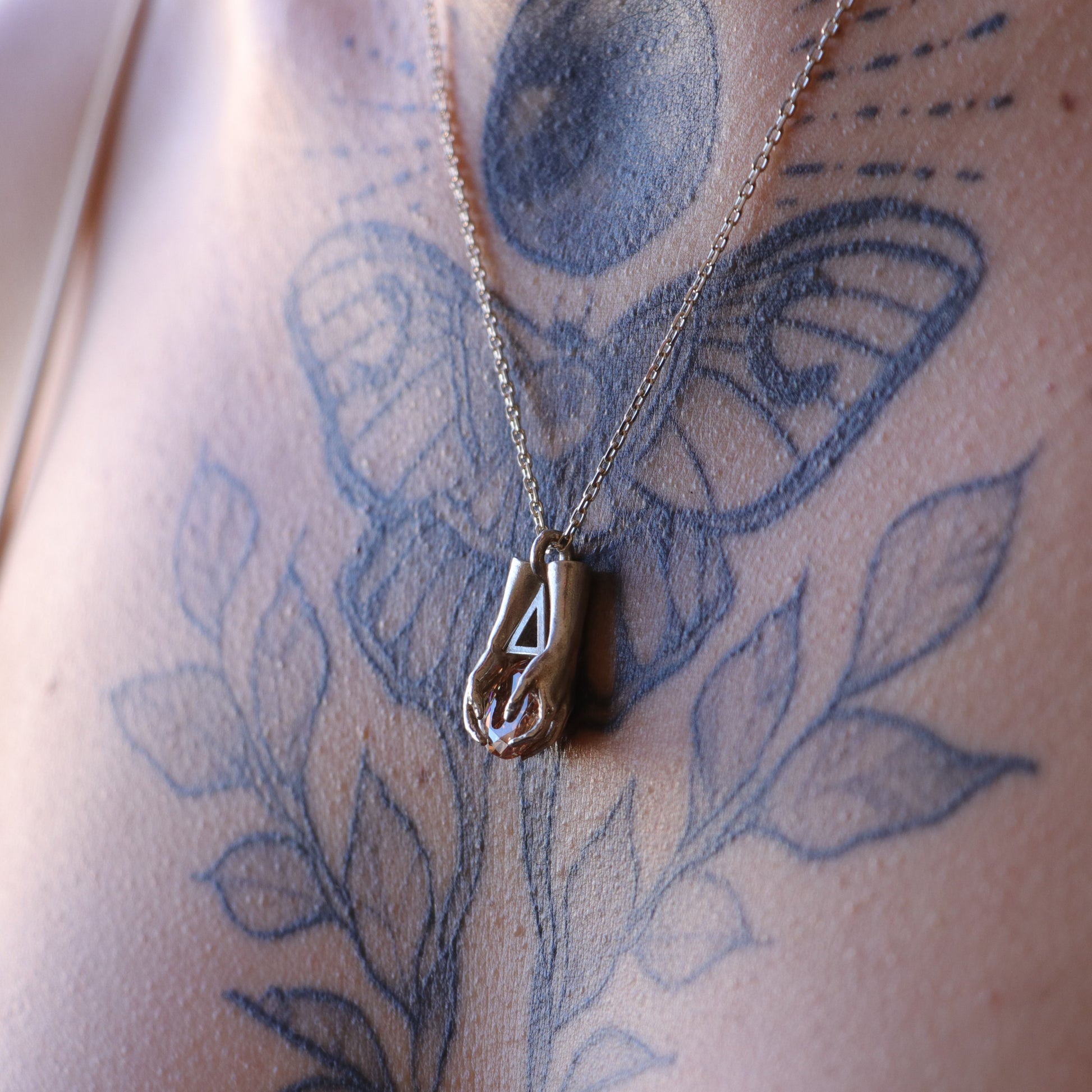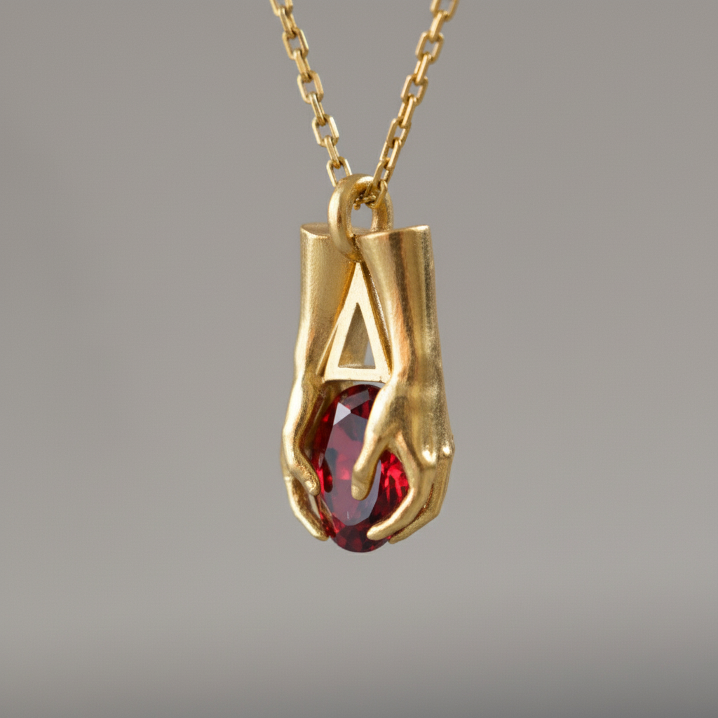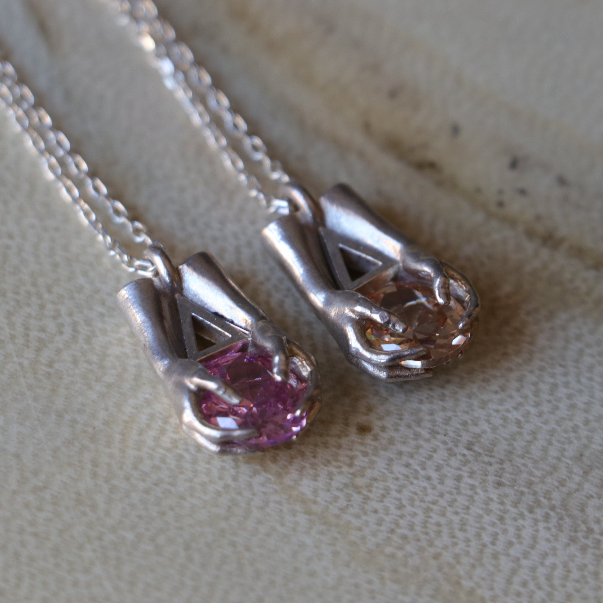 Mini Avuç Üçgen Oval Taşlı Kolye (Tüm Taşlar) 925 Gümüş