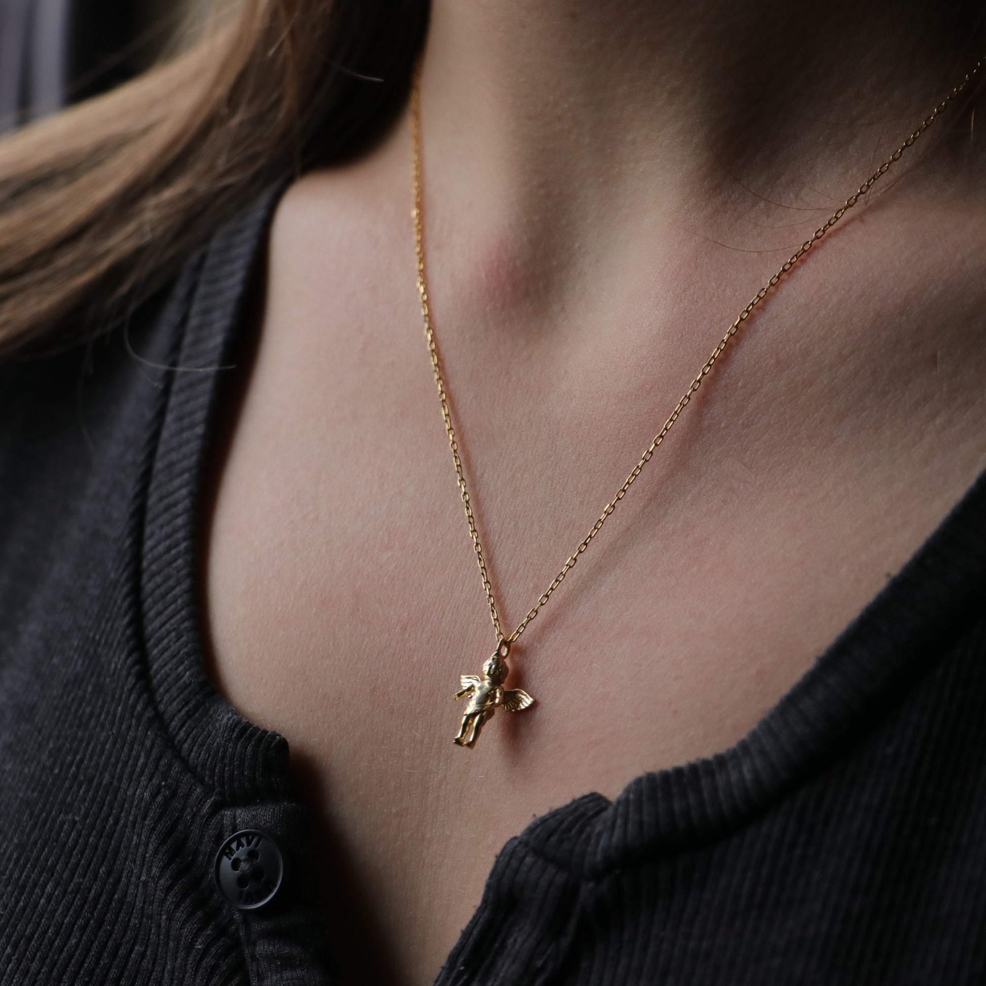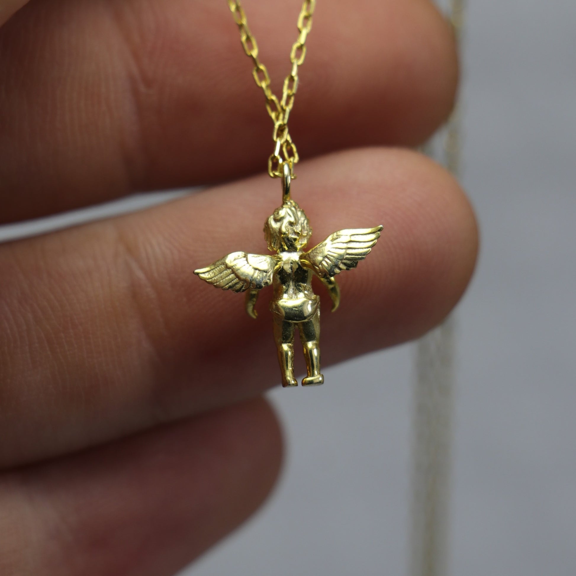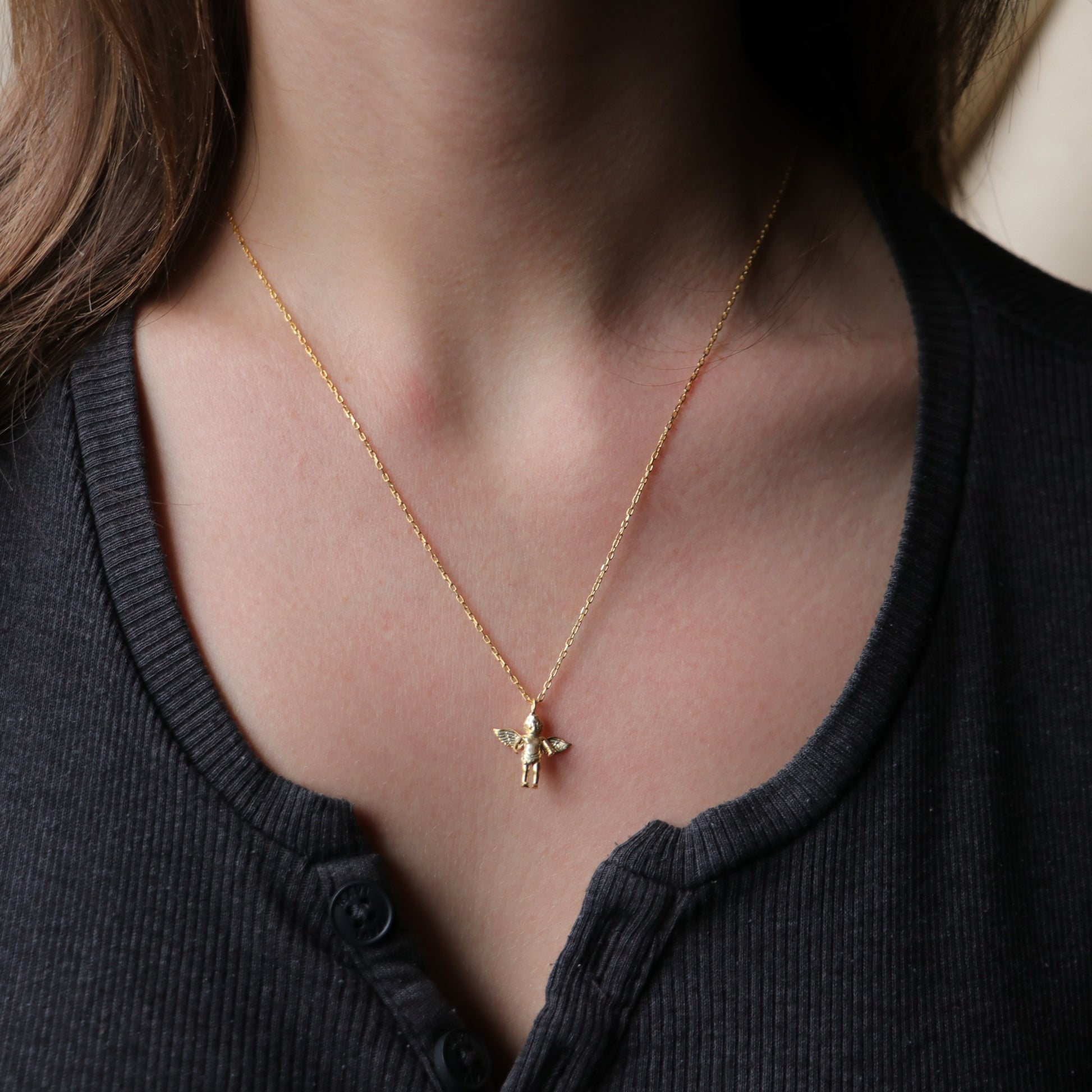 Mini Melek Kanatlı 925 Gümüş Altın Kaplama Kolye