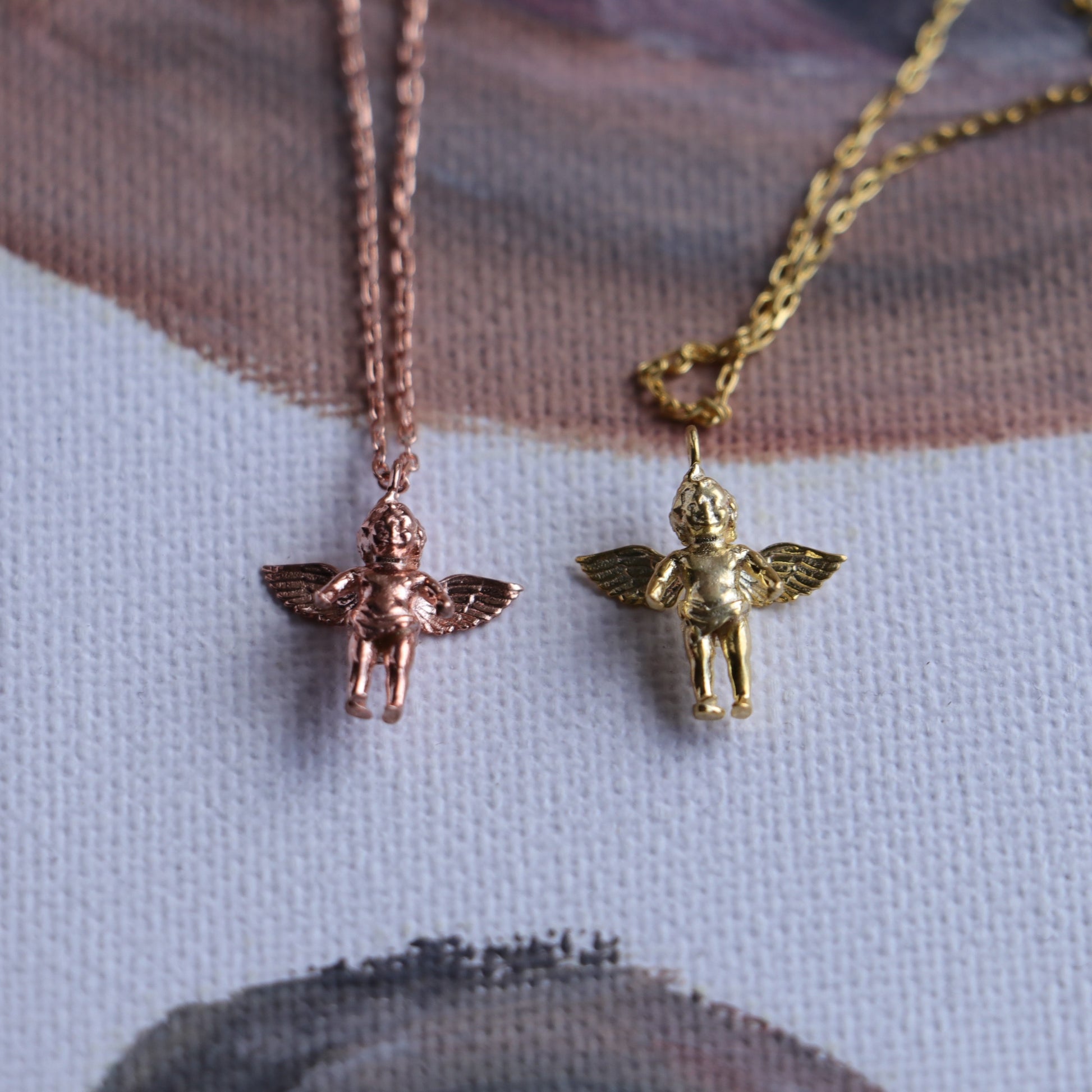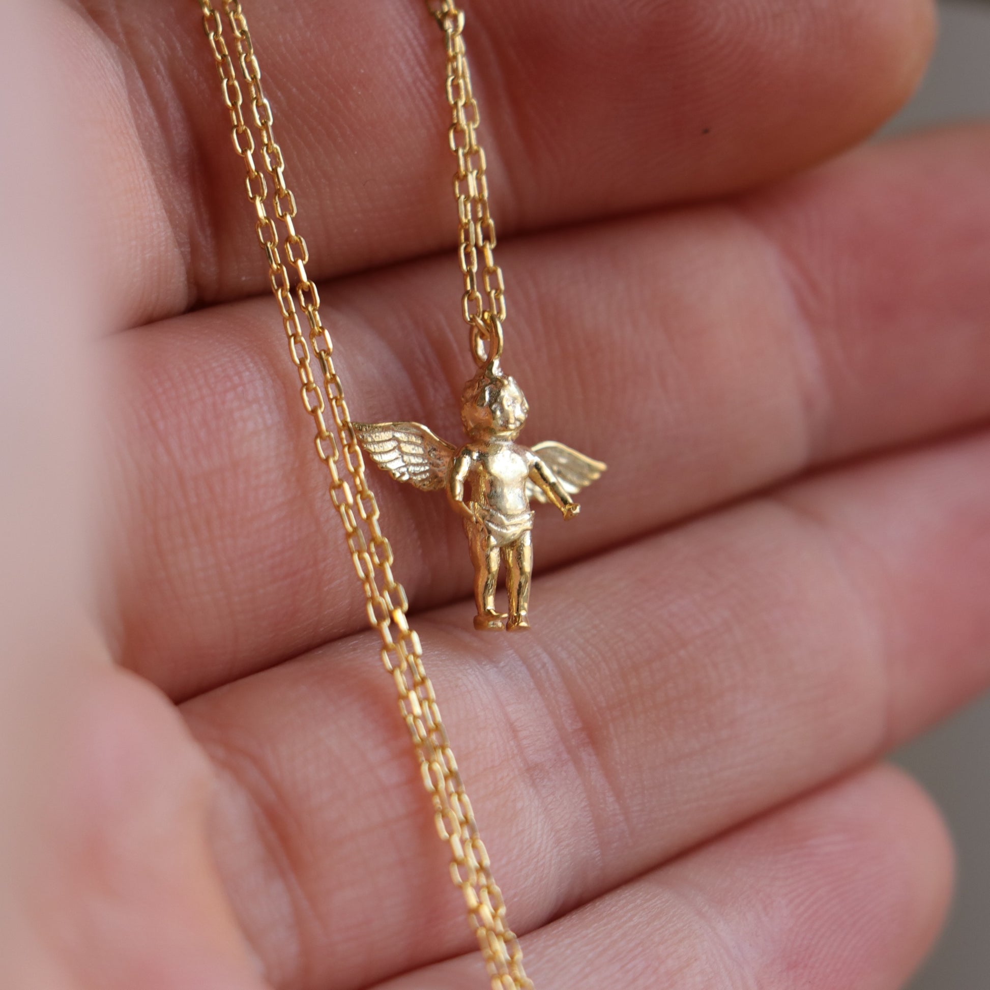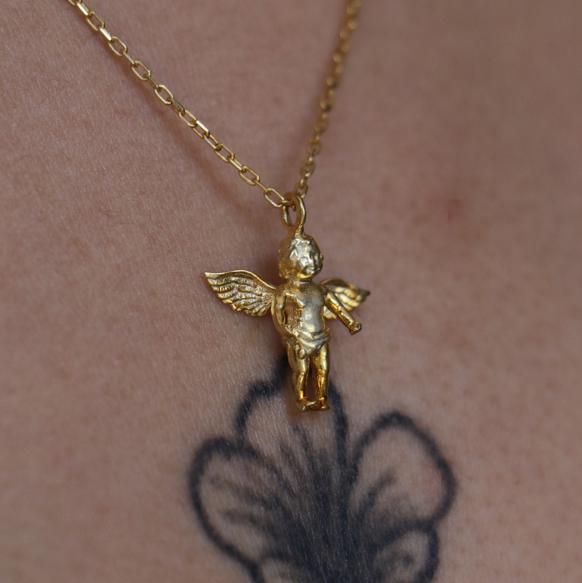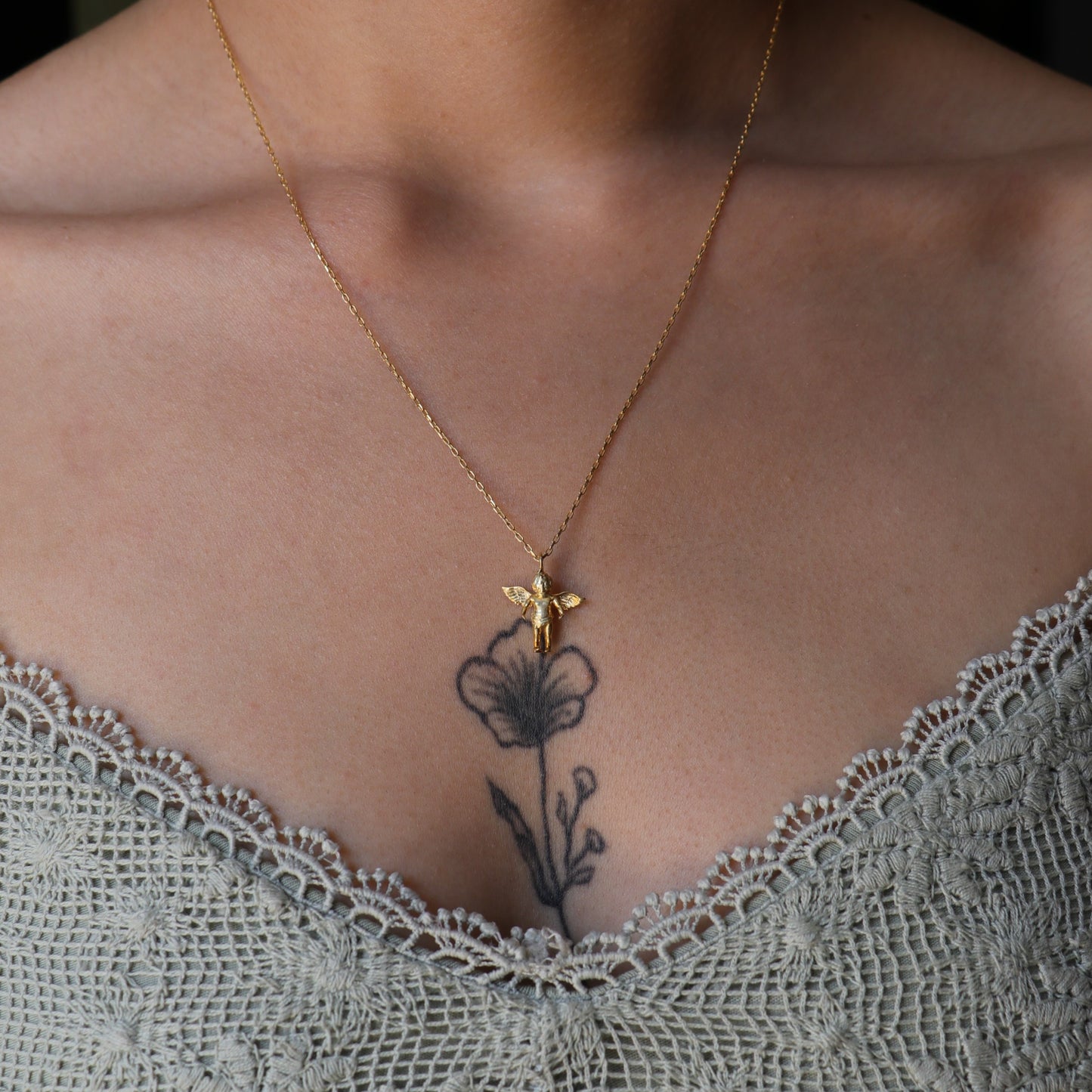 Mini Melek Kanatlı 925 Gümüş Altın Kaplama Kolye