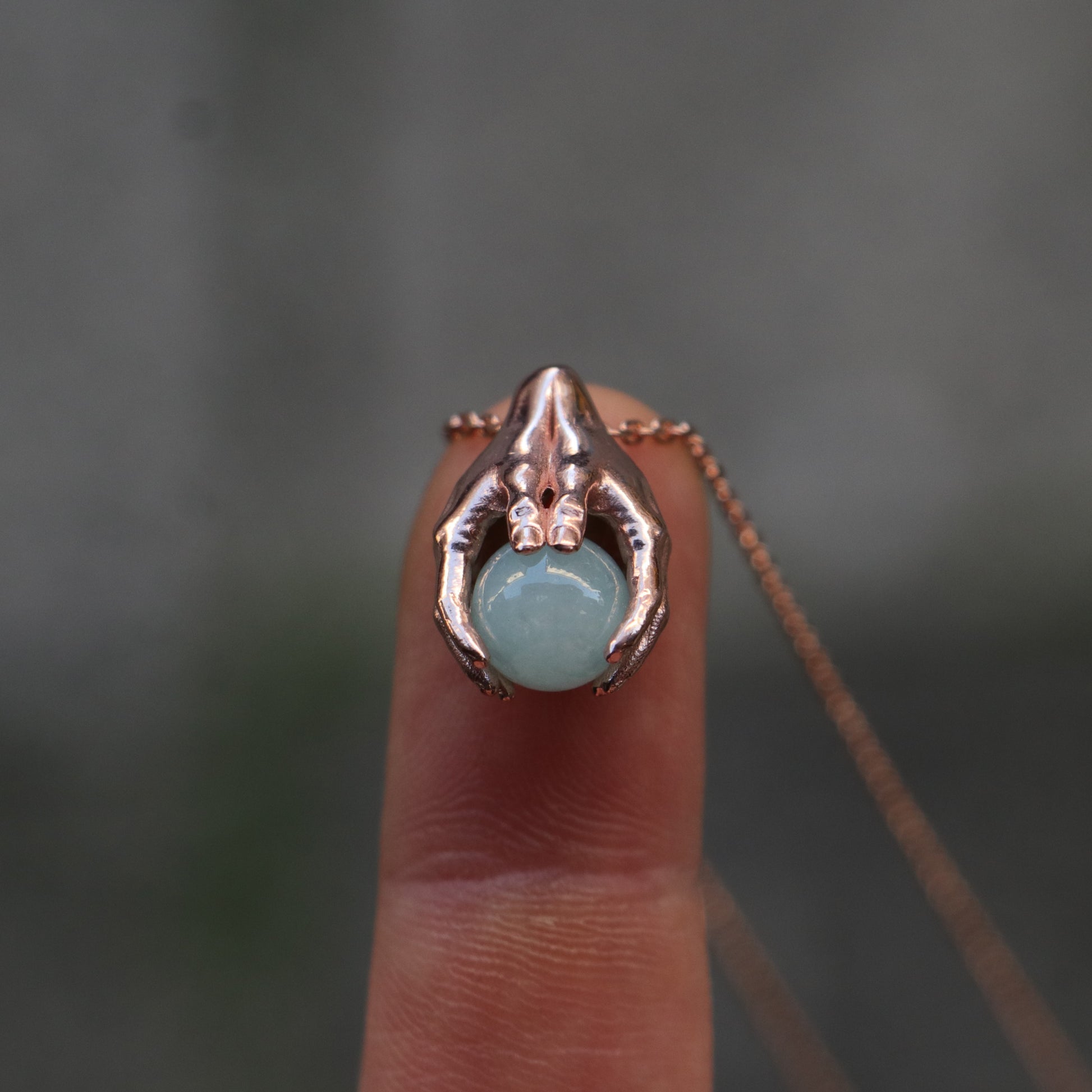 Minimalist Avuç Akuamarin 925 Gümüş Rose Kaplama Kolye