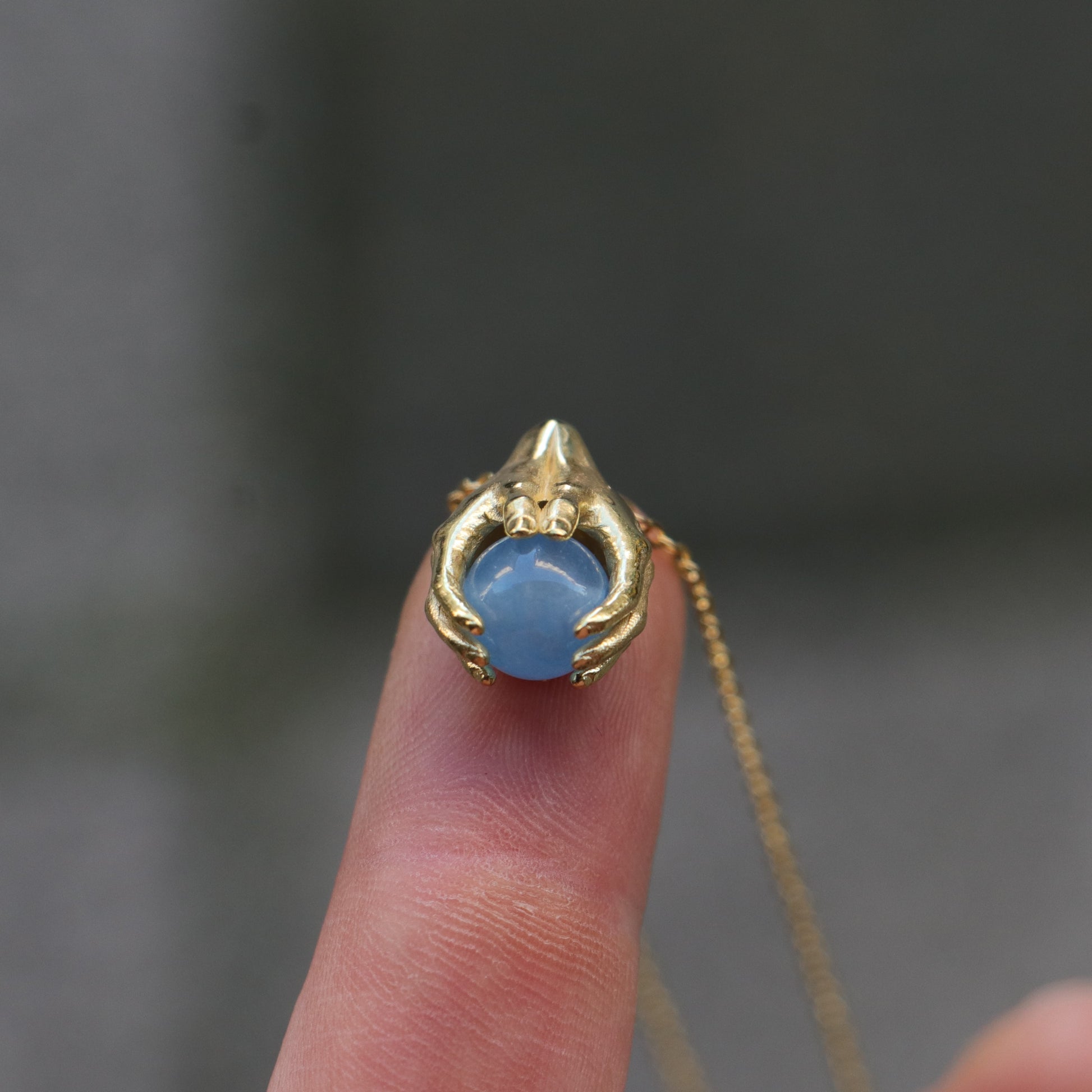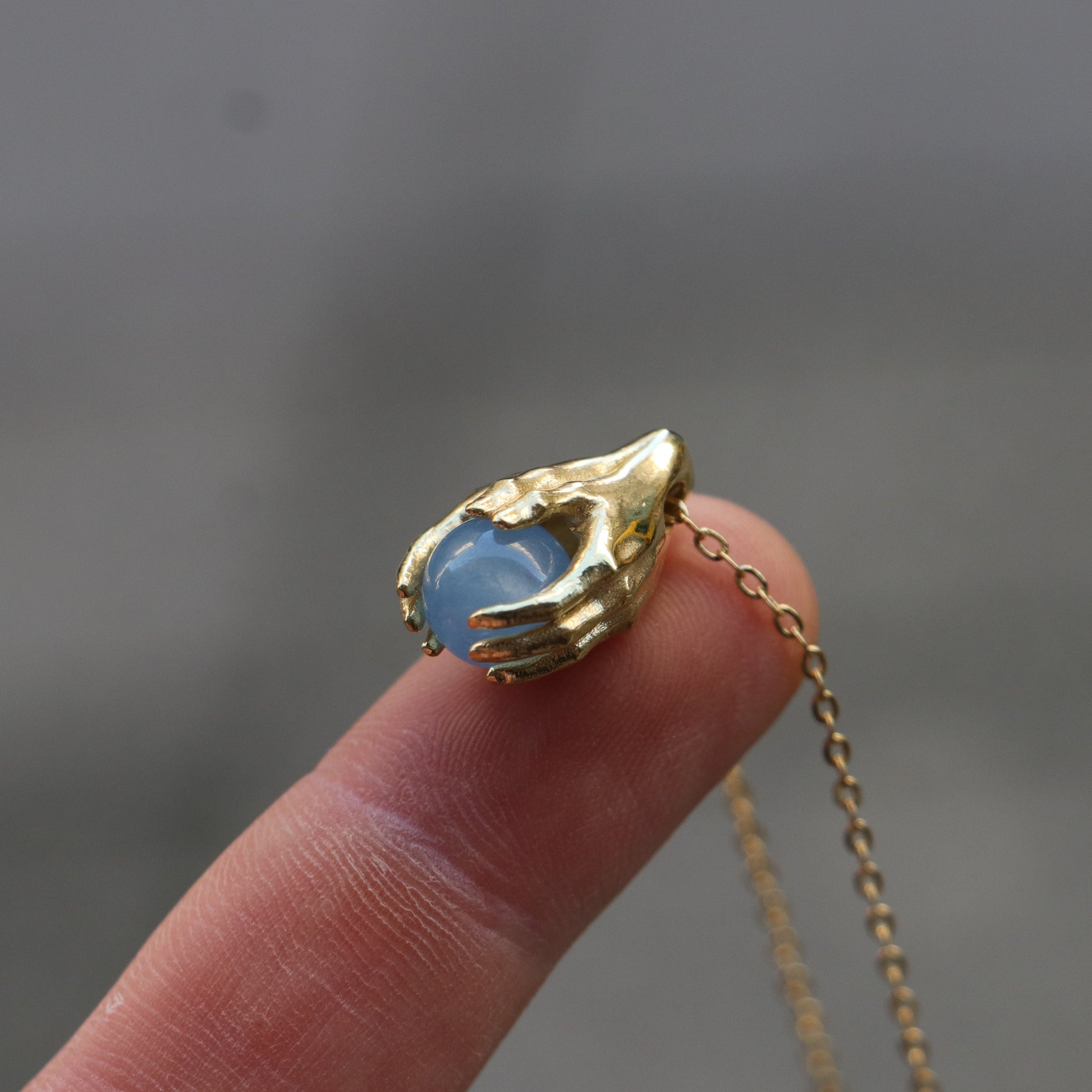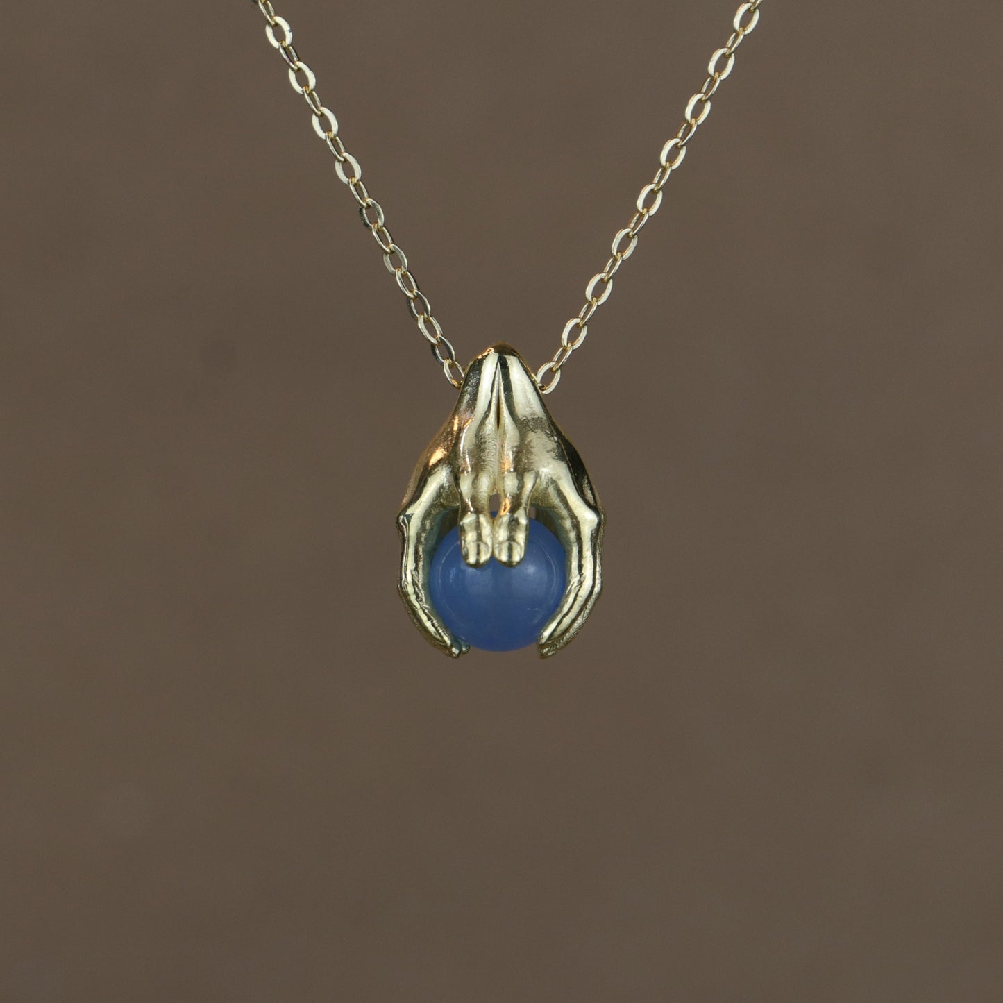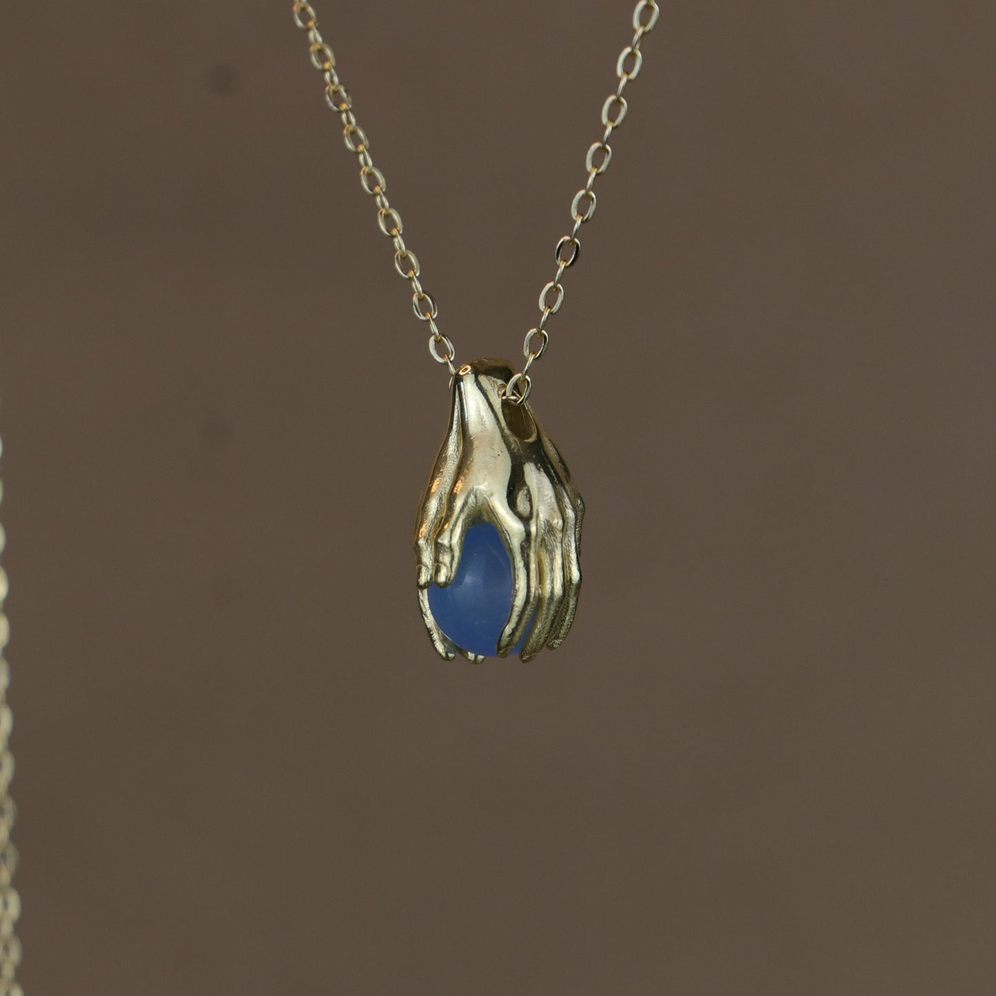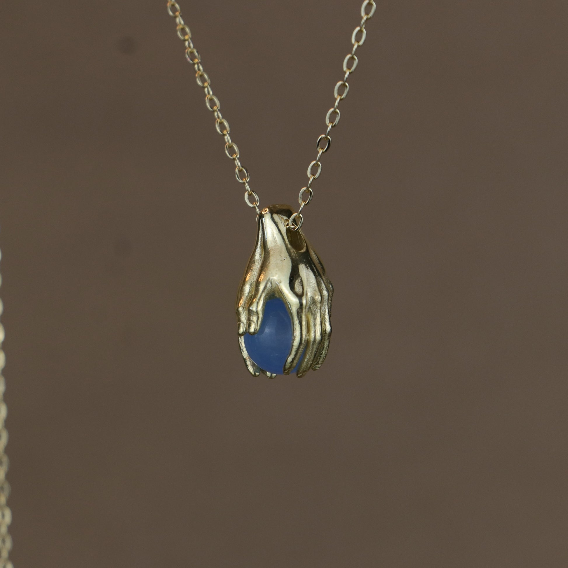 Minimalist Avuç Blue Topaz 925 Gümüş Altın Kaplama Kolye