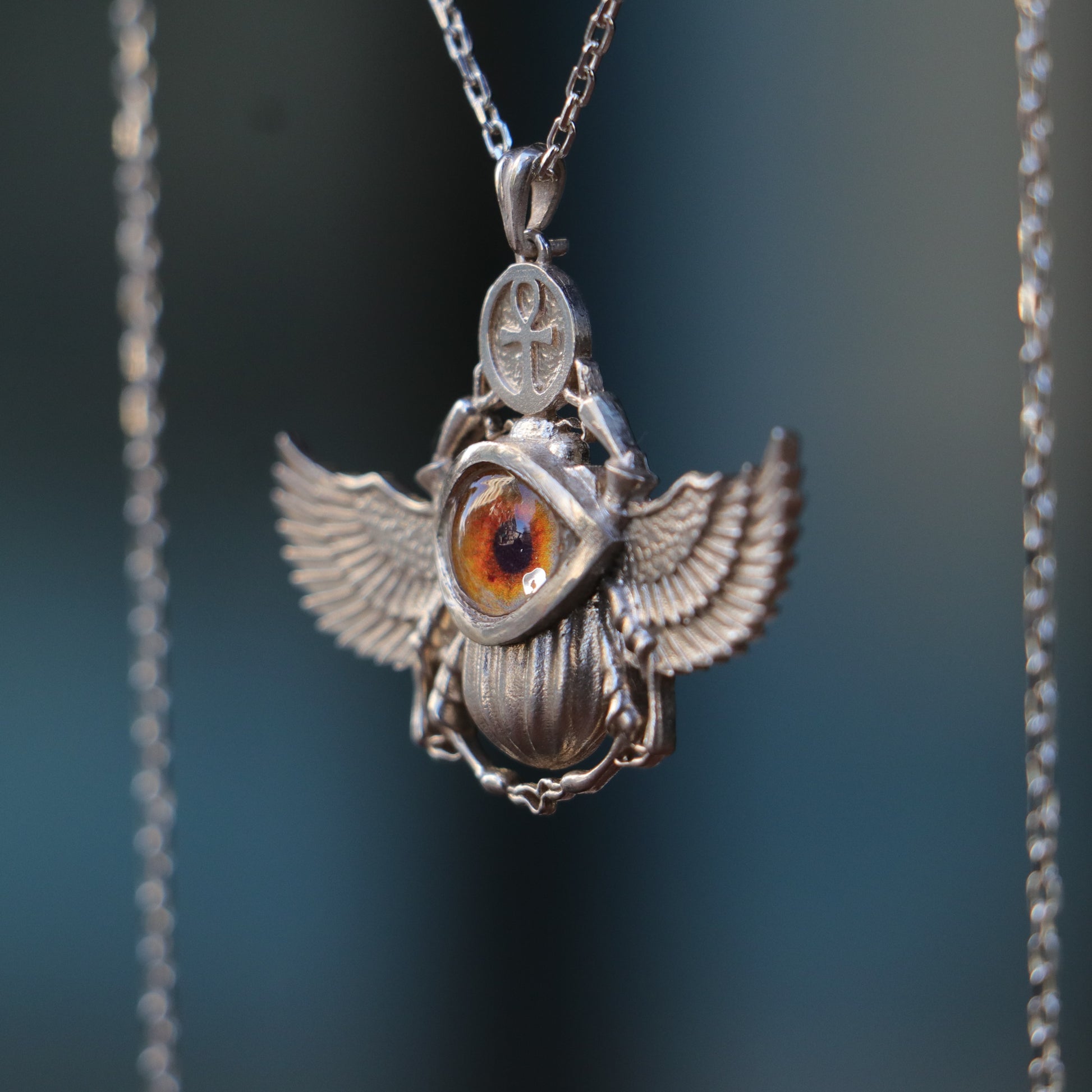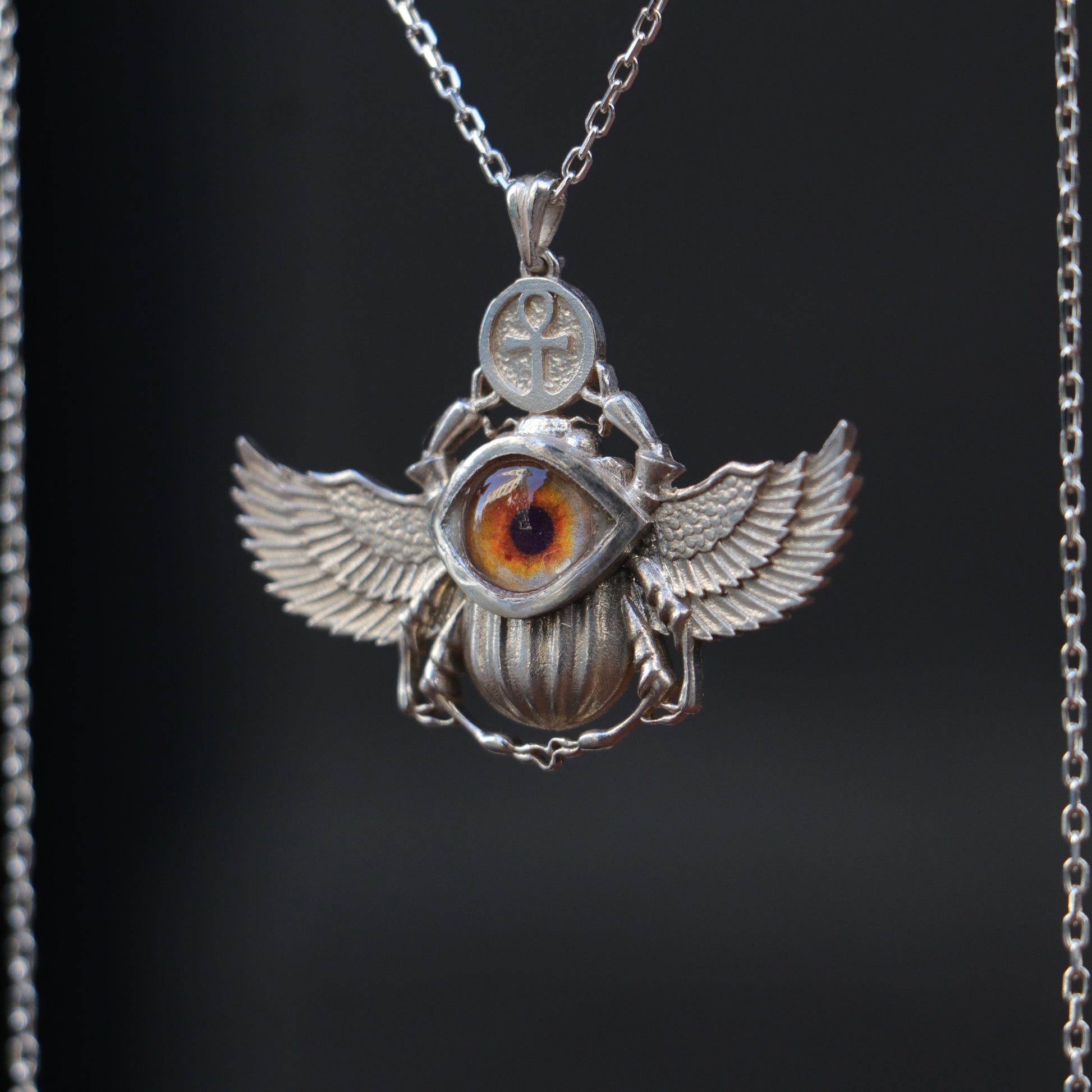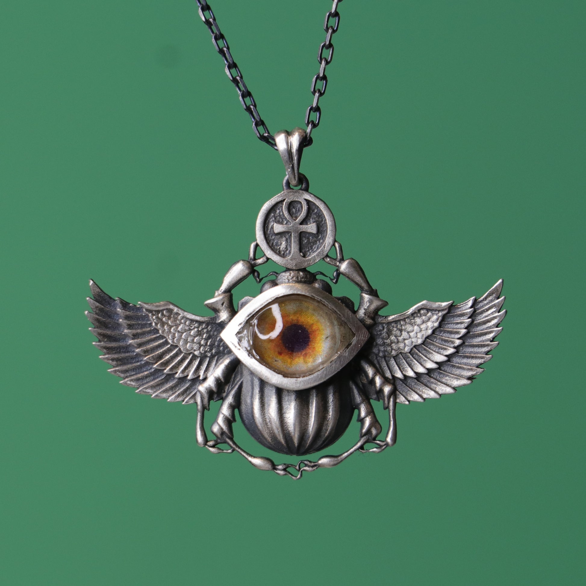 Antik Mısır Scarab ve Ankh Gümüş Kolye - İris Göz Koruyucu Tılsım