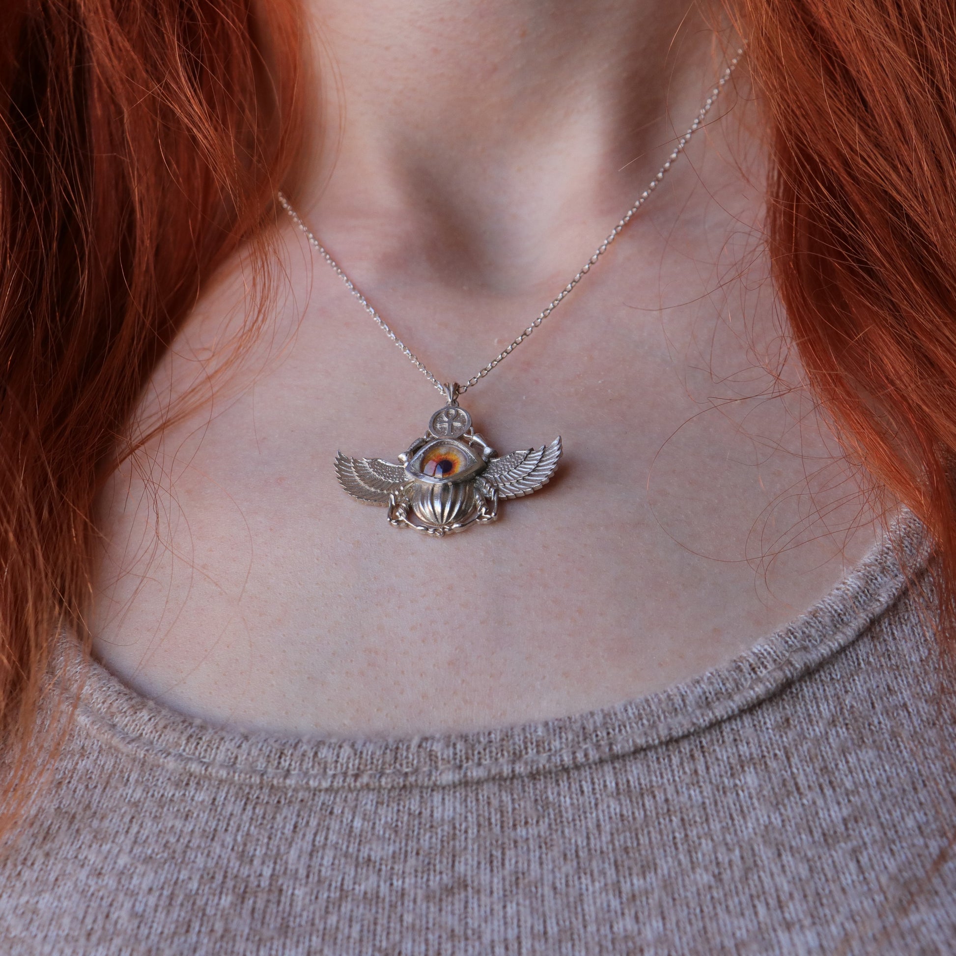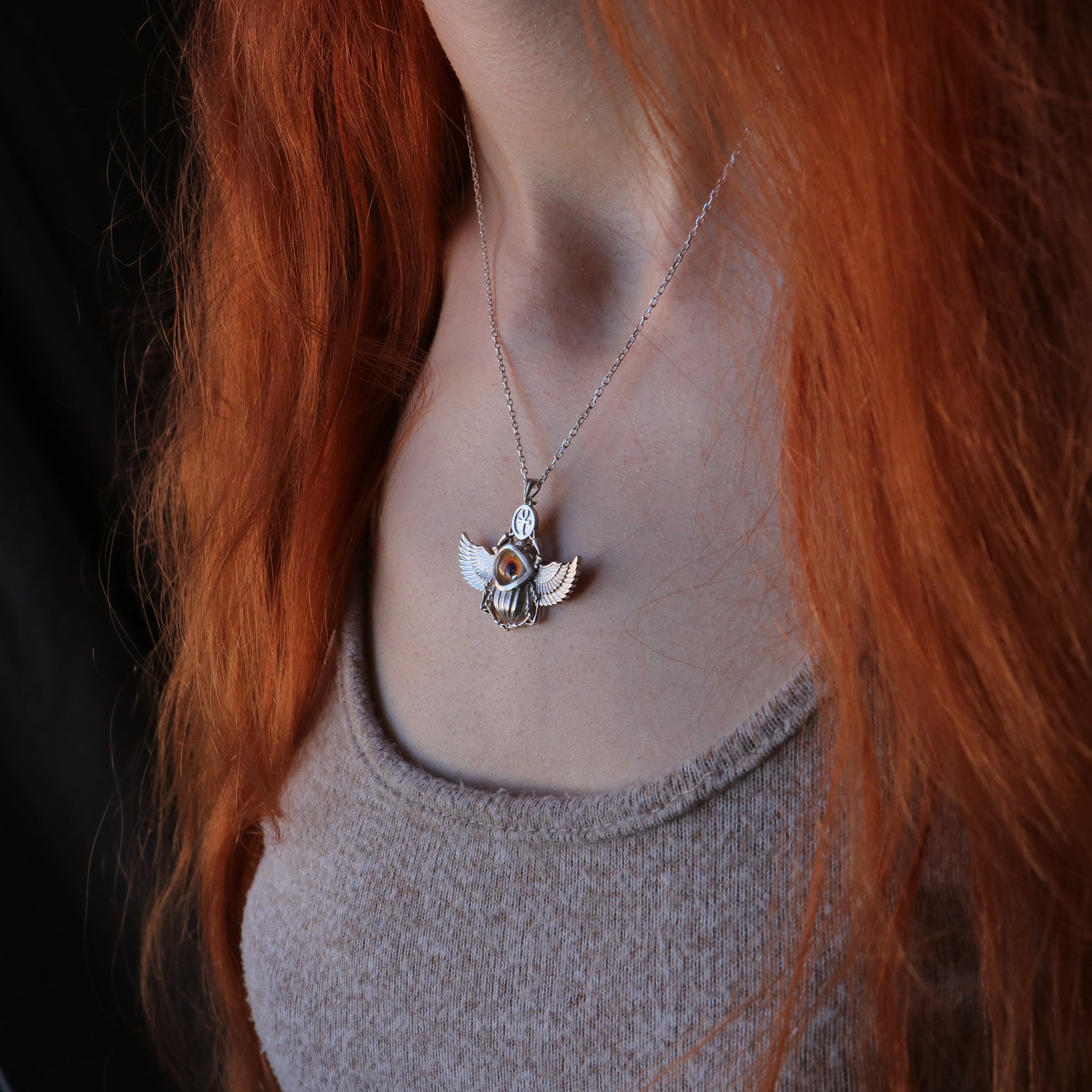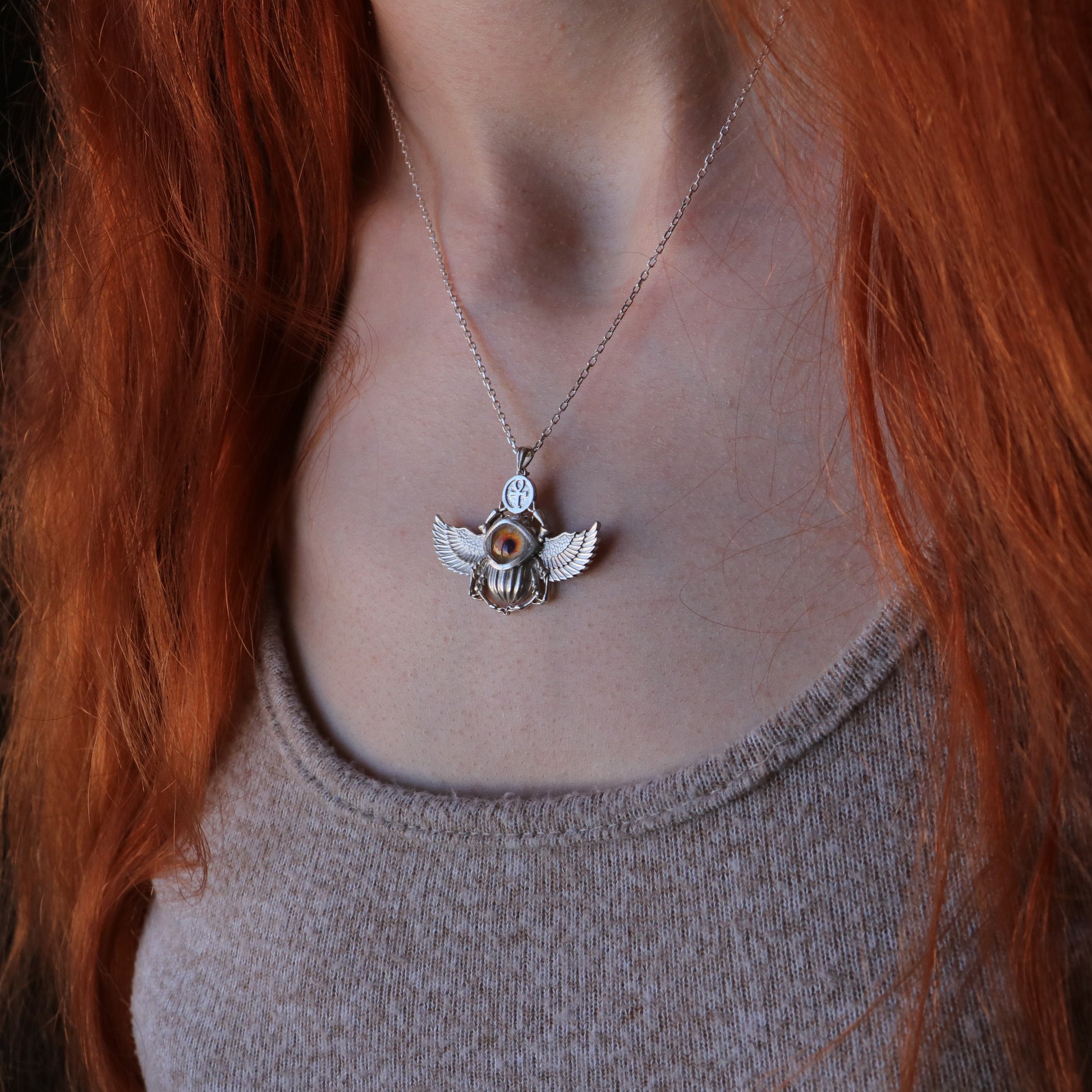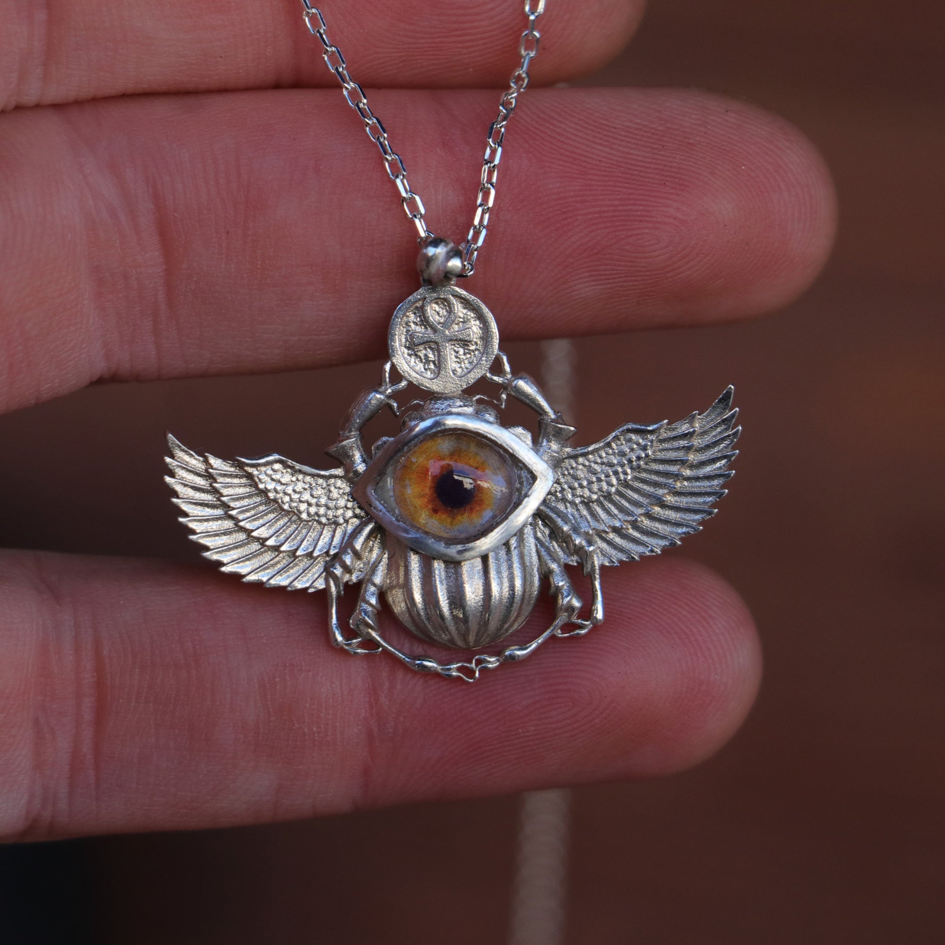 Antik Mısır Scarab ve Ankh Gümüş Kolye - İris Göz Koruyucu Tılsım
