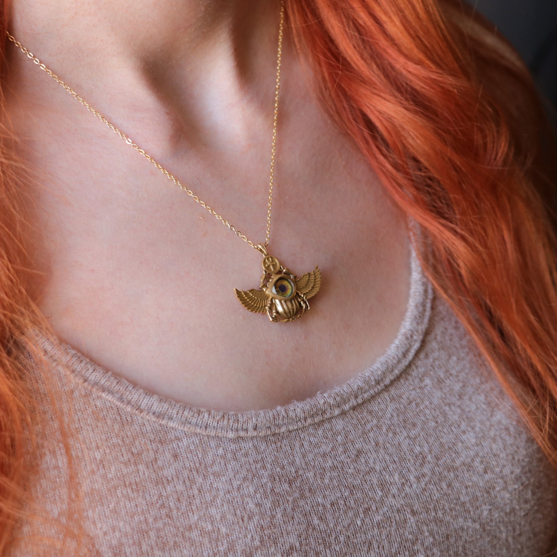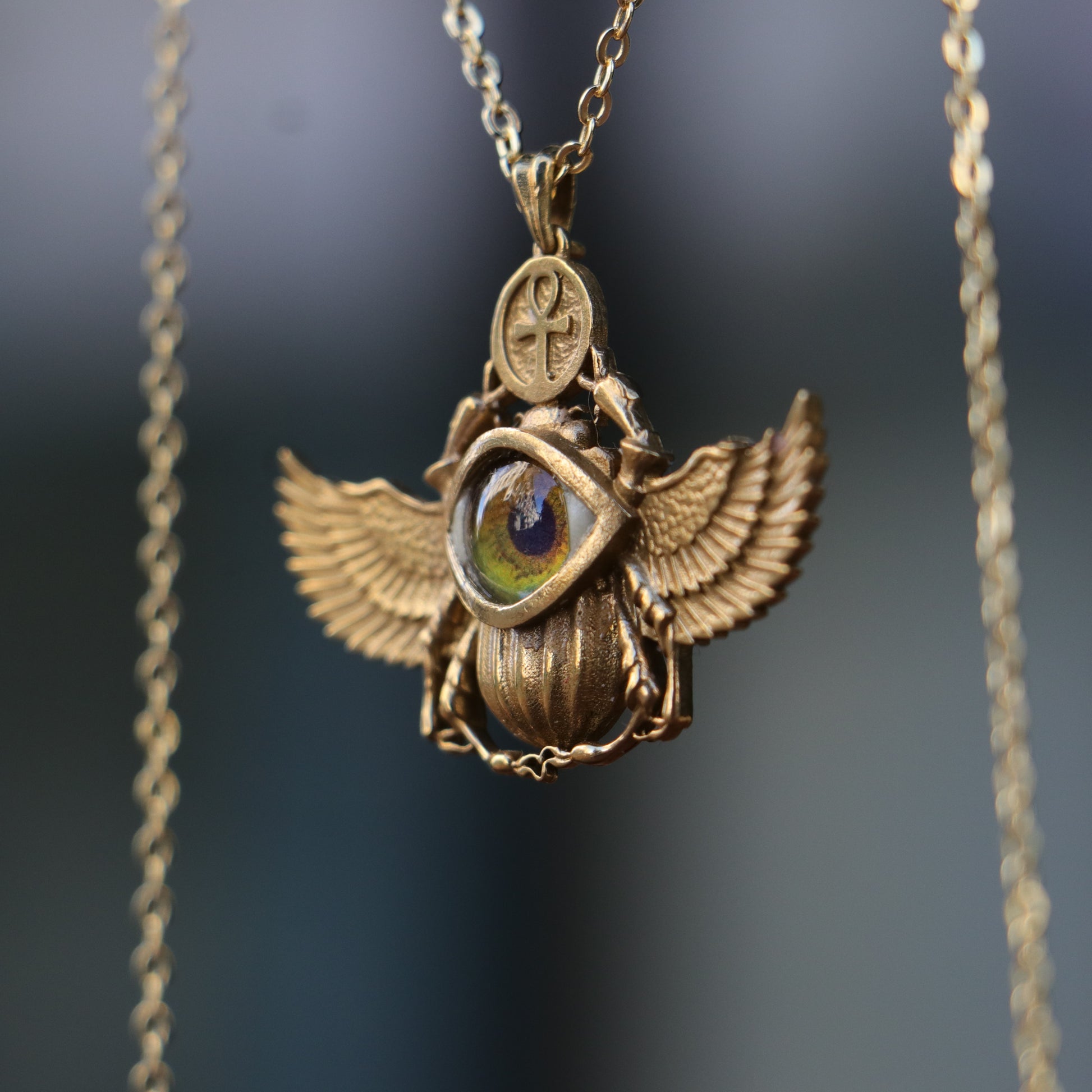 Kadim Mısır’ın gizemli kumlarından ilham alan bu tasarım, yaşamın sonsuz döngüsünü ve ilahi korumayı boynunuza taşıyor. Merkezinde yer alan Scarab (Kutsal Bok Böceği), dönüşümü ve güneşi temsil ederken; tepesinde yükselen Ankh sembolü, sahibine yaşamın anahtarını sunuyor. Bu kolye, sadece bir aksesuar değil, binlerce yıllık bir hikayenin modern ve kişisel bir yorumudur.