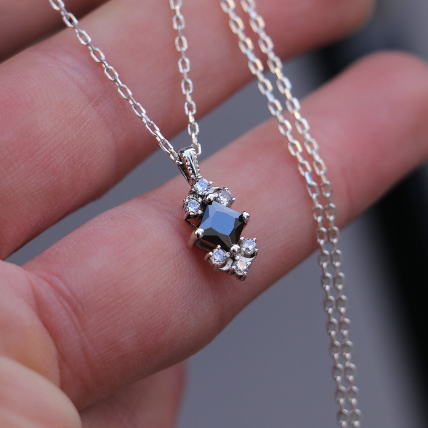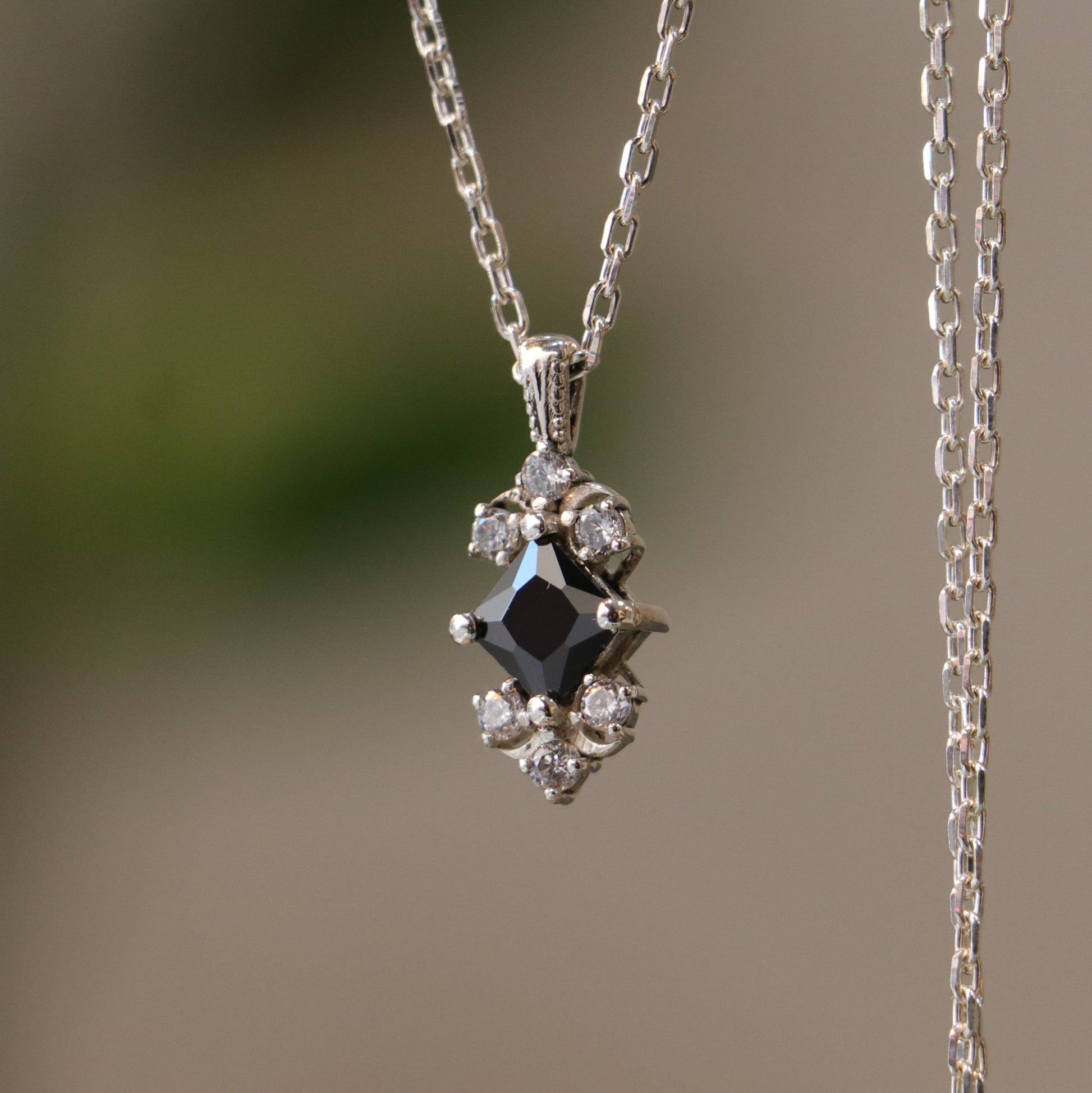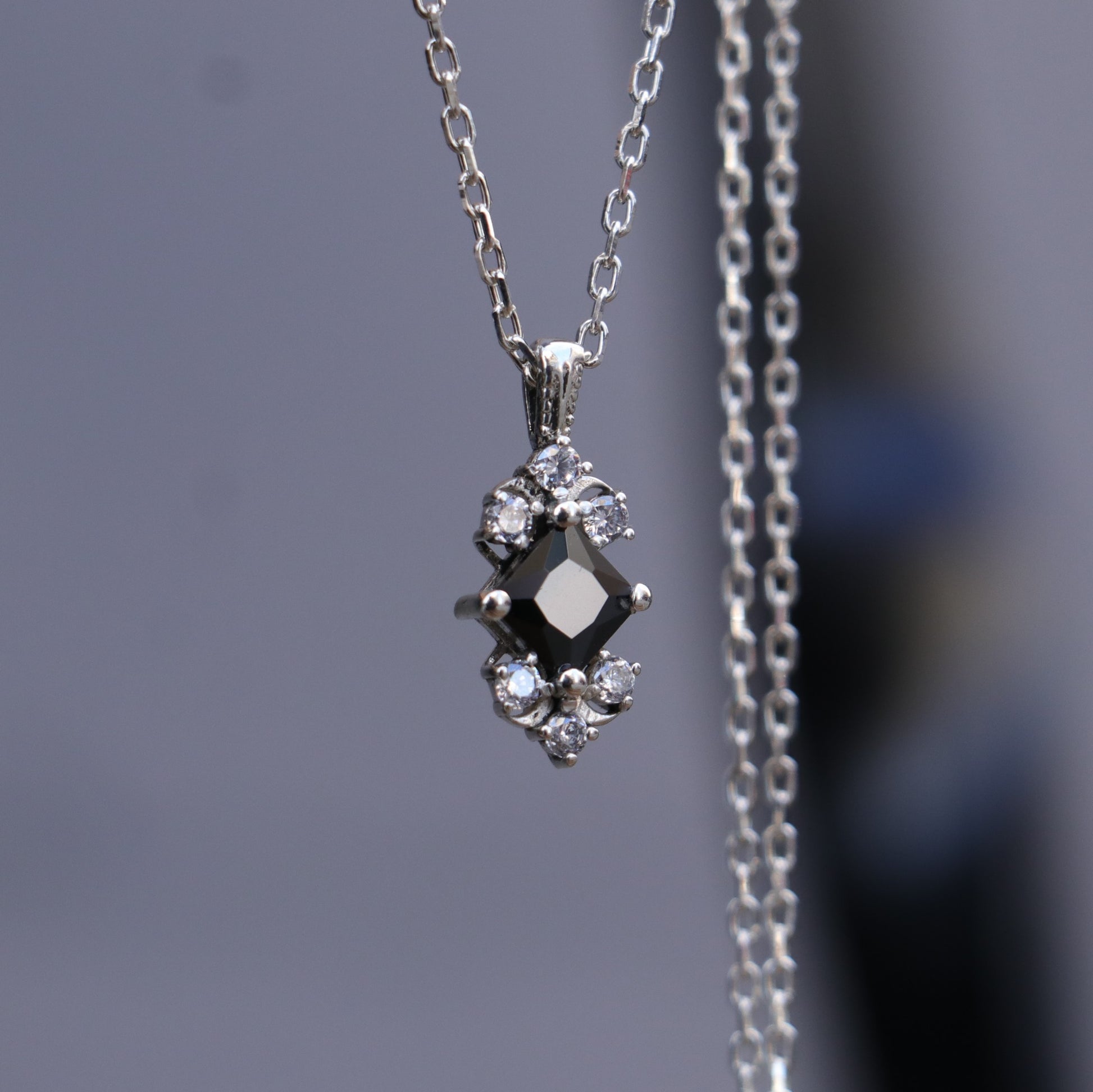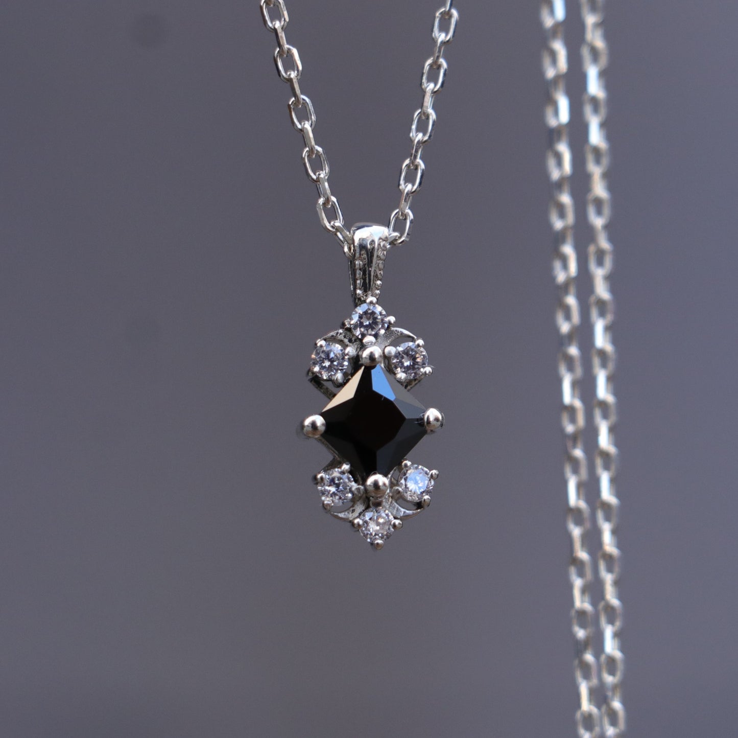 Prenses Oniks ve Mozanit 925 Gümüş Kolye