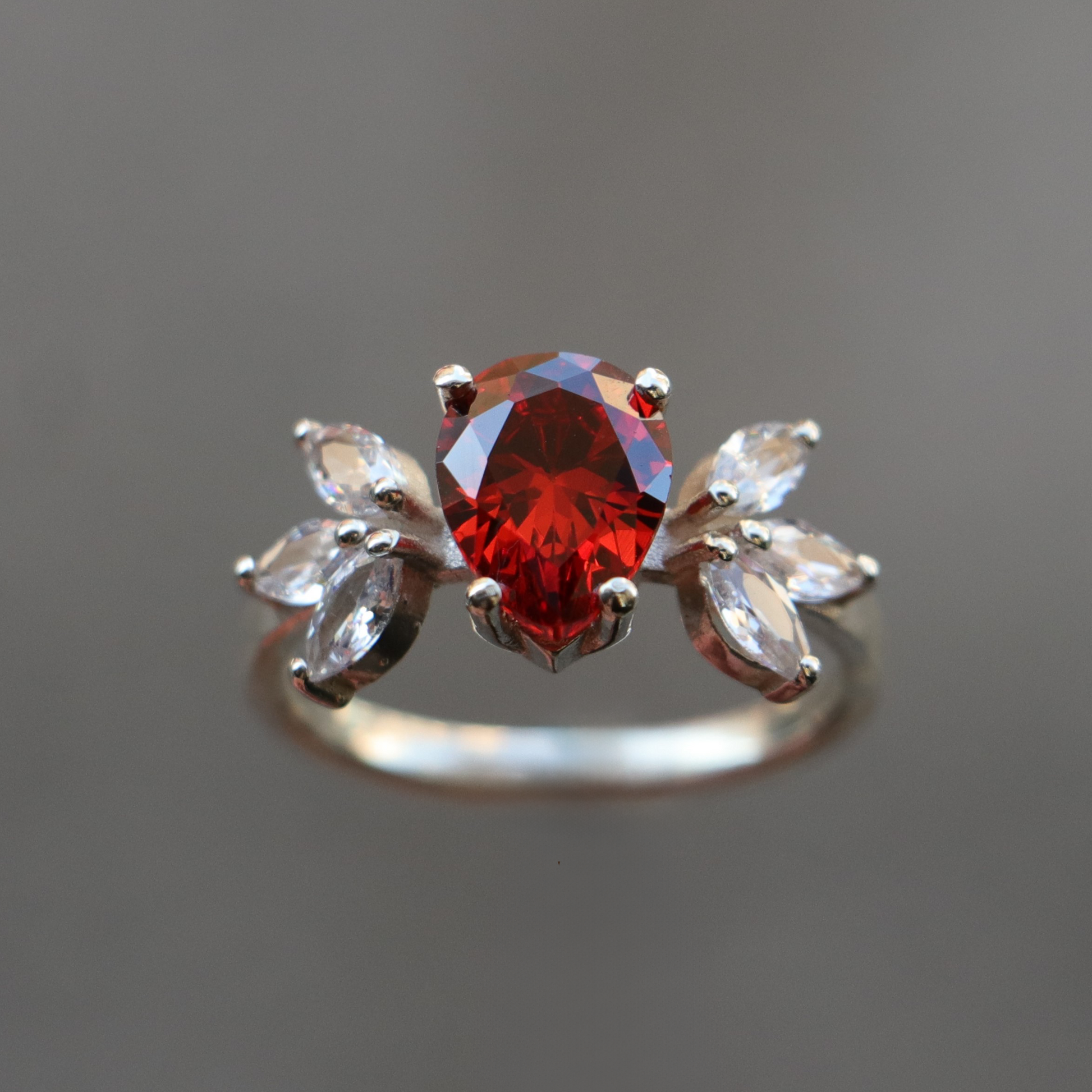 Damla Ruby ve Markiz Mozanit 925 Gümüş Yüzük