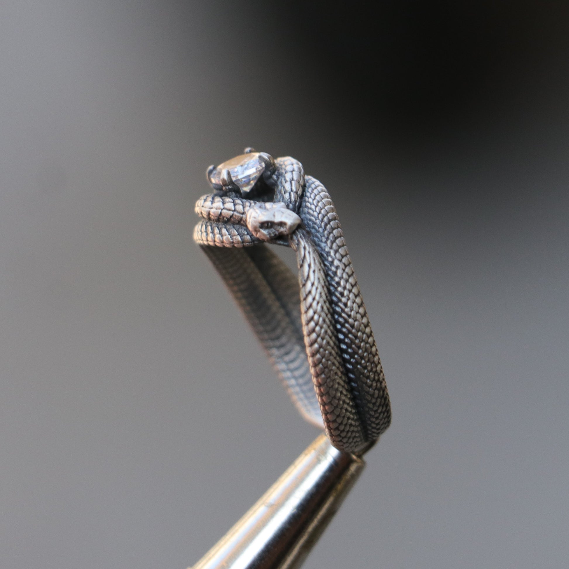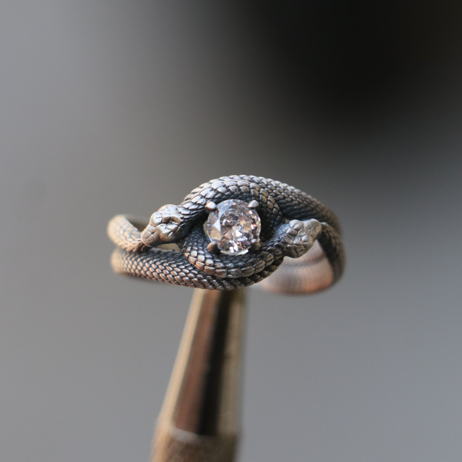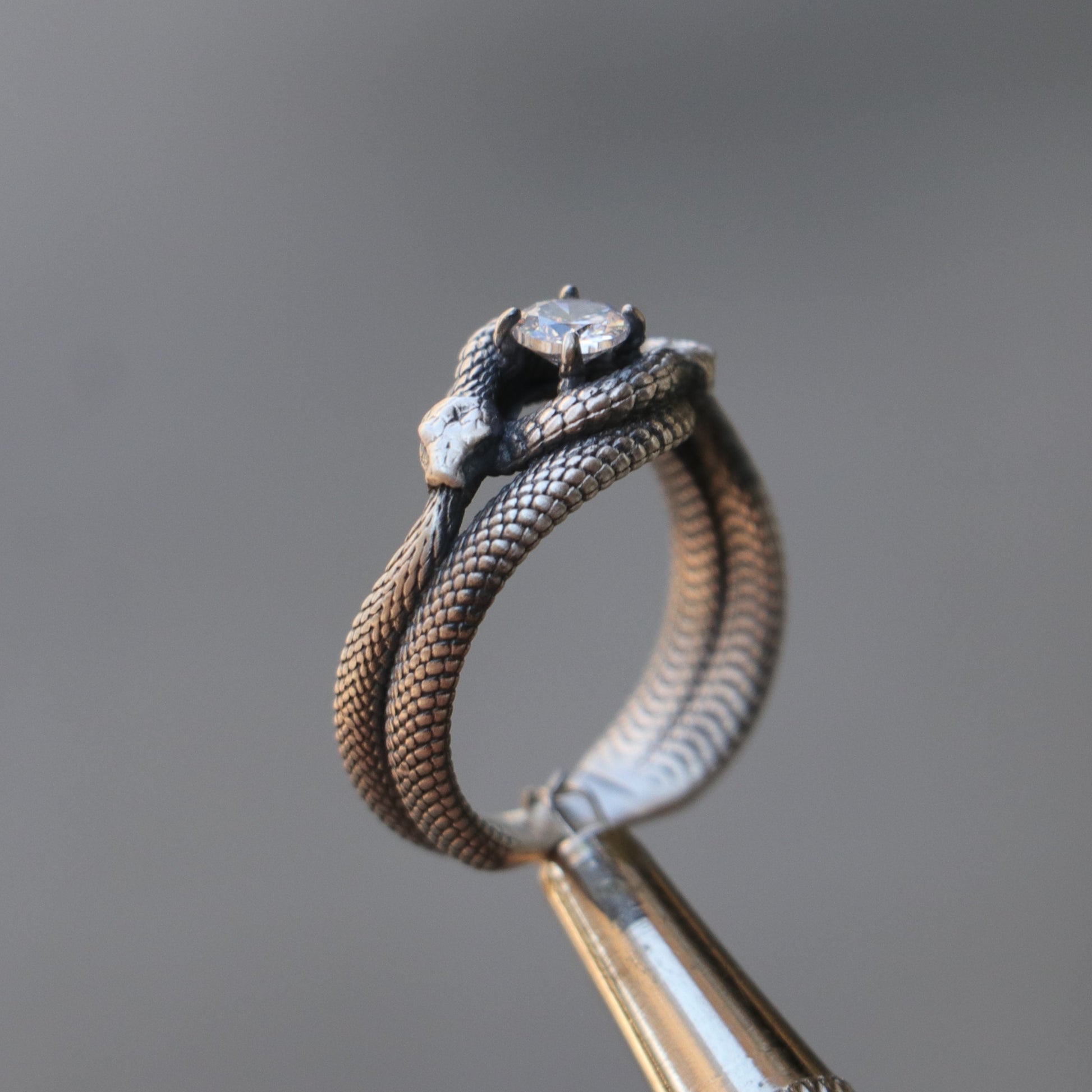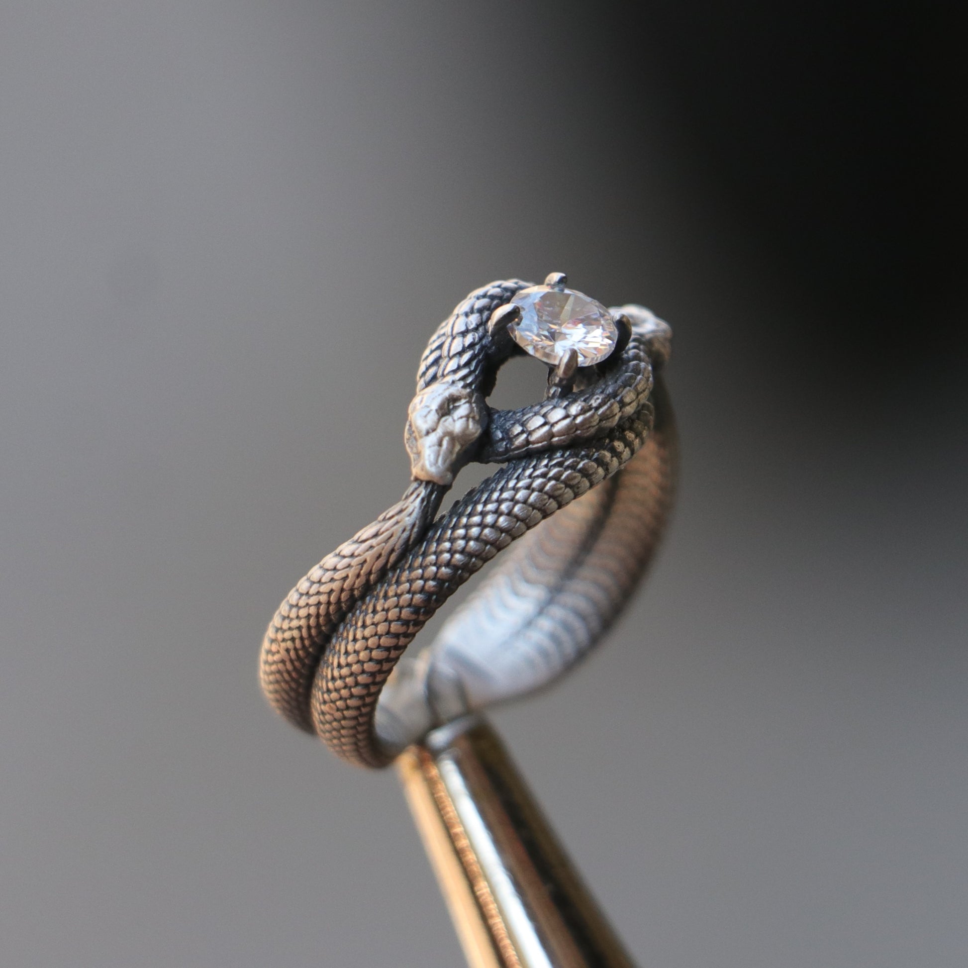 Mozanit Ouroboros 925 Oksitlenmiş Gümüş Yüzük