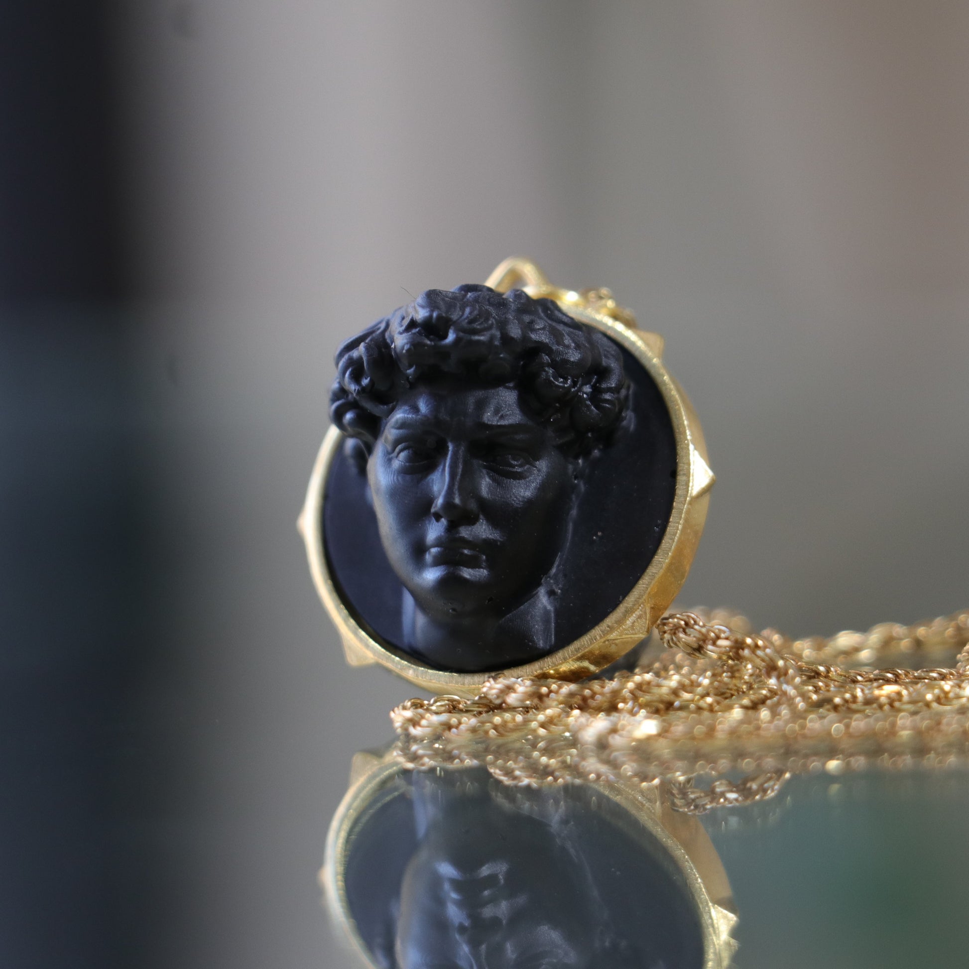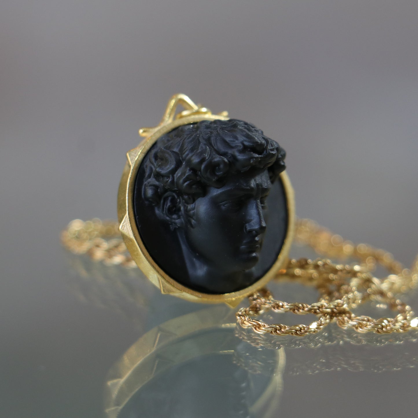 Siyah Mermer Davut 925 Gümüş Altın Kaplama Kolye