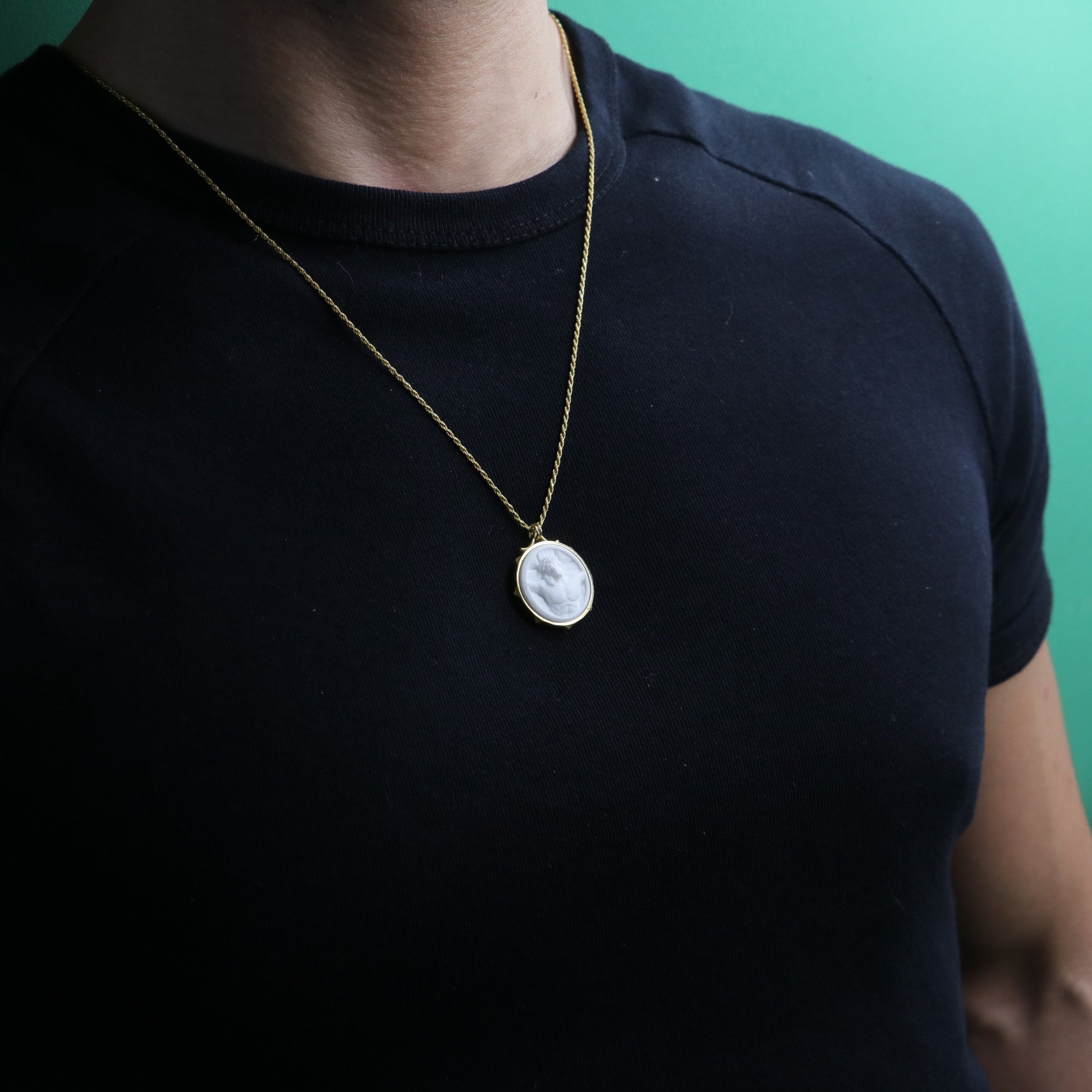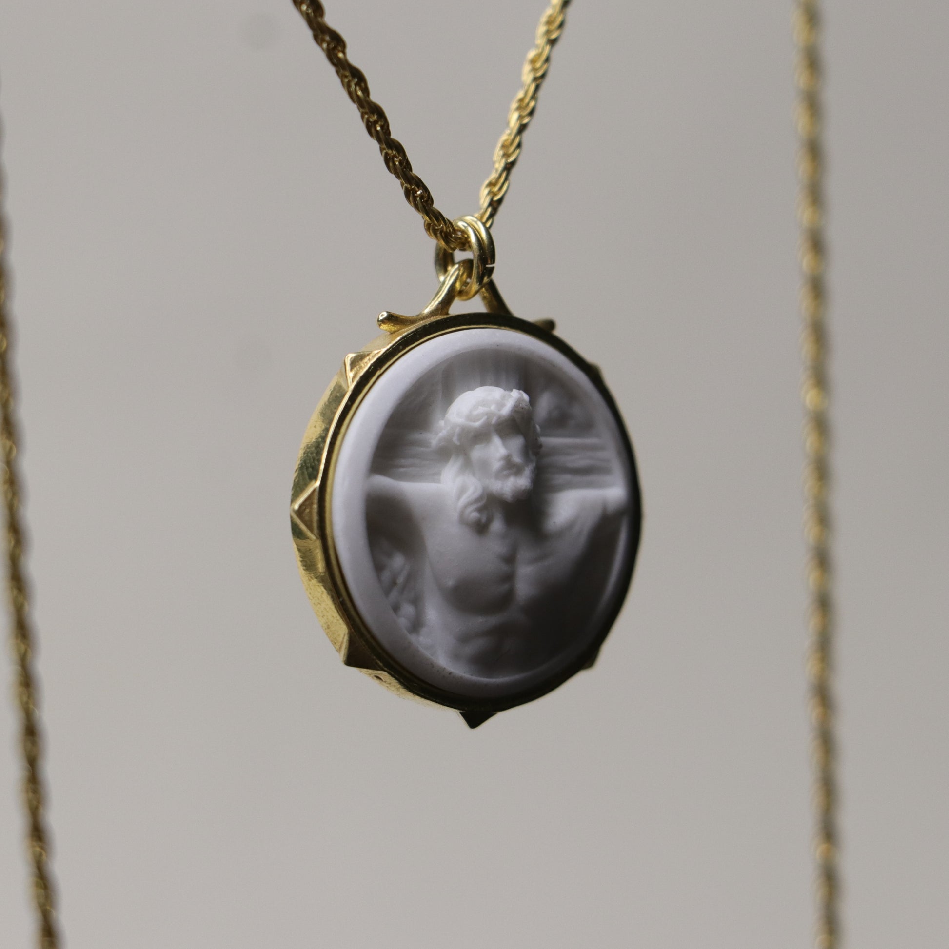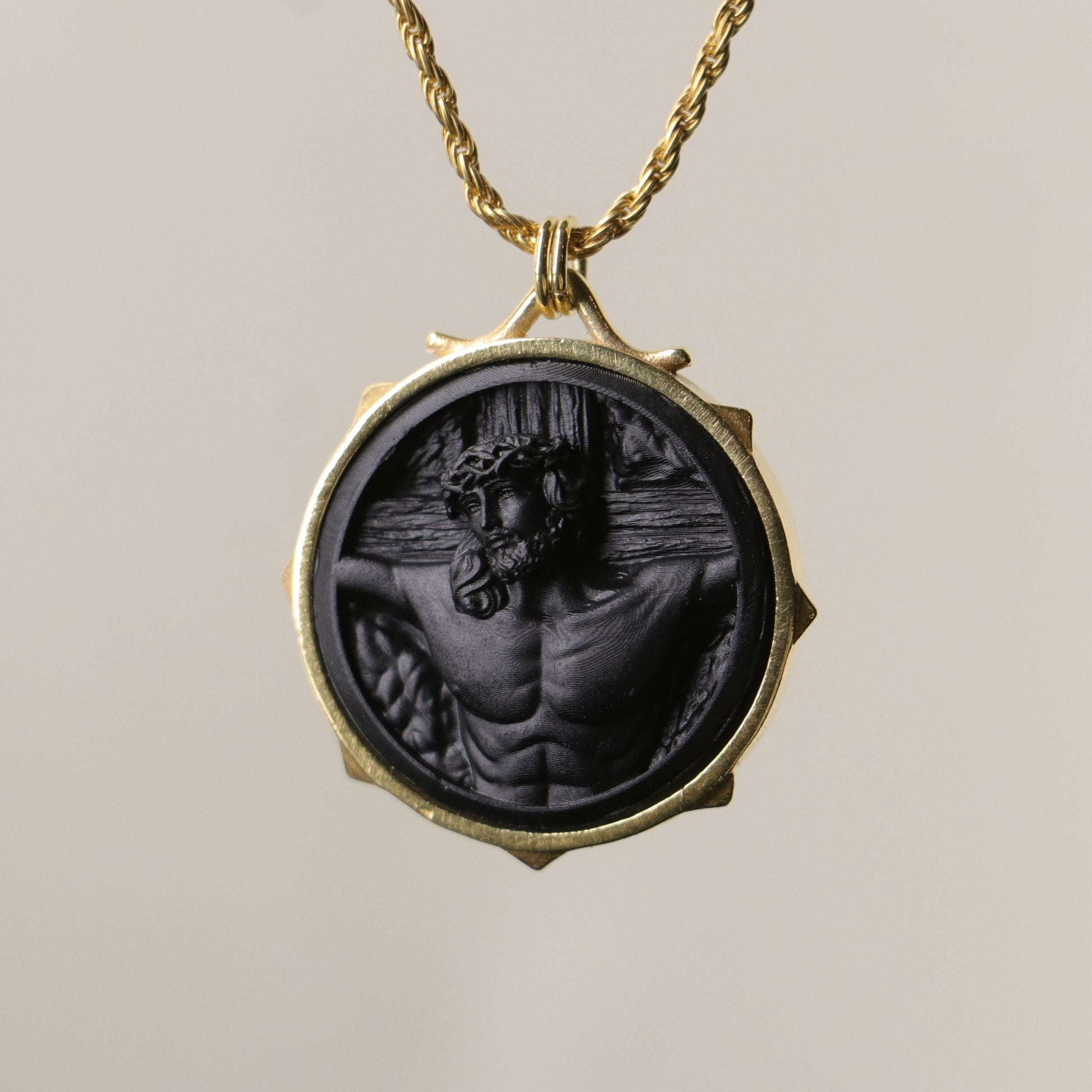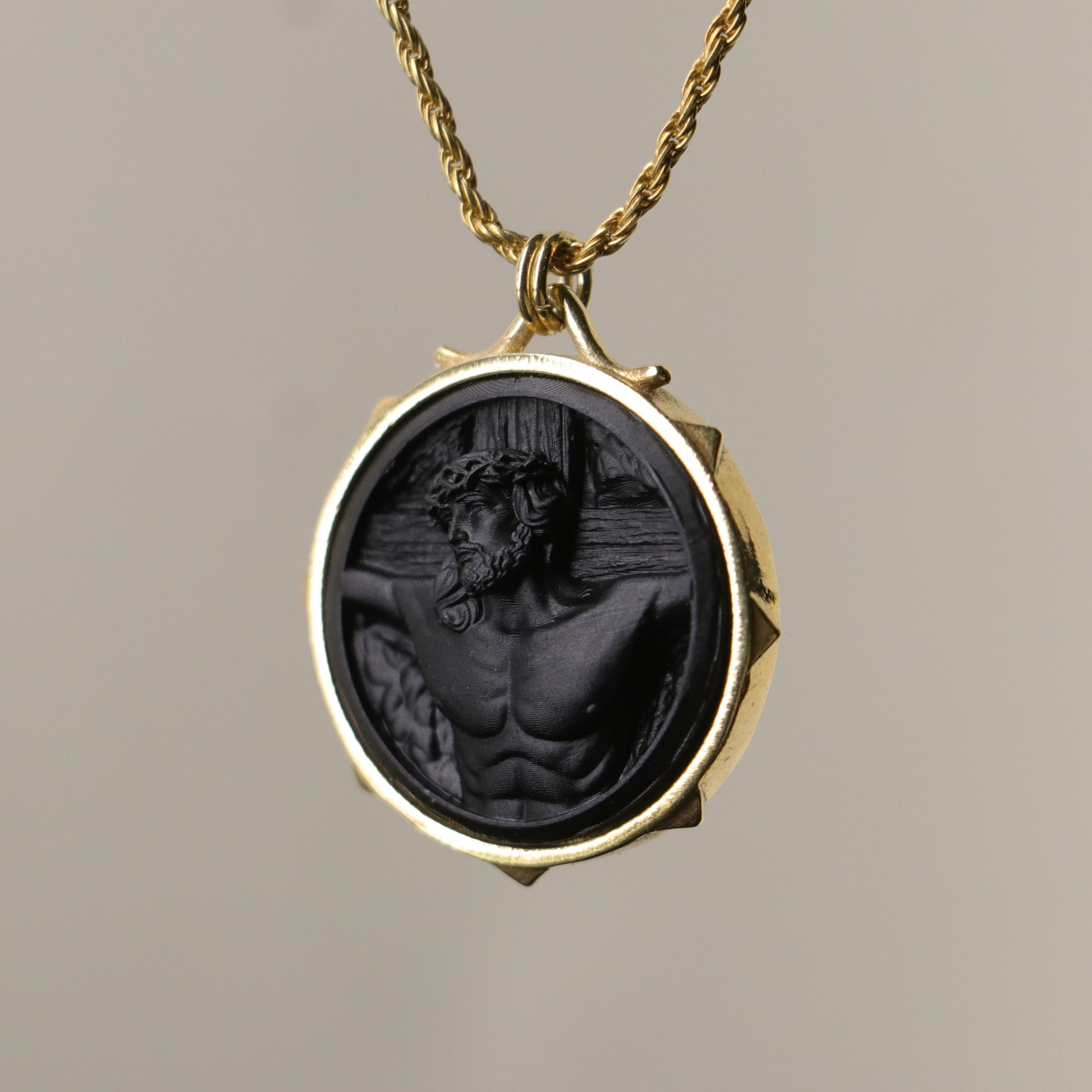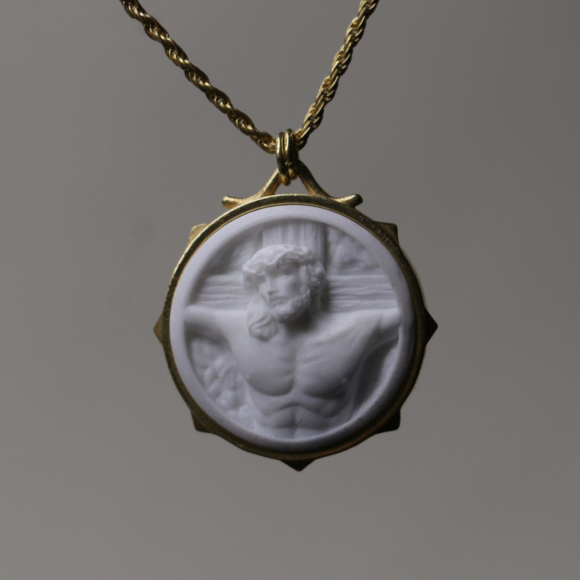 Mermer İsa Jesus 925 Gümüş Altın Kaplama Kolye