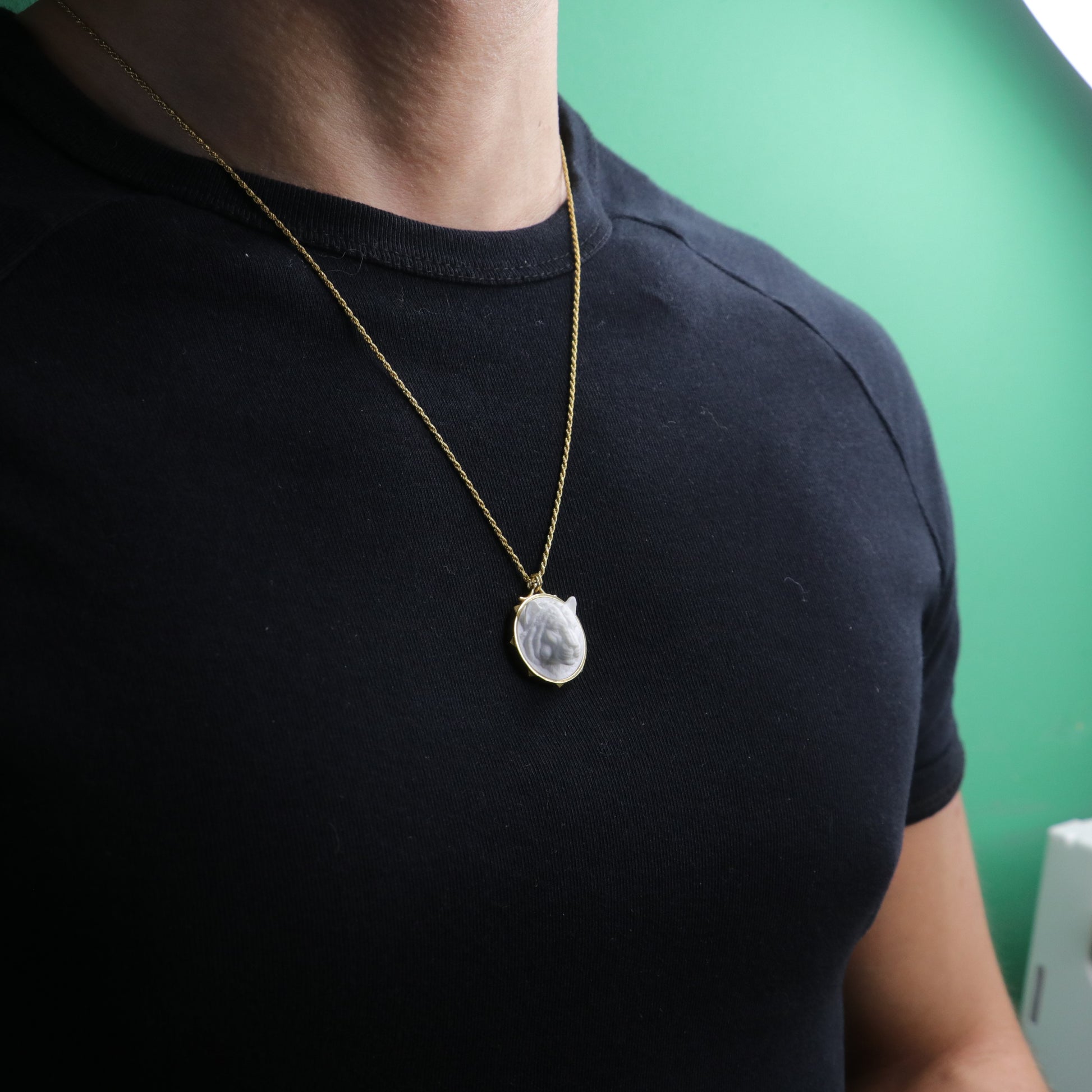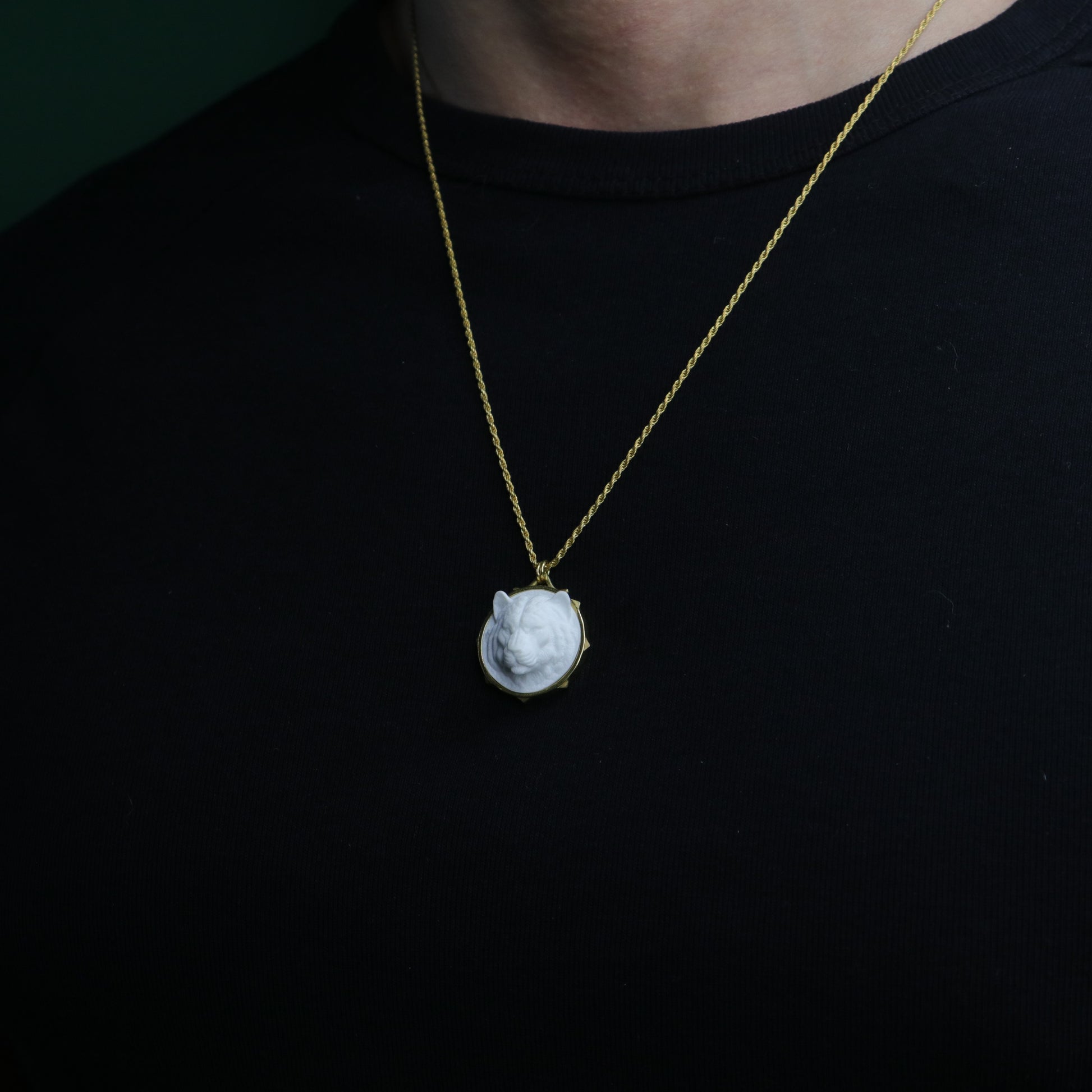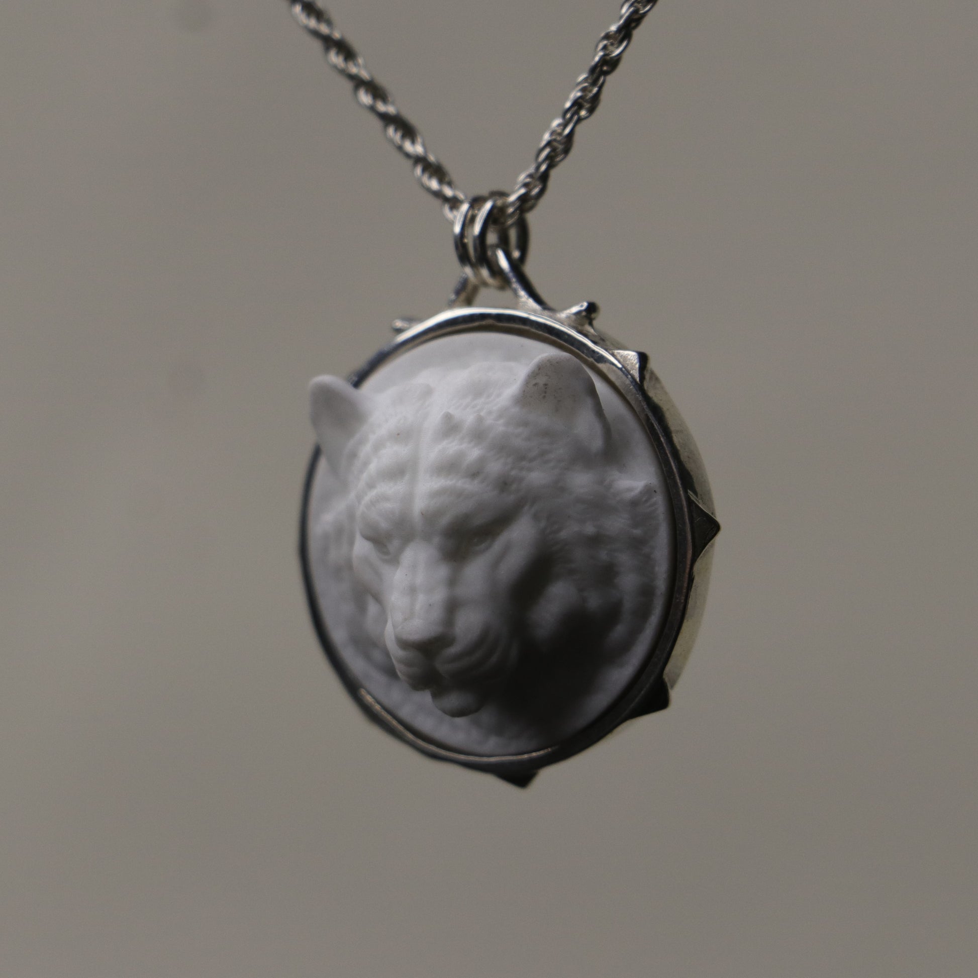 Mermer Madalyon Kaplan 925 Gümüş Kolye