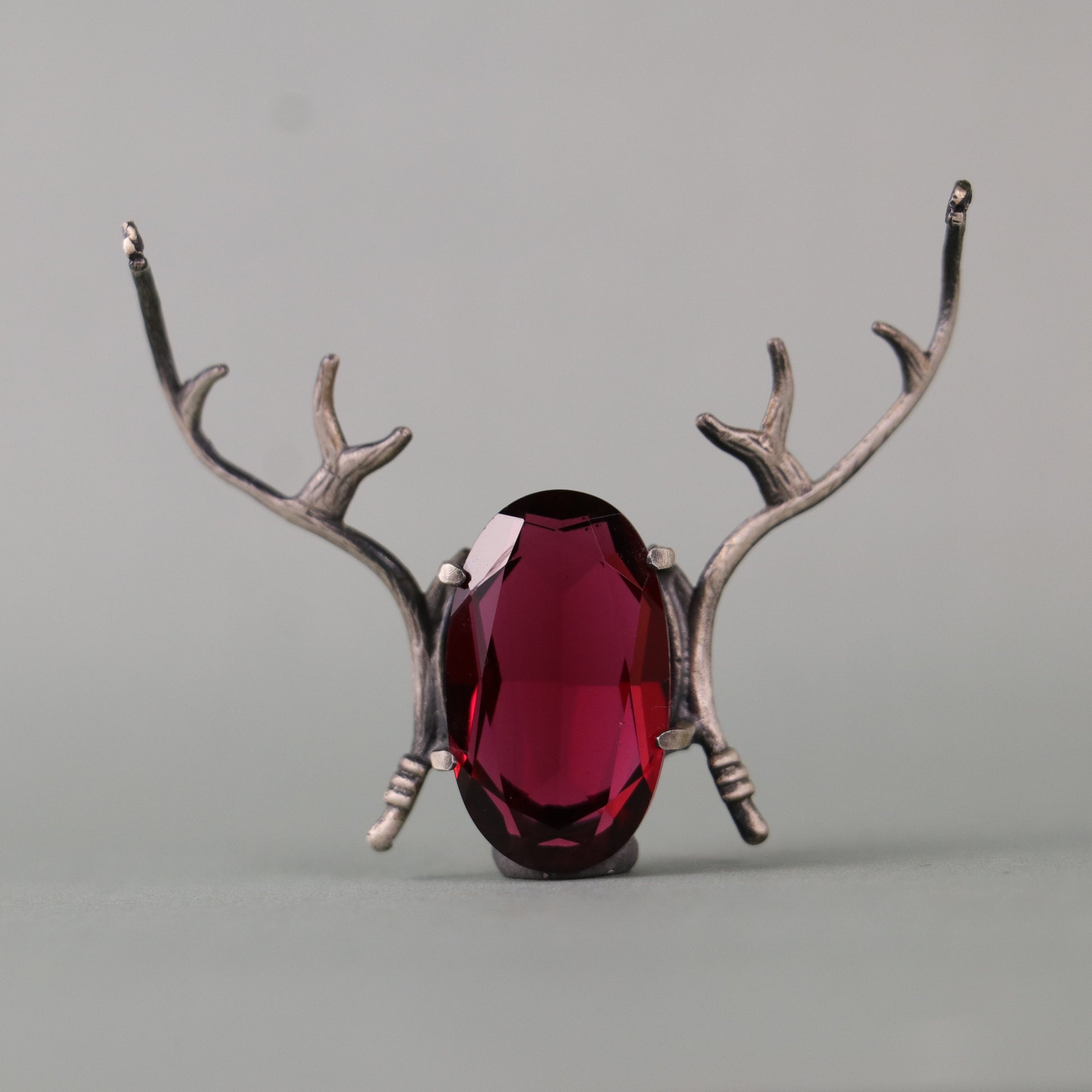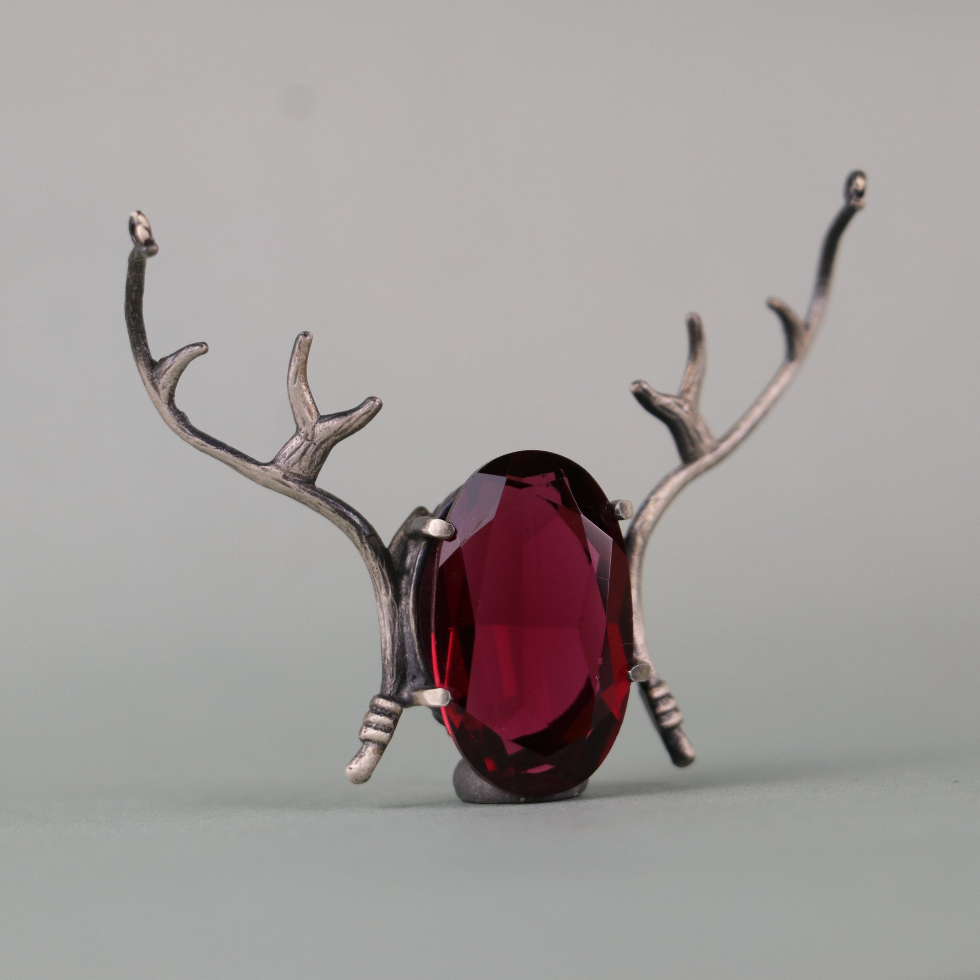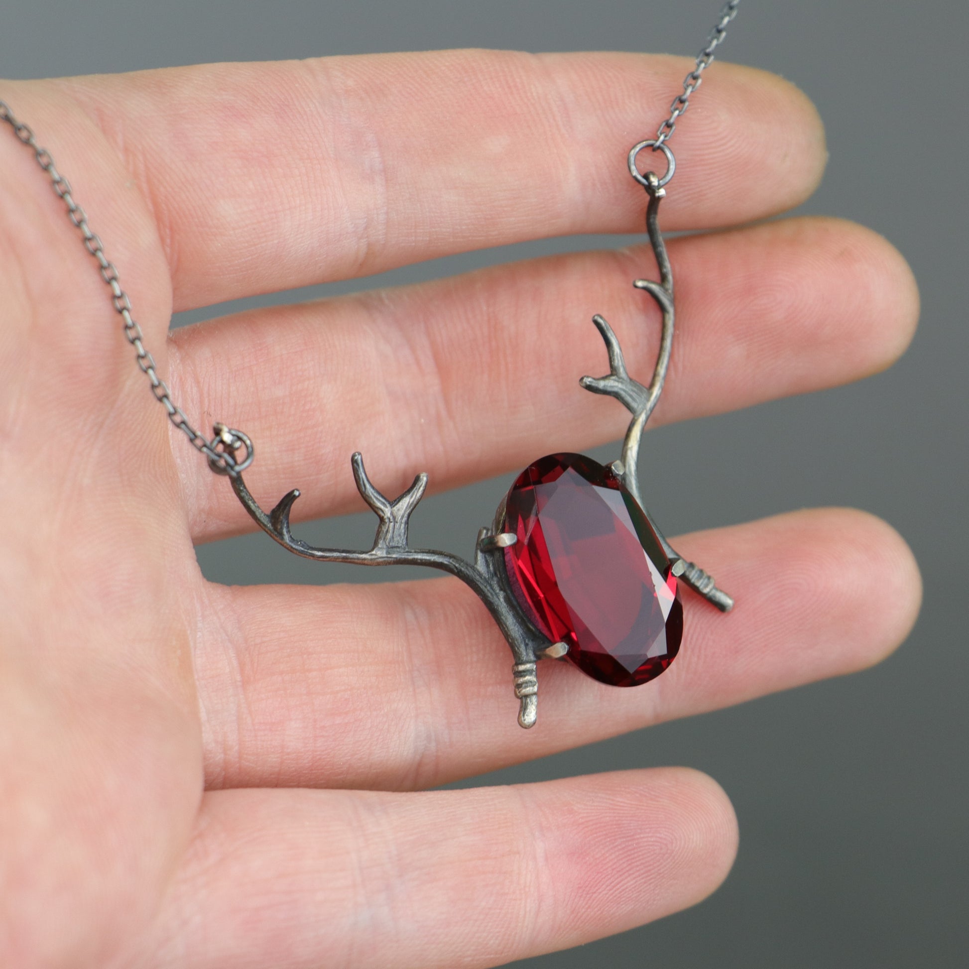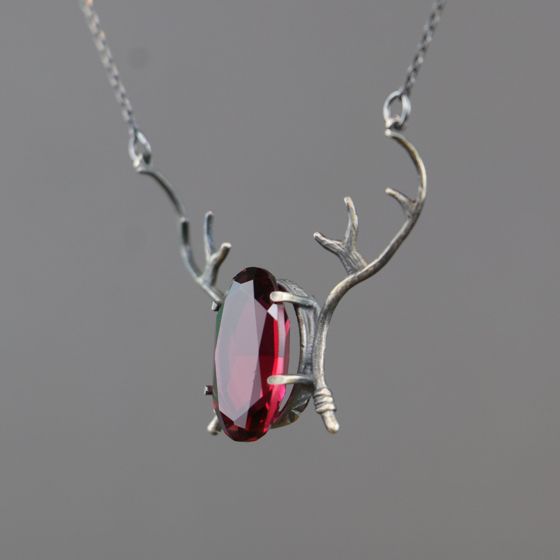 Garnet Taşlı Alageyik Boynuzu 925 Gümüş Kolye