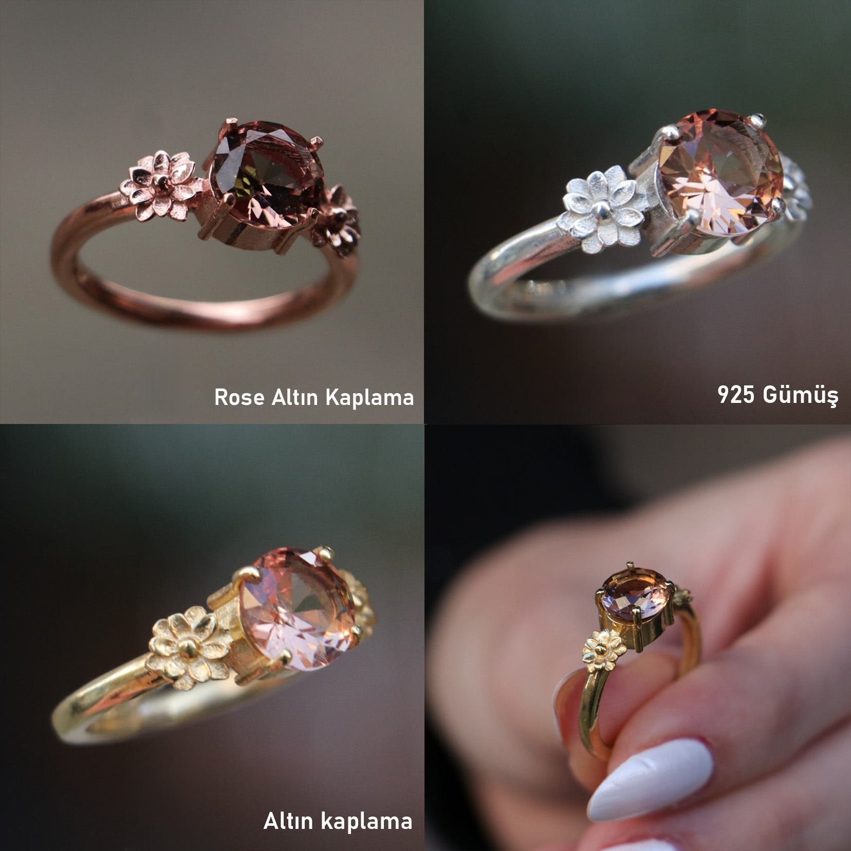 Zultanit 925 Gümüş Rose Altın Kaplama Yüzük (Işığın gücüne göre renk değiştirir.)